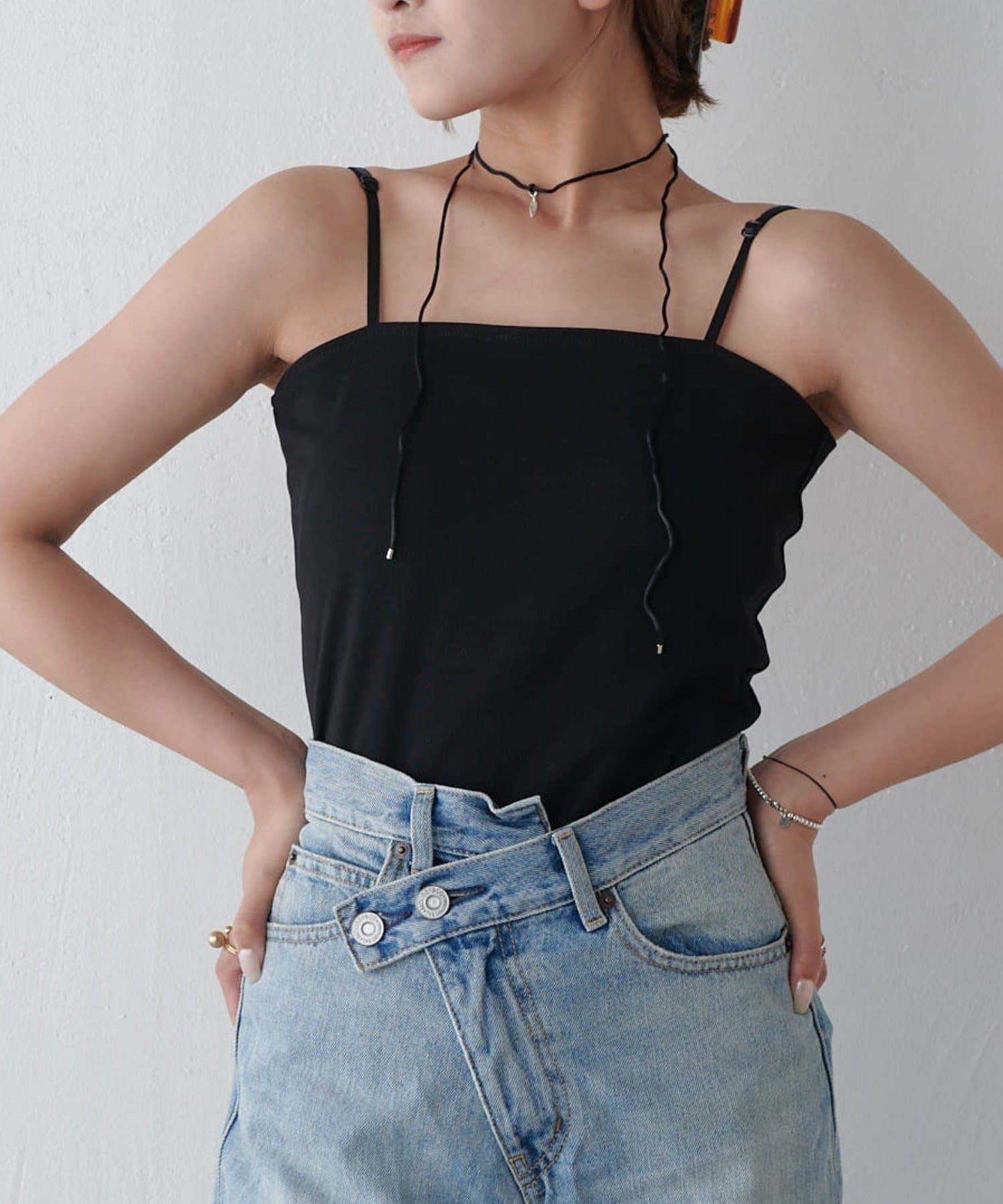 一枚持っておけば、様々なシーンで重宝するカップ付きのキャミ。