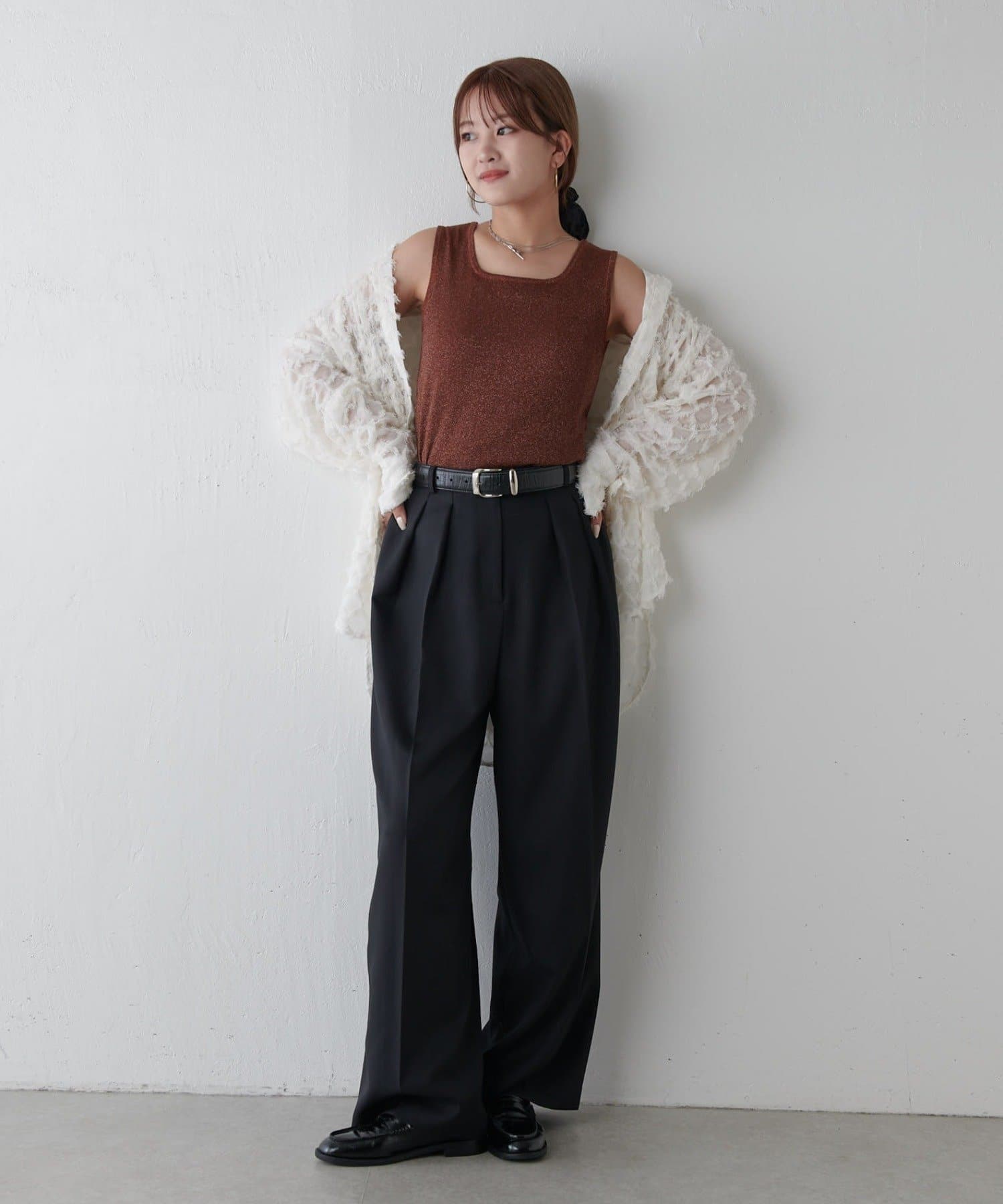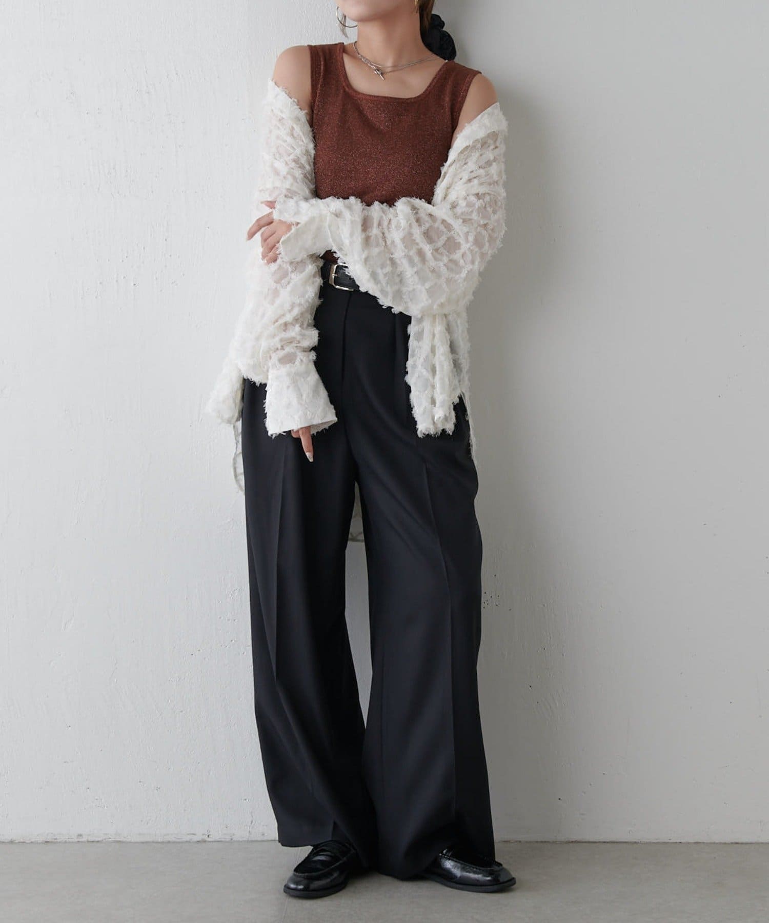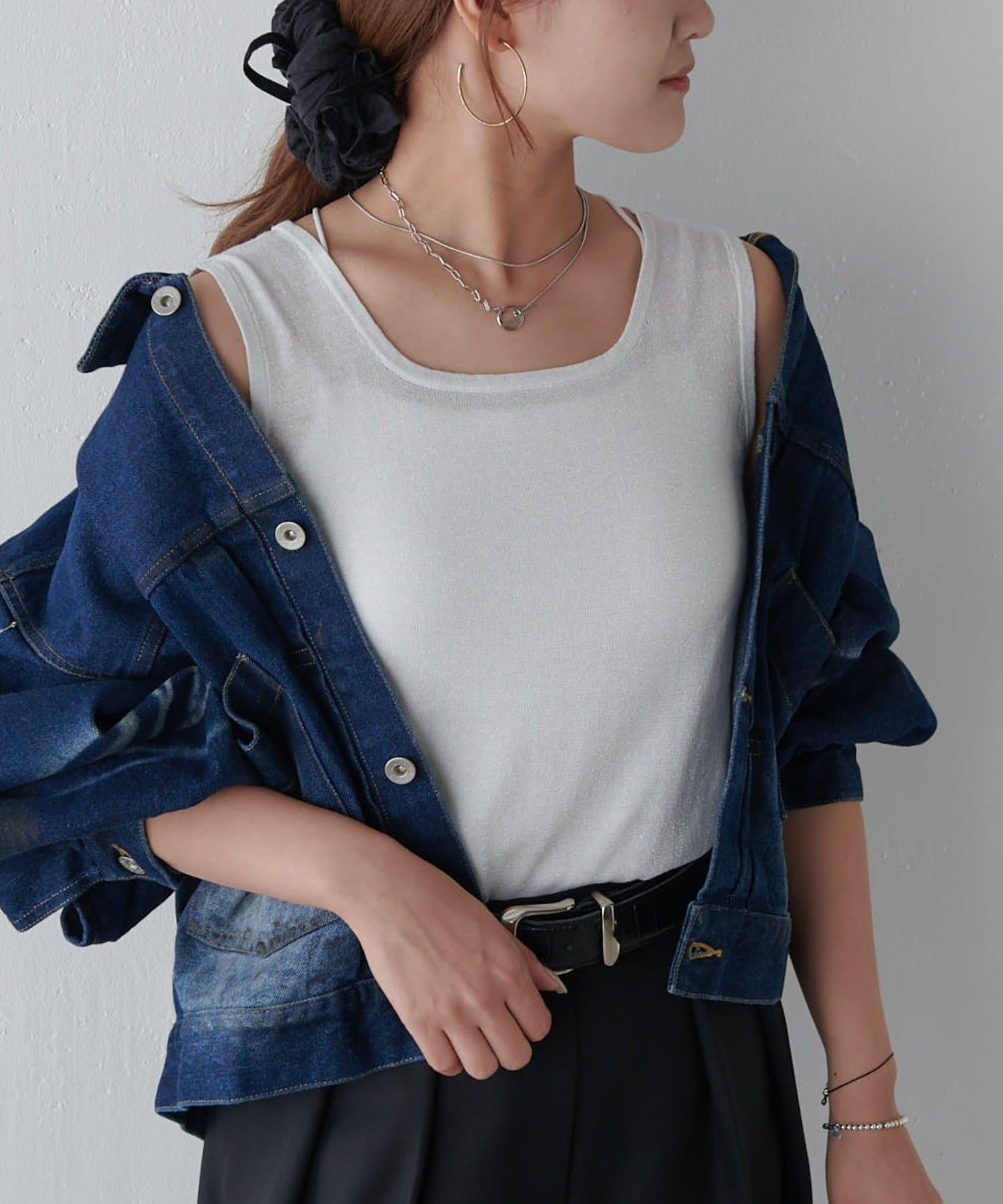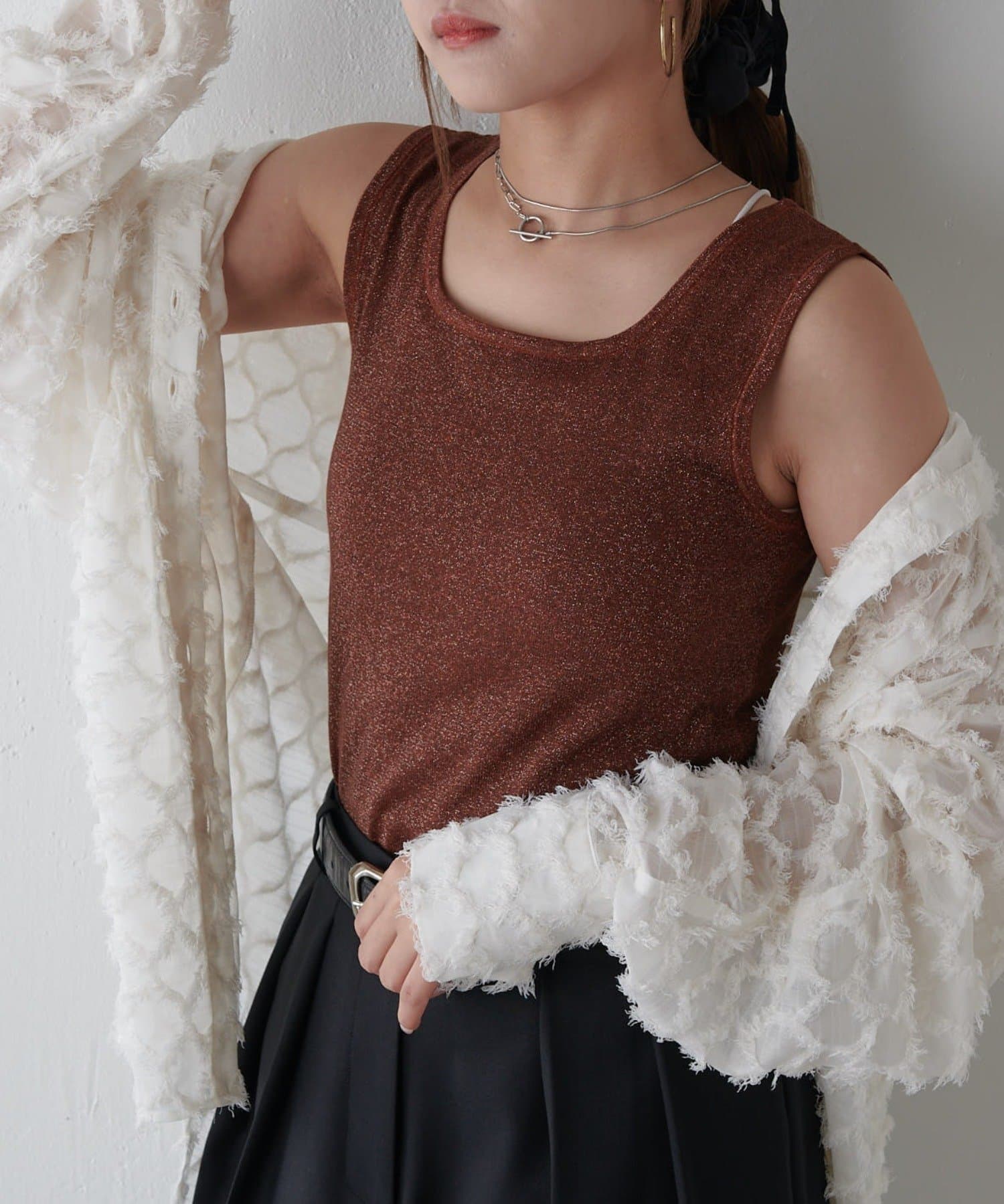 シアーシャツの中に着て、ちらっとラメ感魅せるのも◎