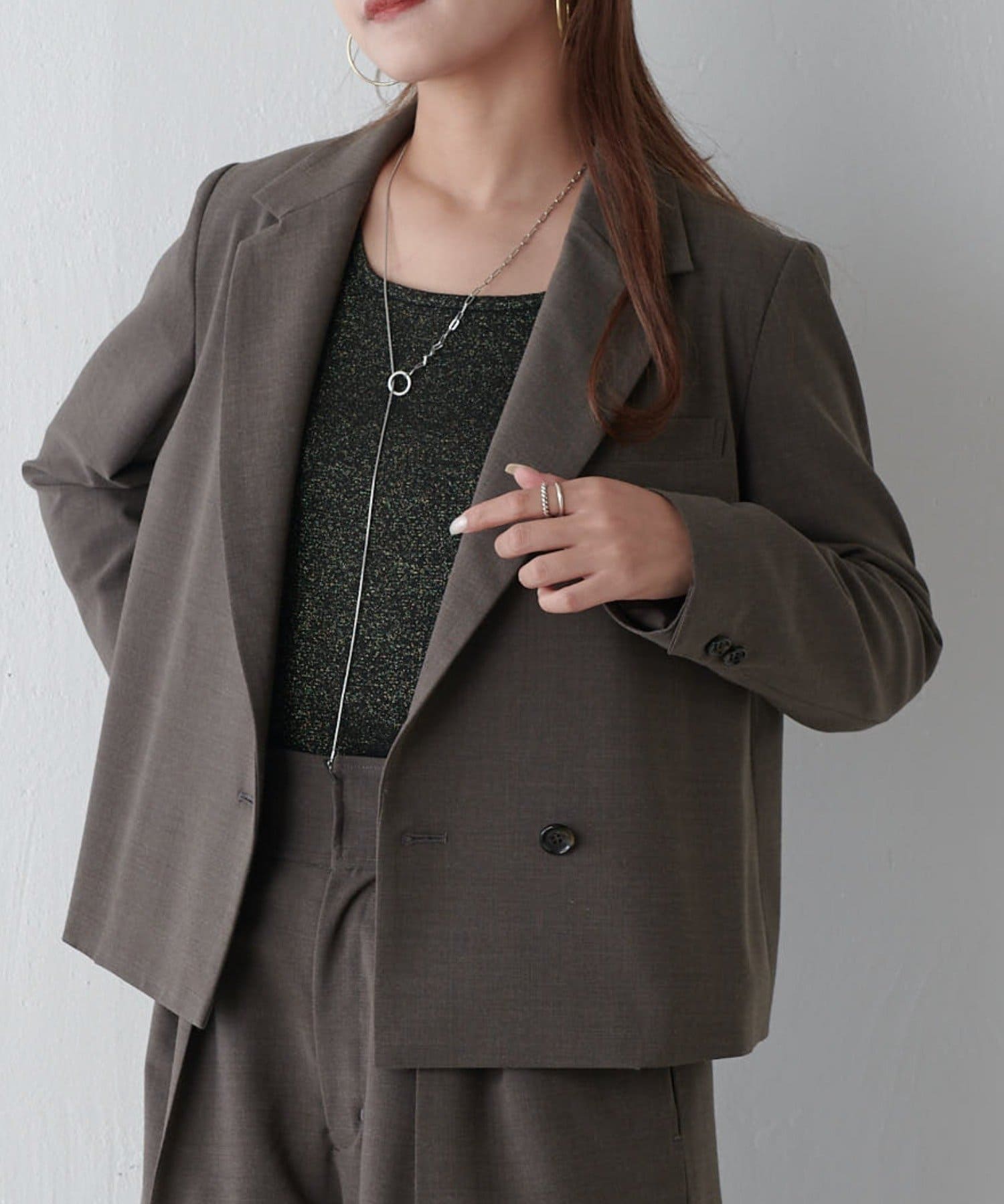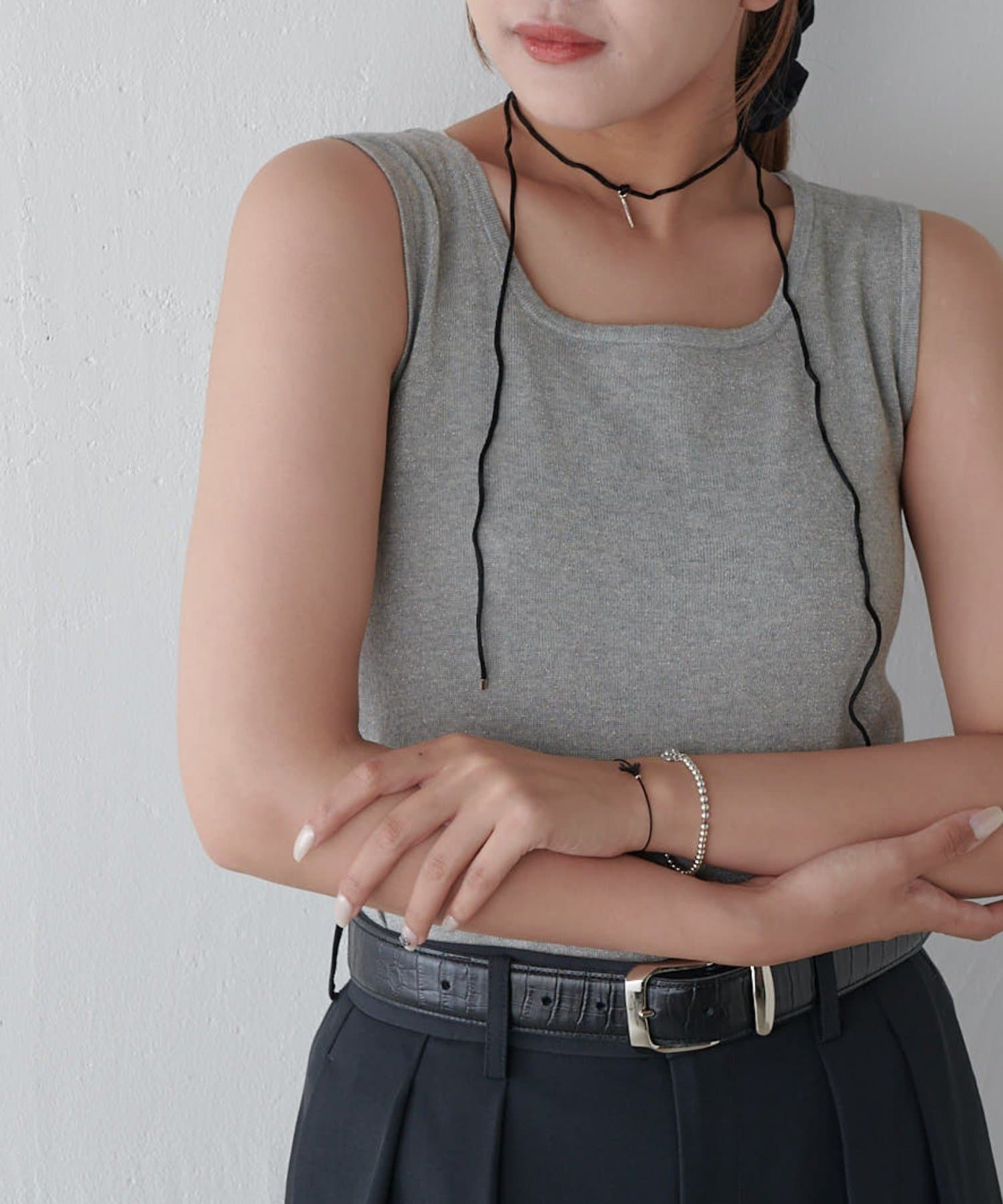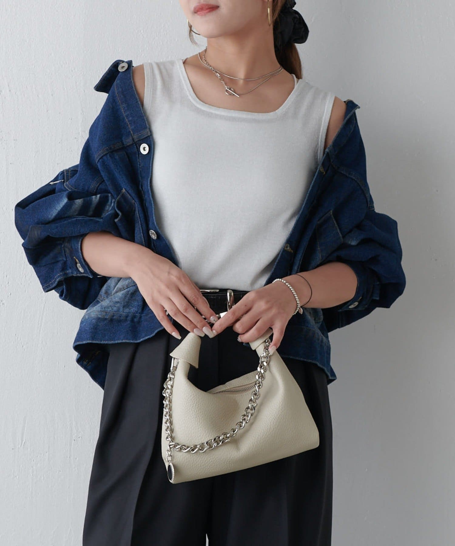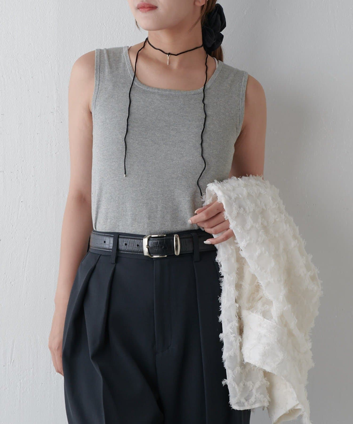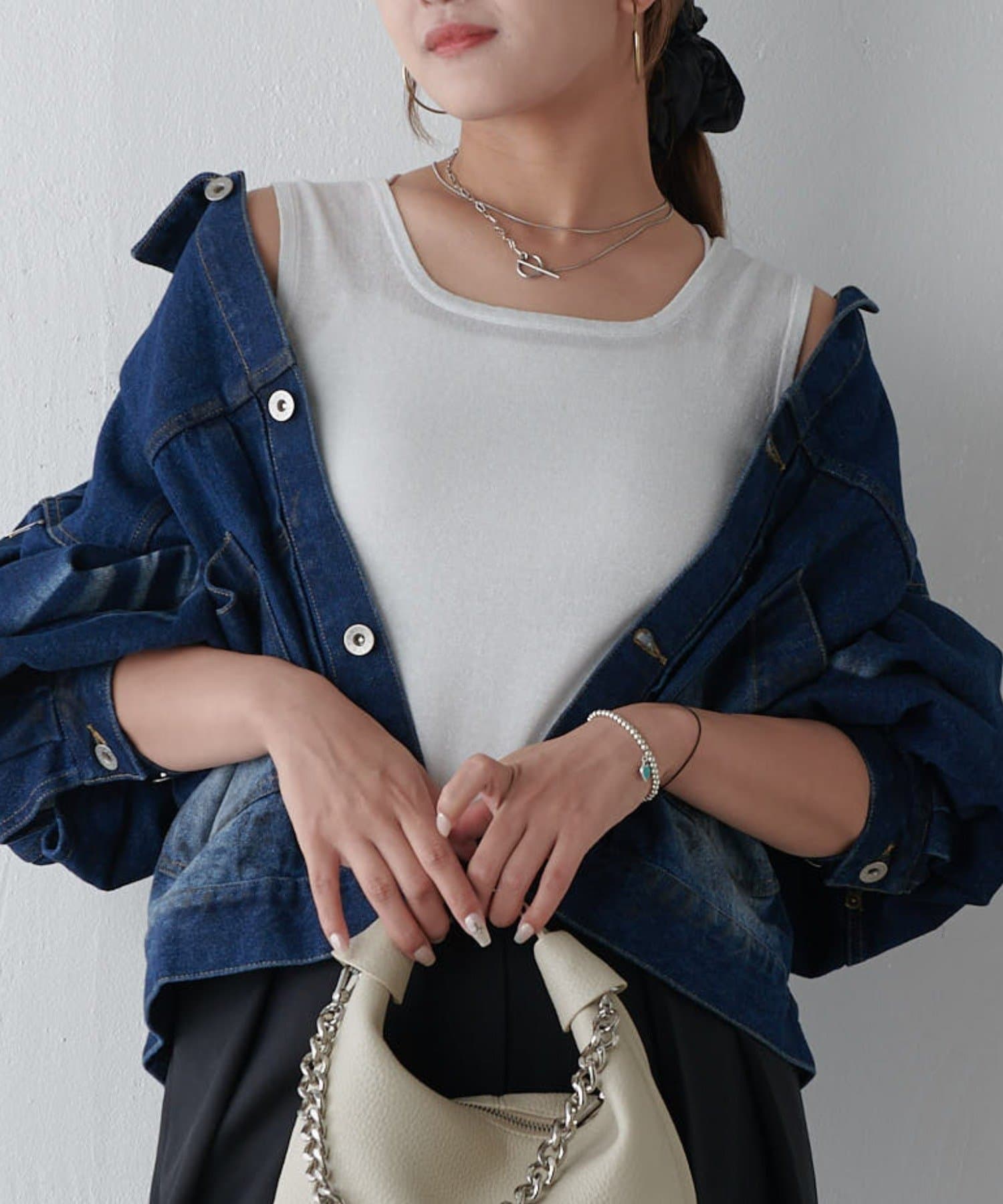 カチッとジャケットやデニムシャツのインナーに入れて、大人カジュアルに。