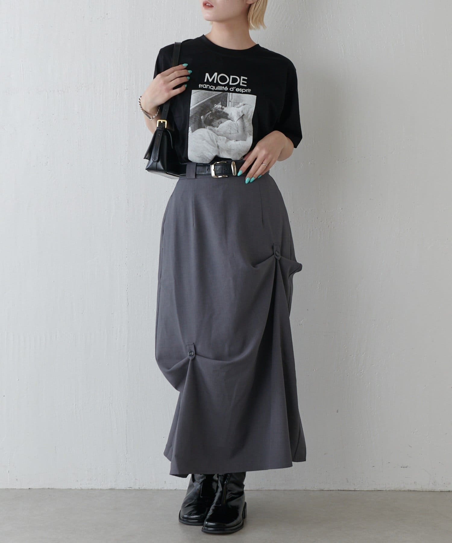カジュアルなTシャツですが、キレイめな素材感なので大人な着こなしにピッタリ!