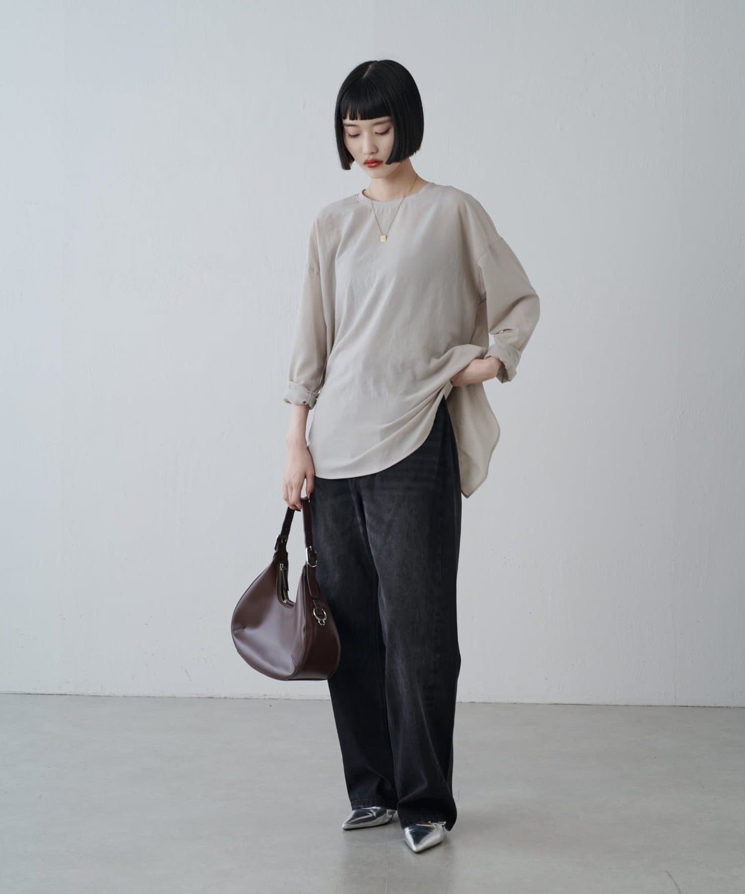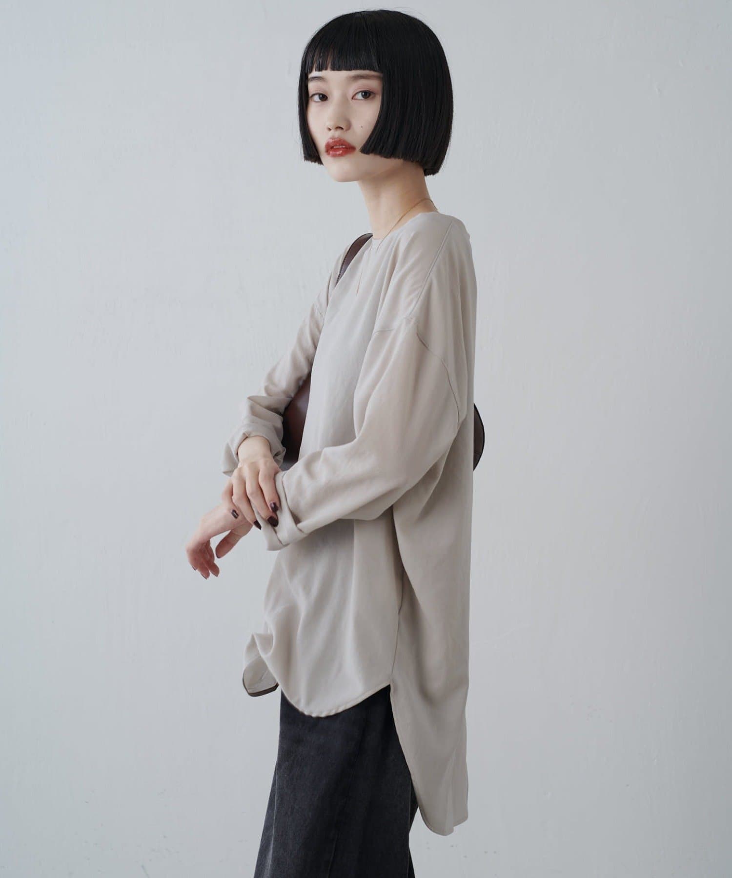 着回しのきくベーシックデザインなので、一枚でもインナーとしても使えます◎