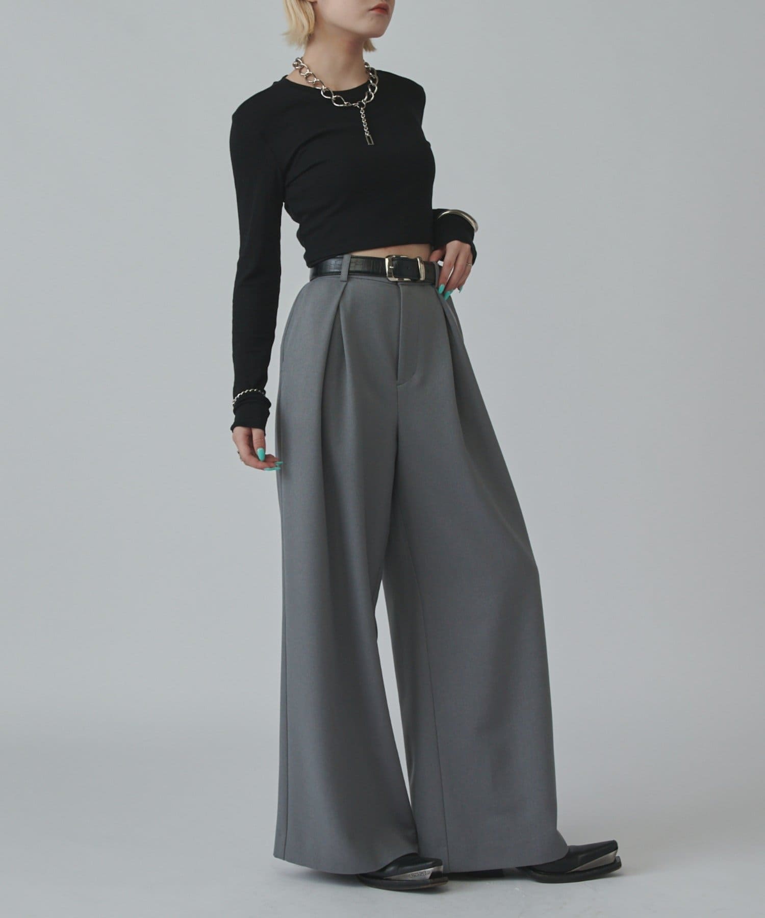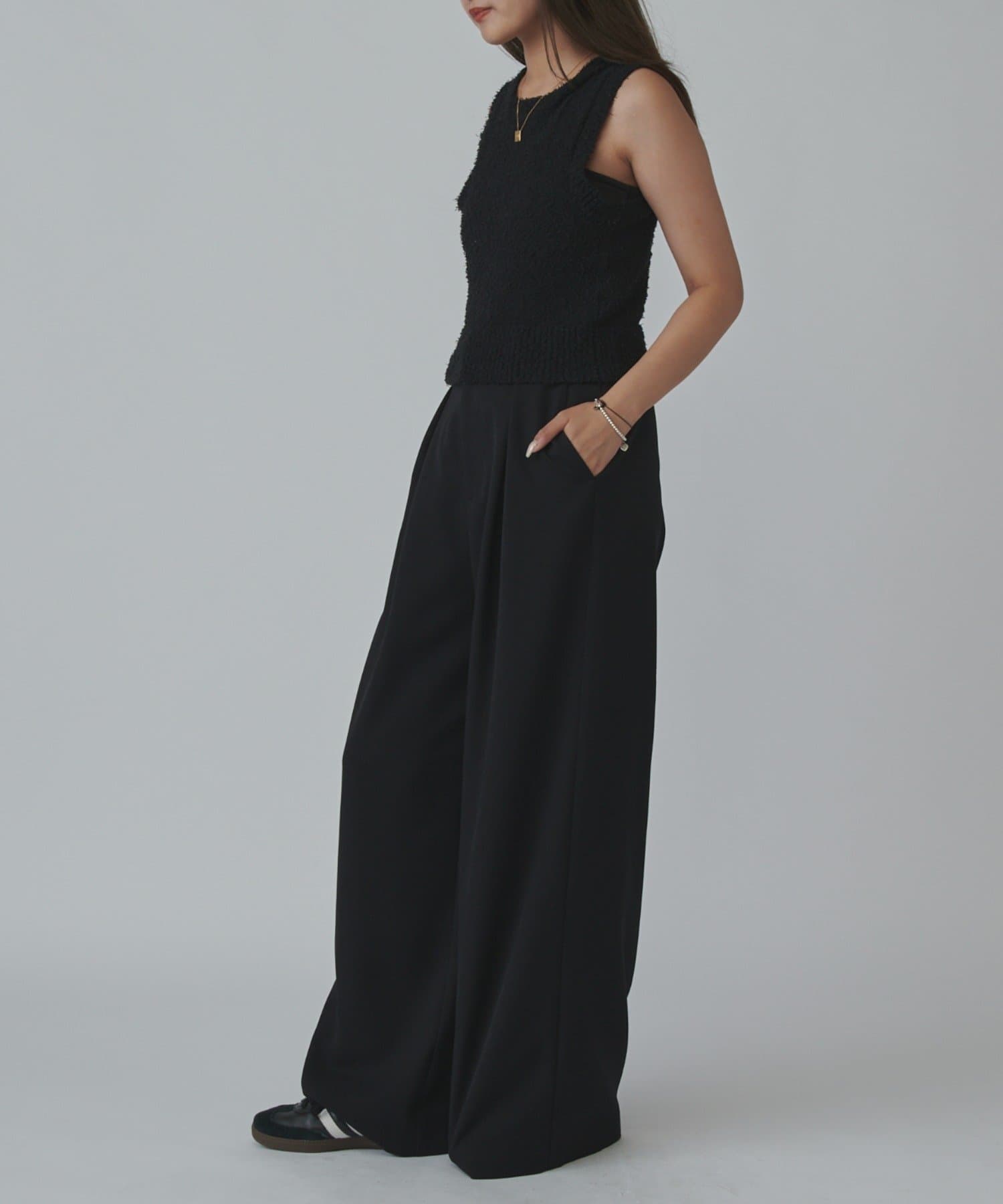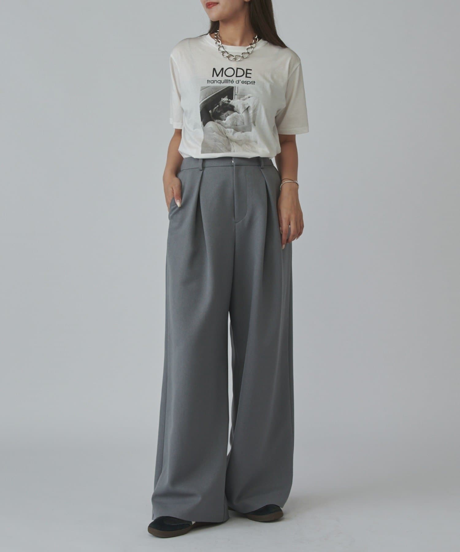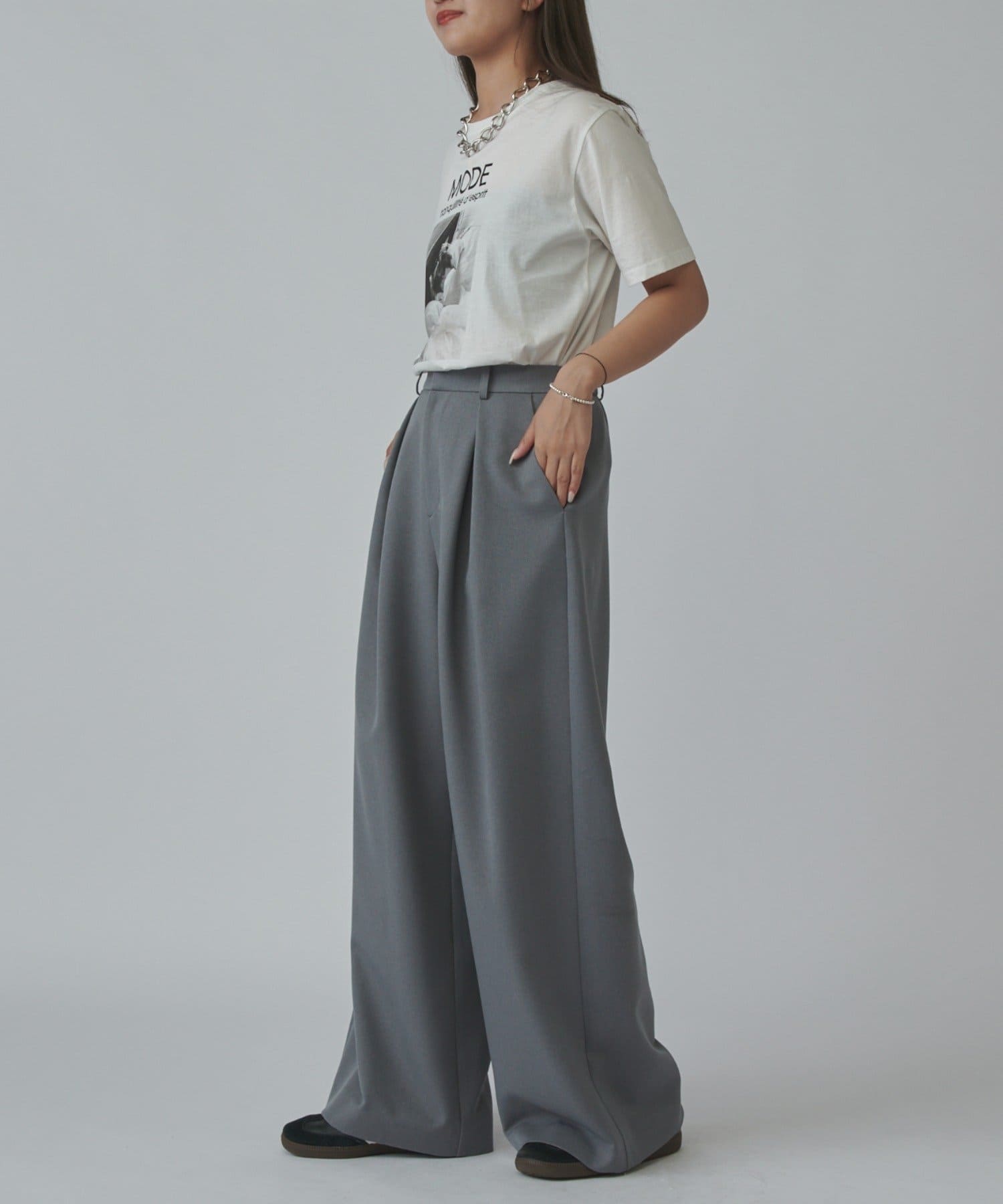 ・タックデザインが映えるパンツなので、トップスはシンプルでもOK!
