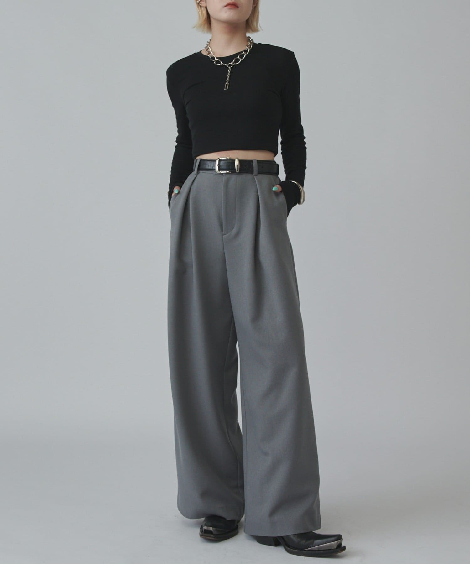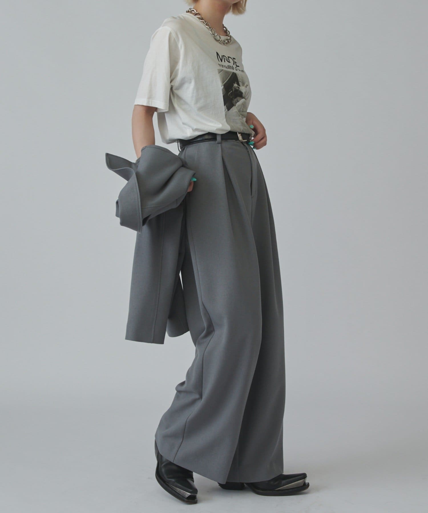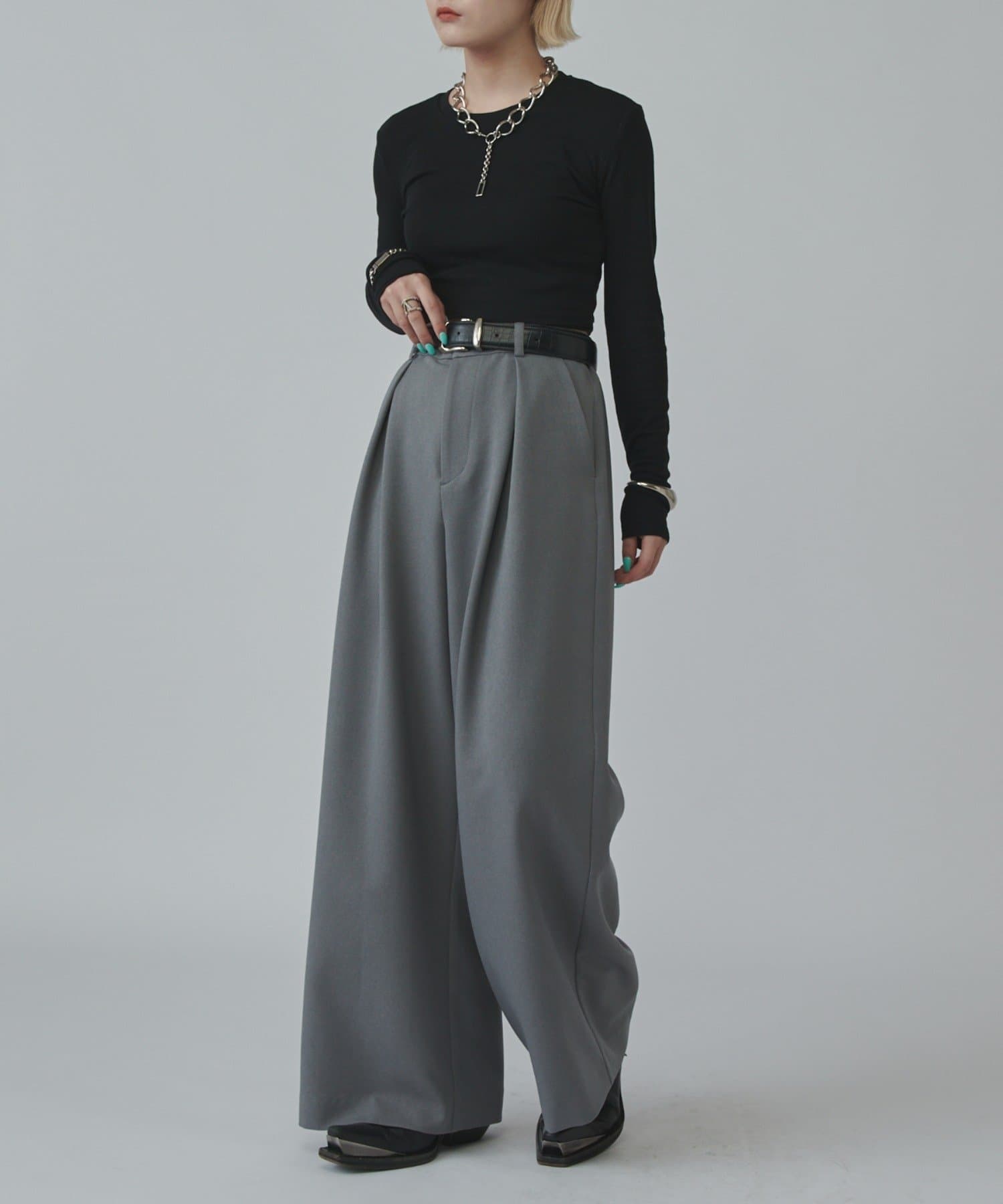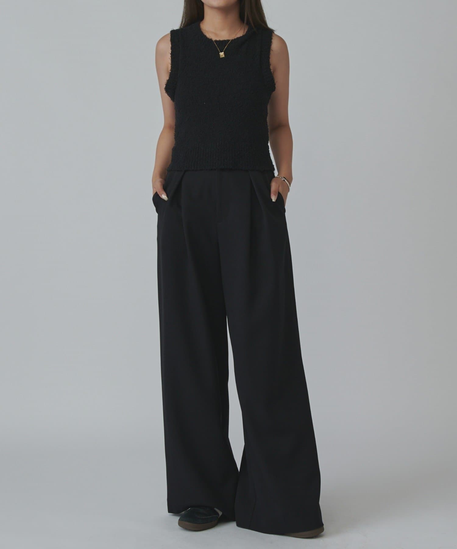 ・タックデザインが映えるパンツなので、トップスはシンプルでもOK!
