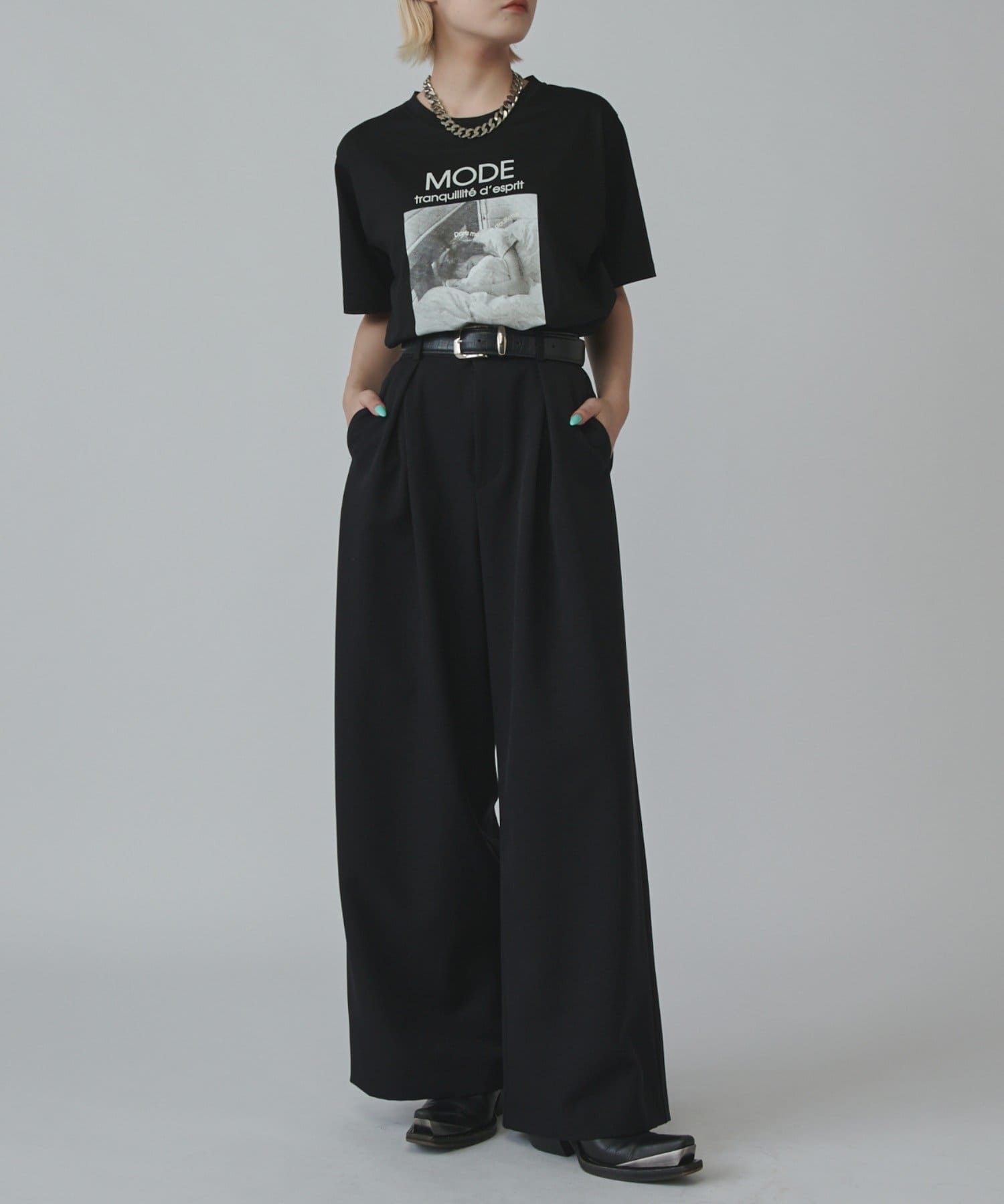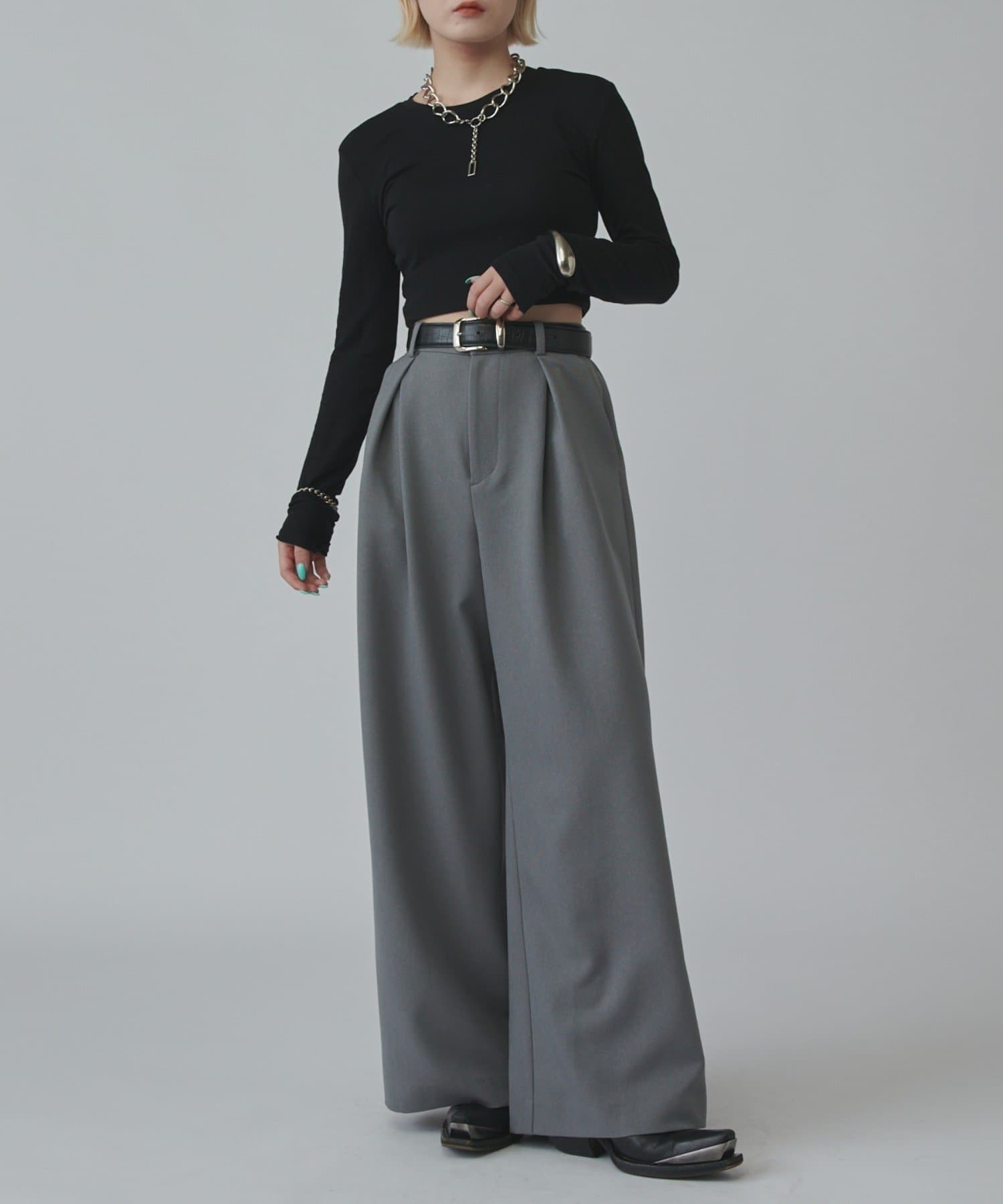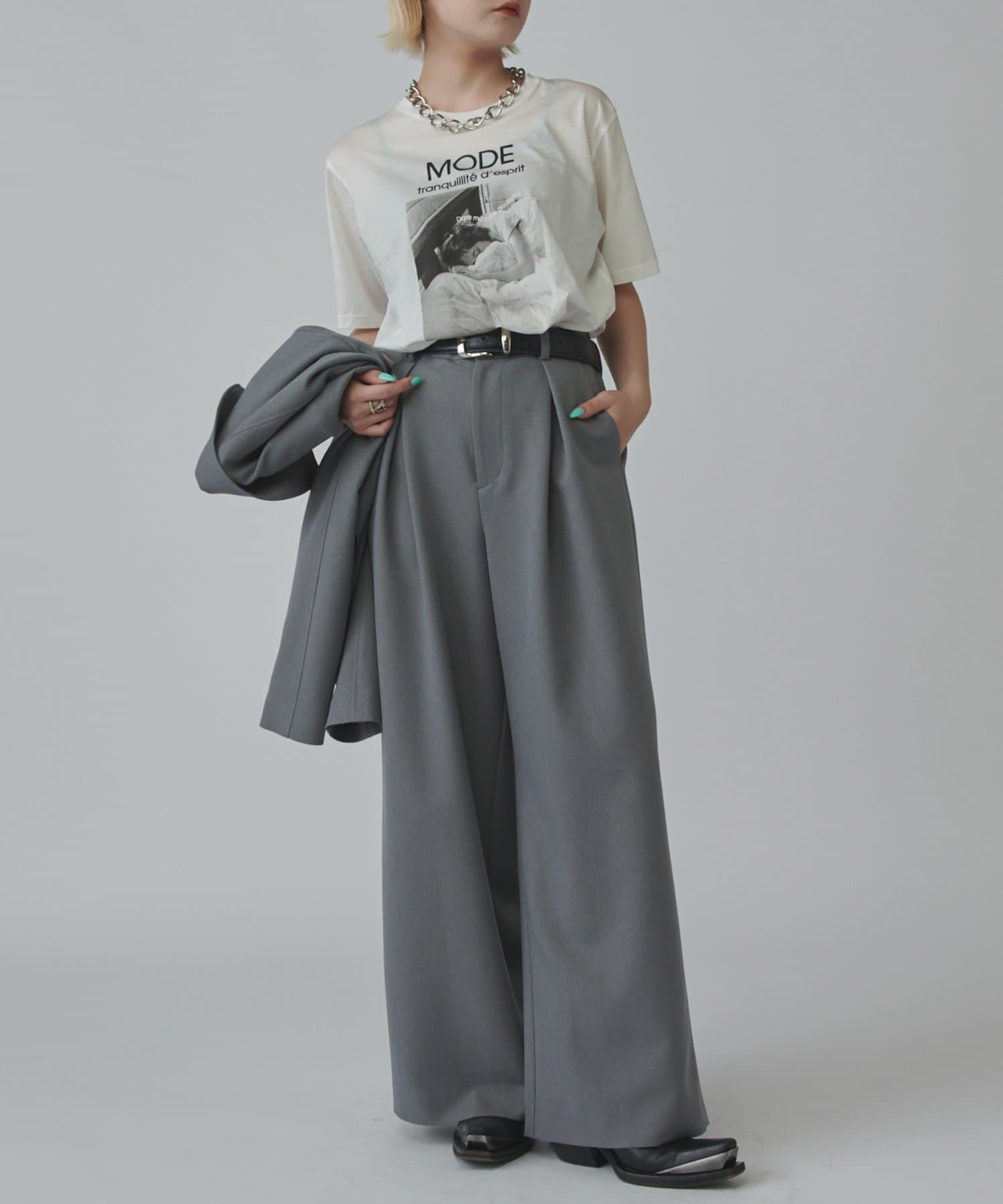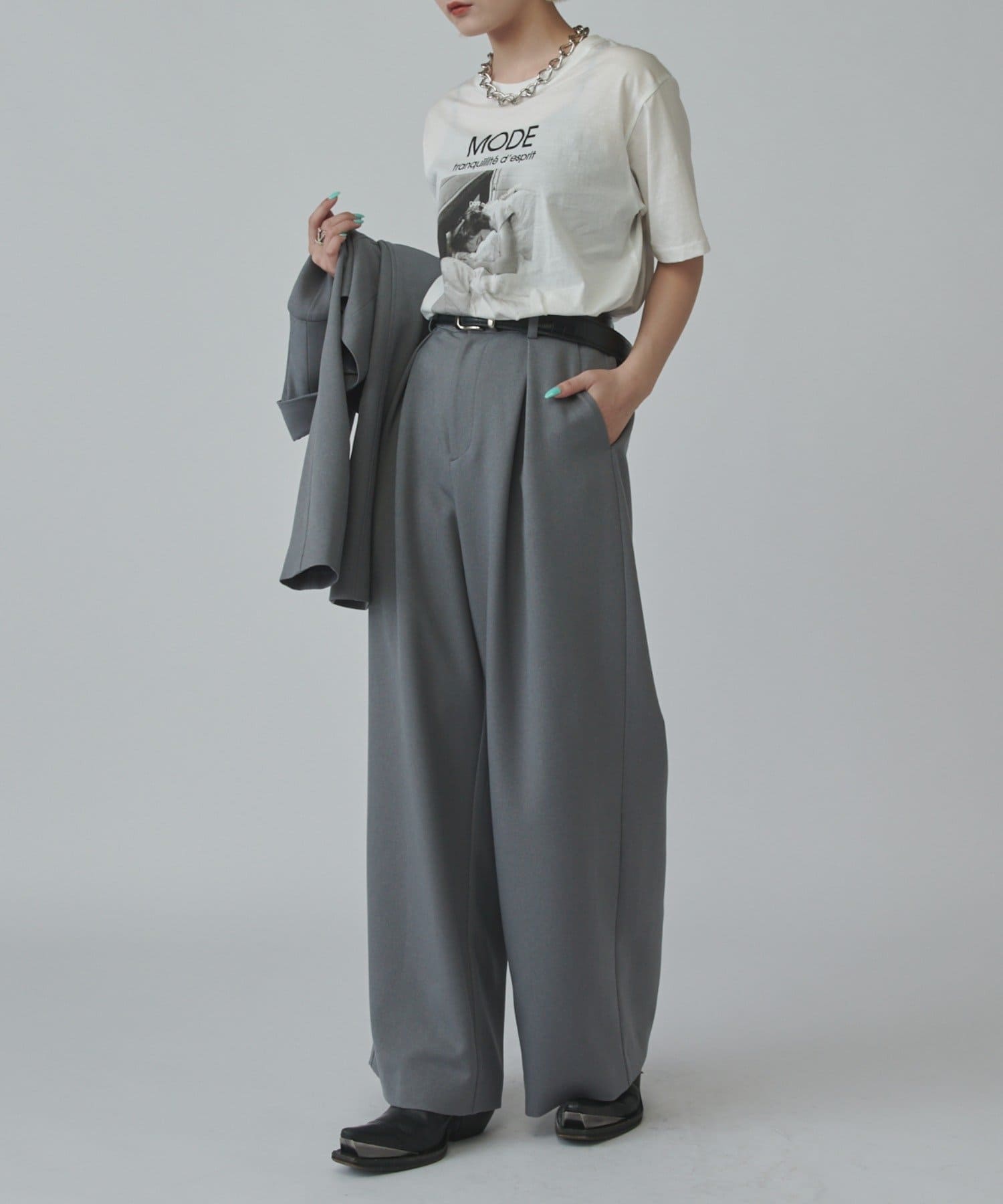 ・タックデザインが映えるパンツなので、トップスはシンプルでもOK!