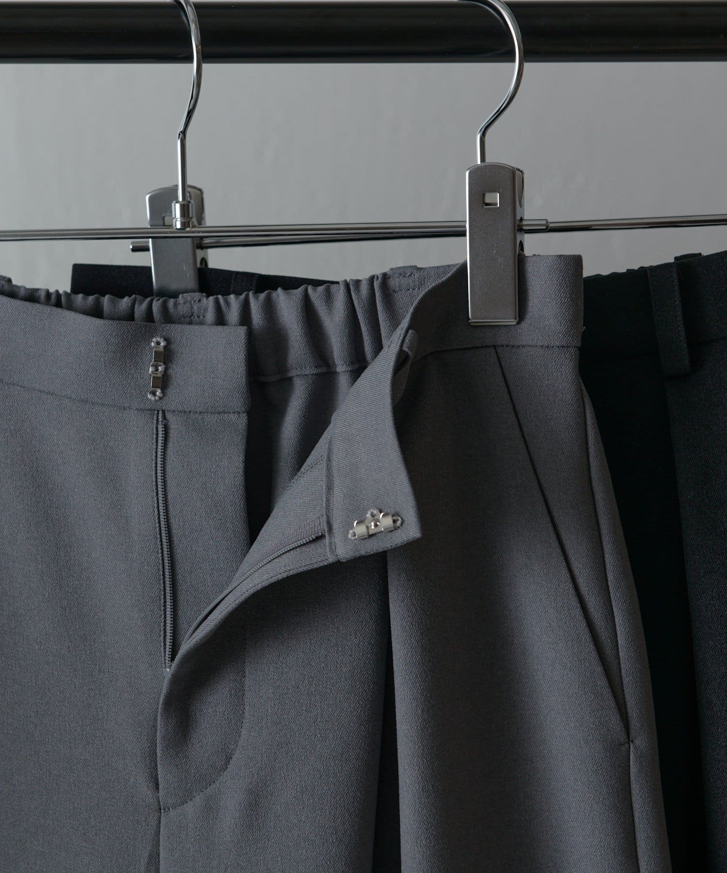 ・程よく光沢感があり上品な印象もありつつ、履き心地の良い素材感で、オールシーズン着回ししやすい万能スラックスです!