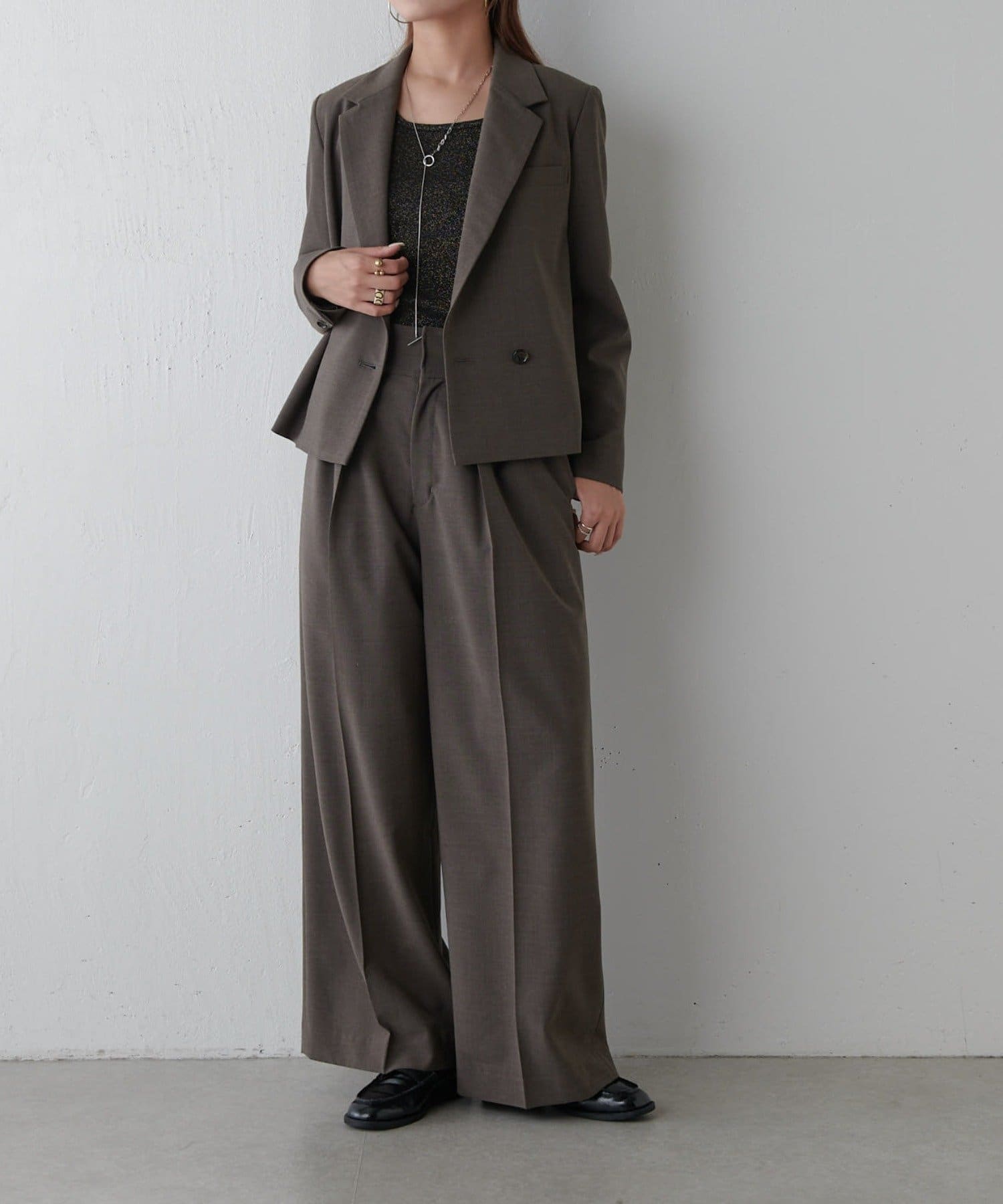 セットアップのジャケット合わせはもちろん、シンプルなシアートップス合わせやカジュアルなTシャツ合わせにもピッタリ!