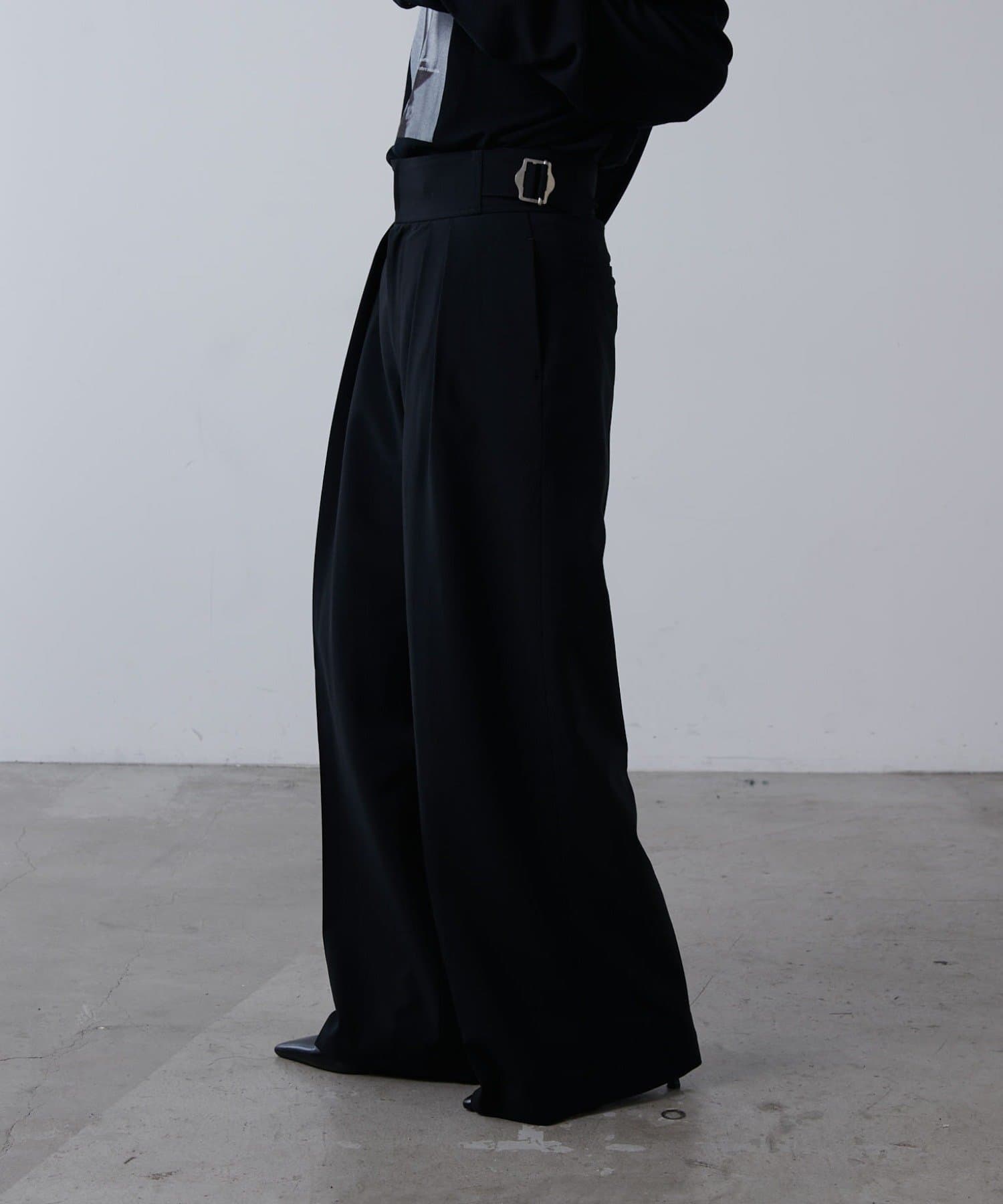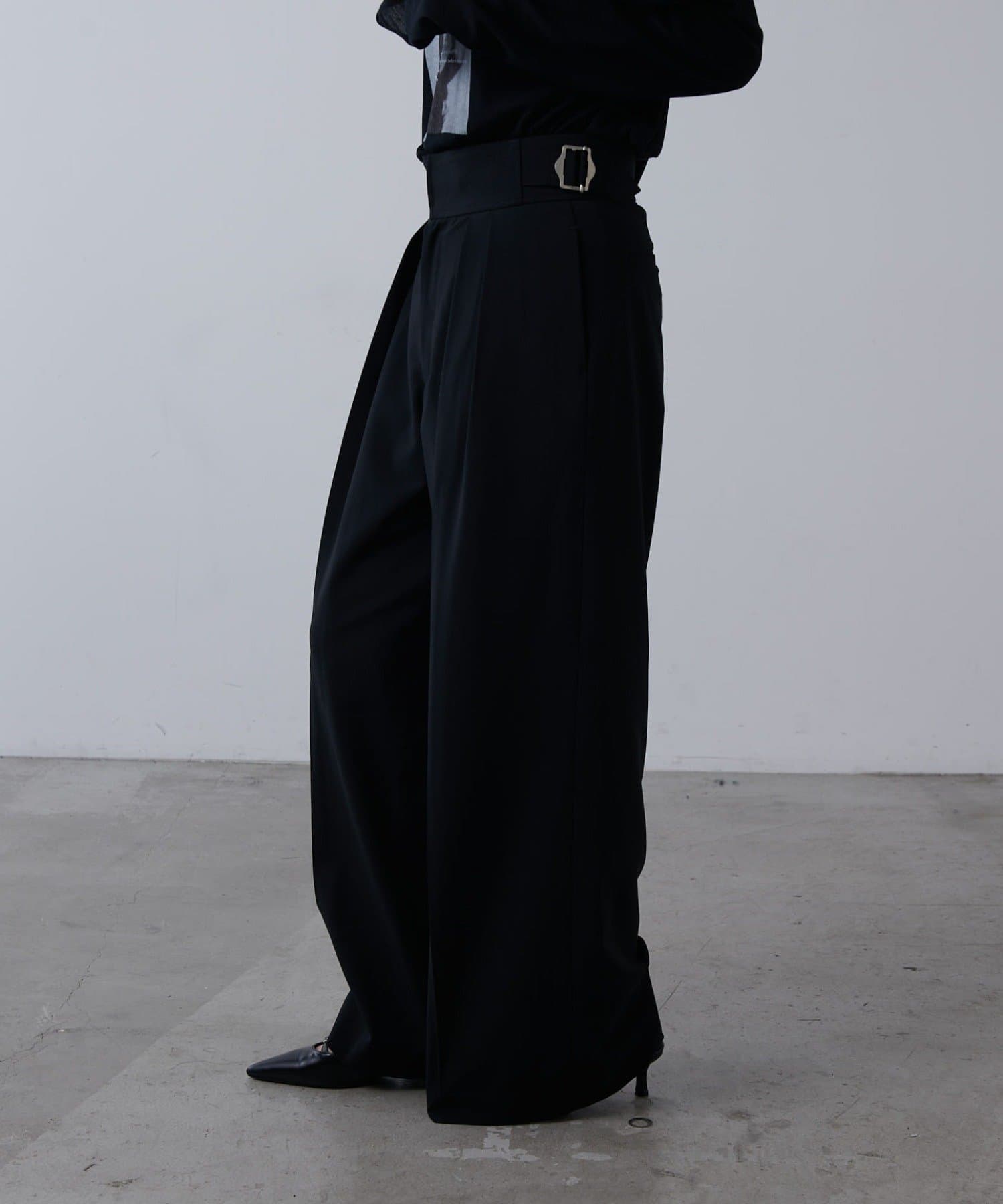 バックル付きのサイドベルトがアクセントとなり、シンプルながらも存在感抜群◎