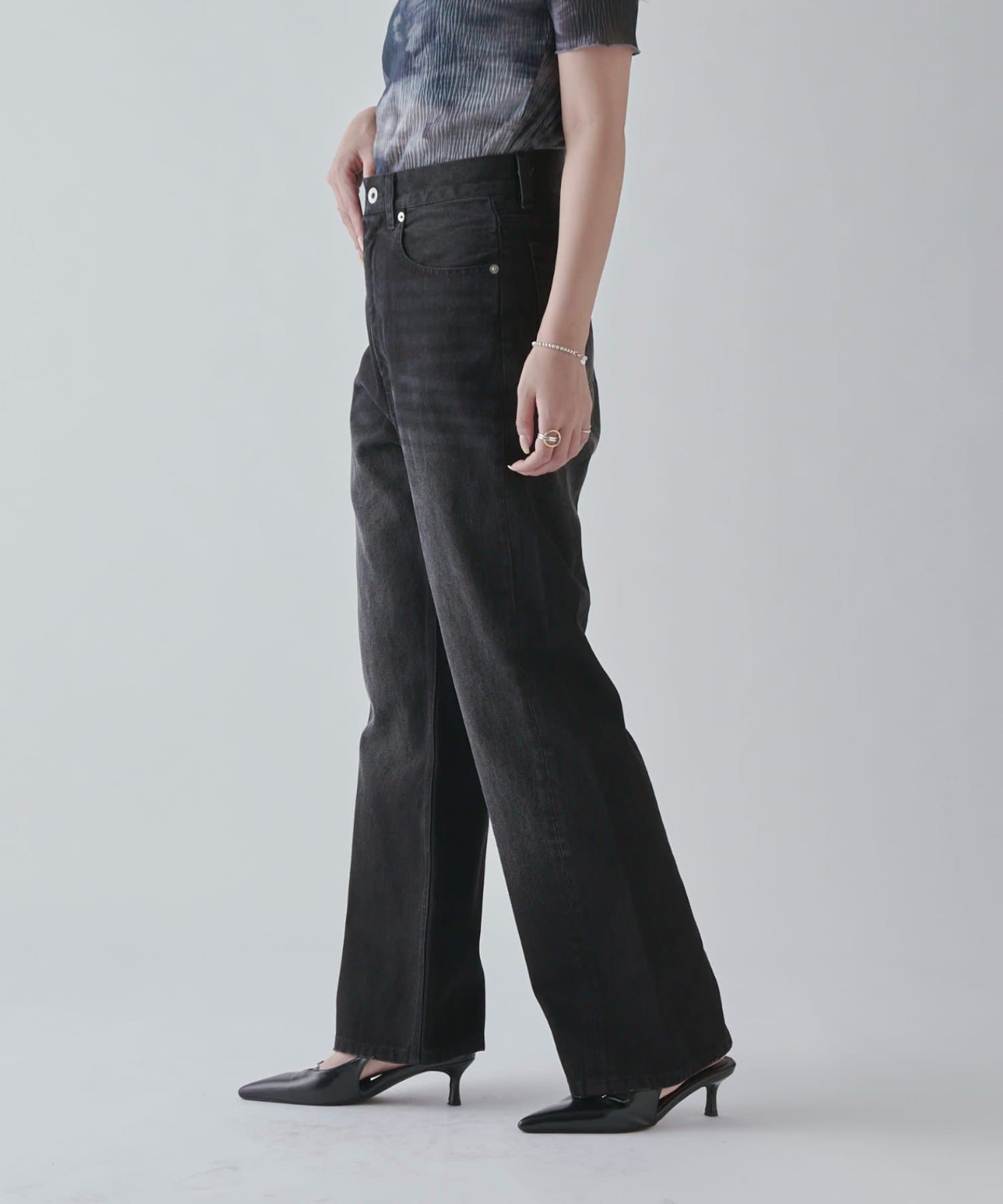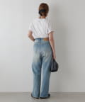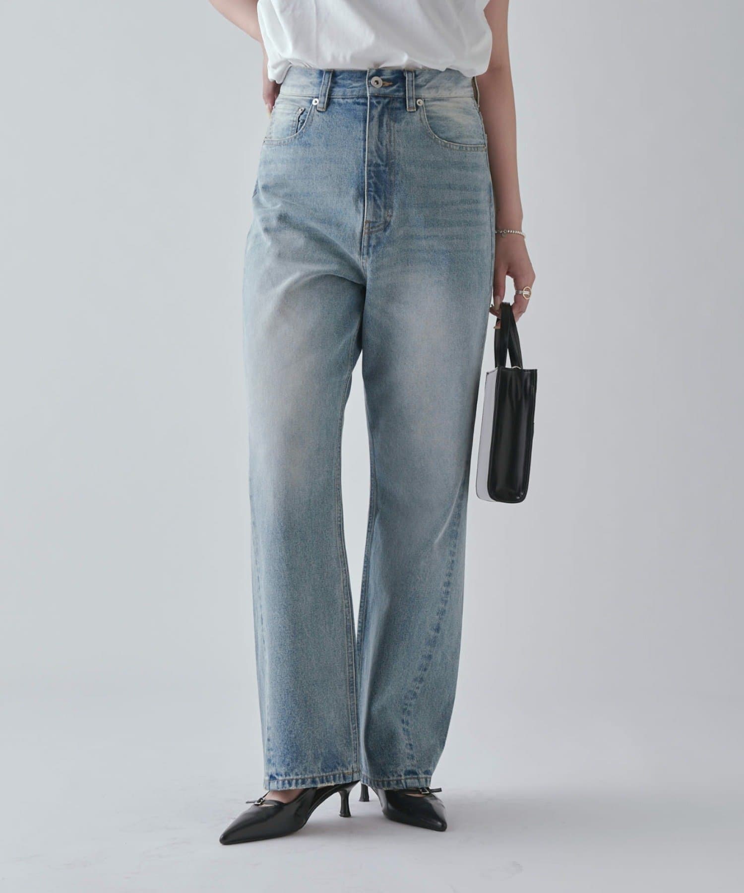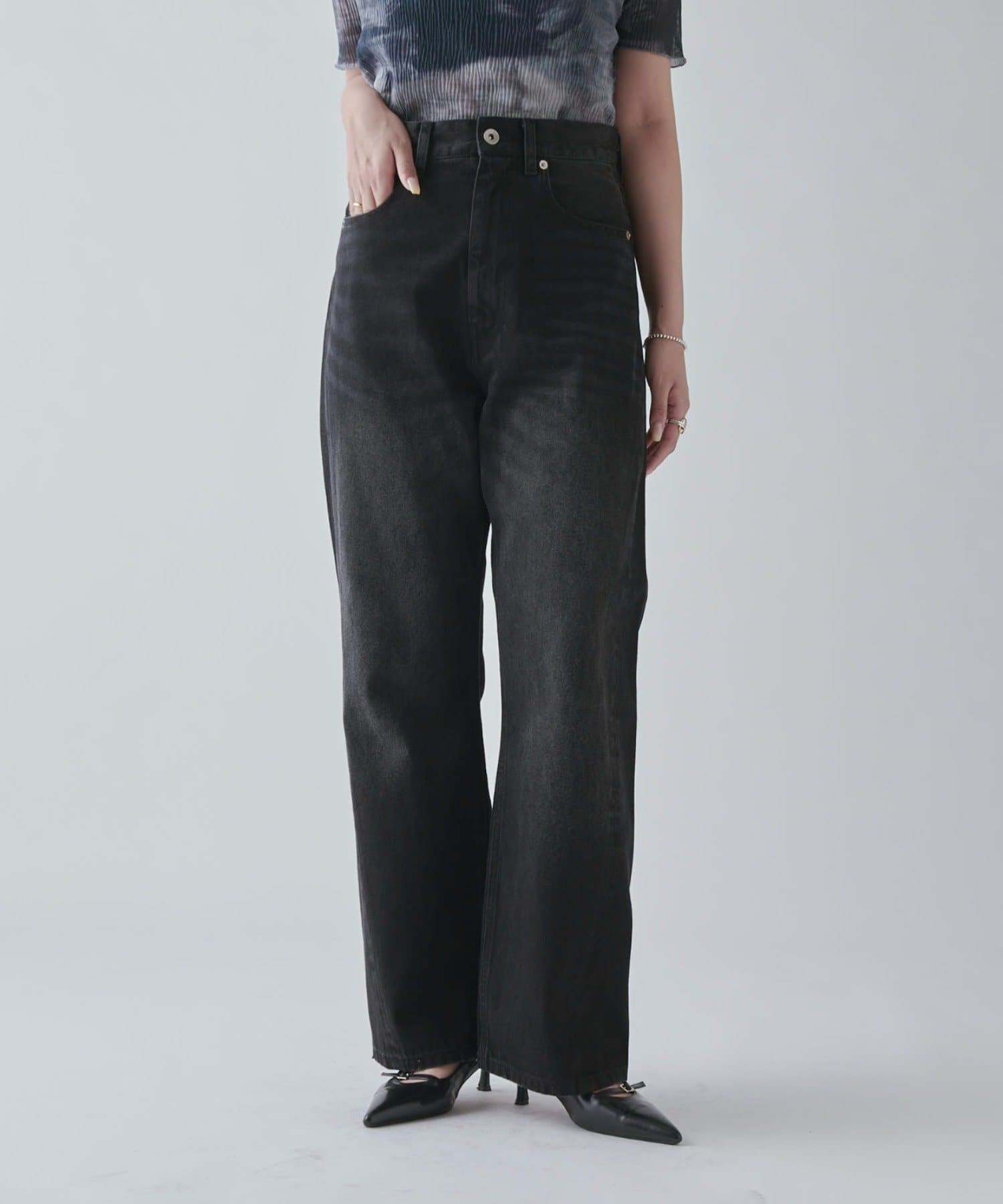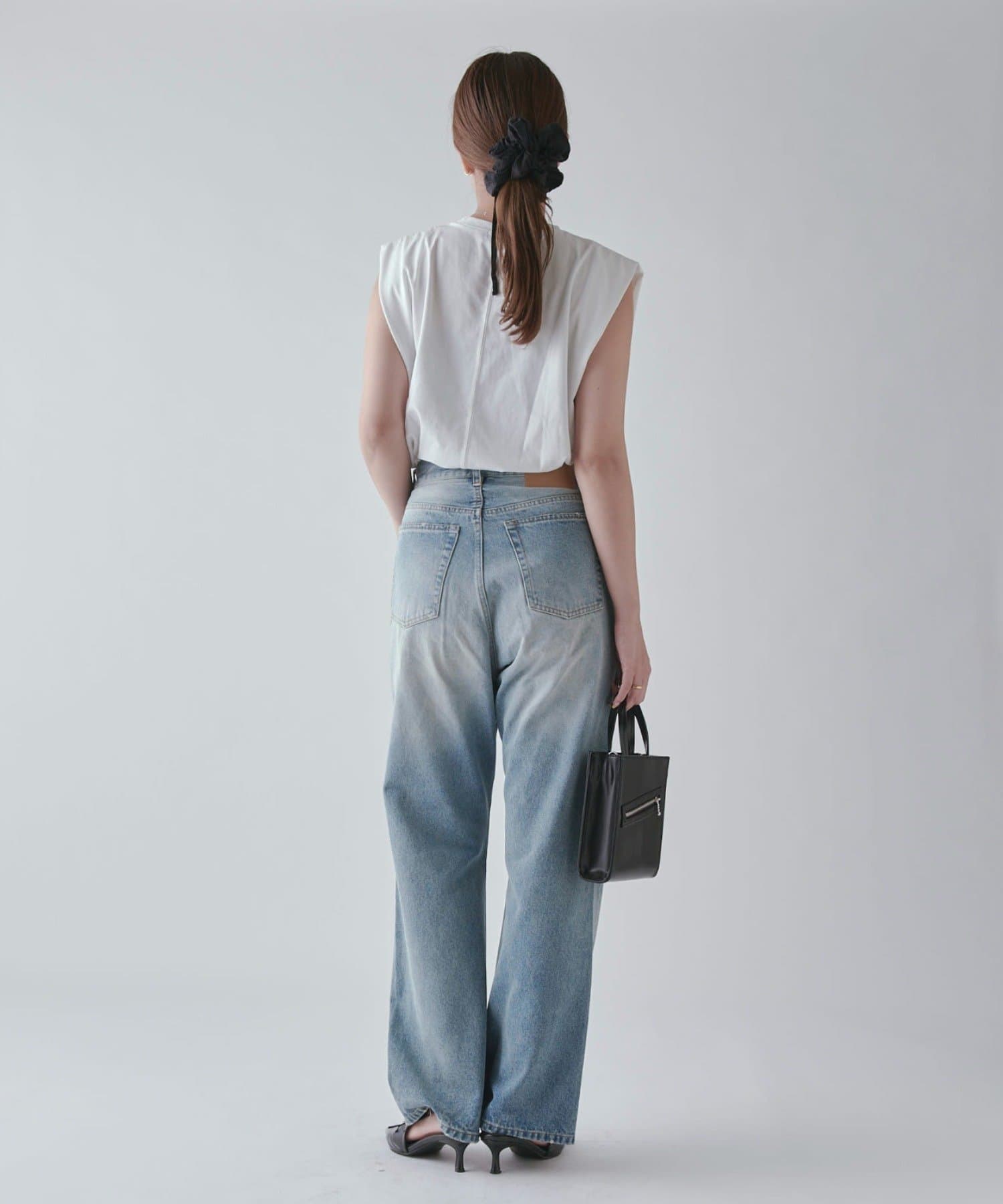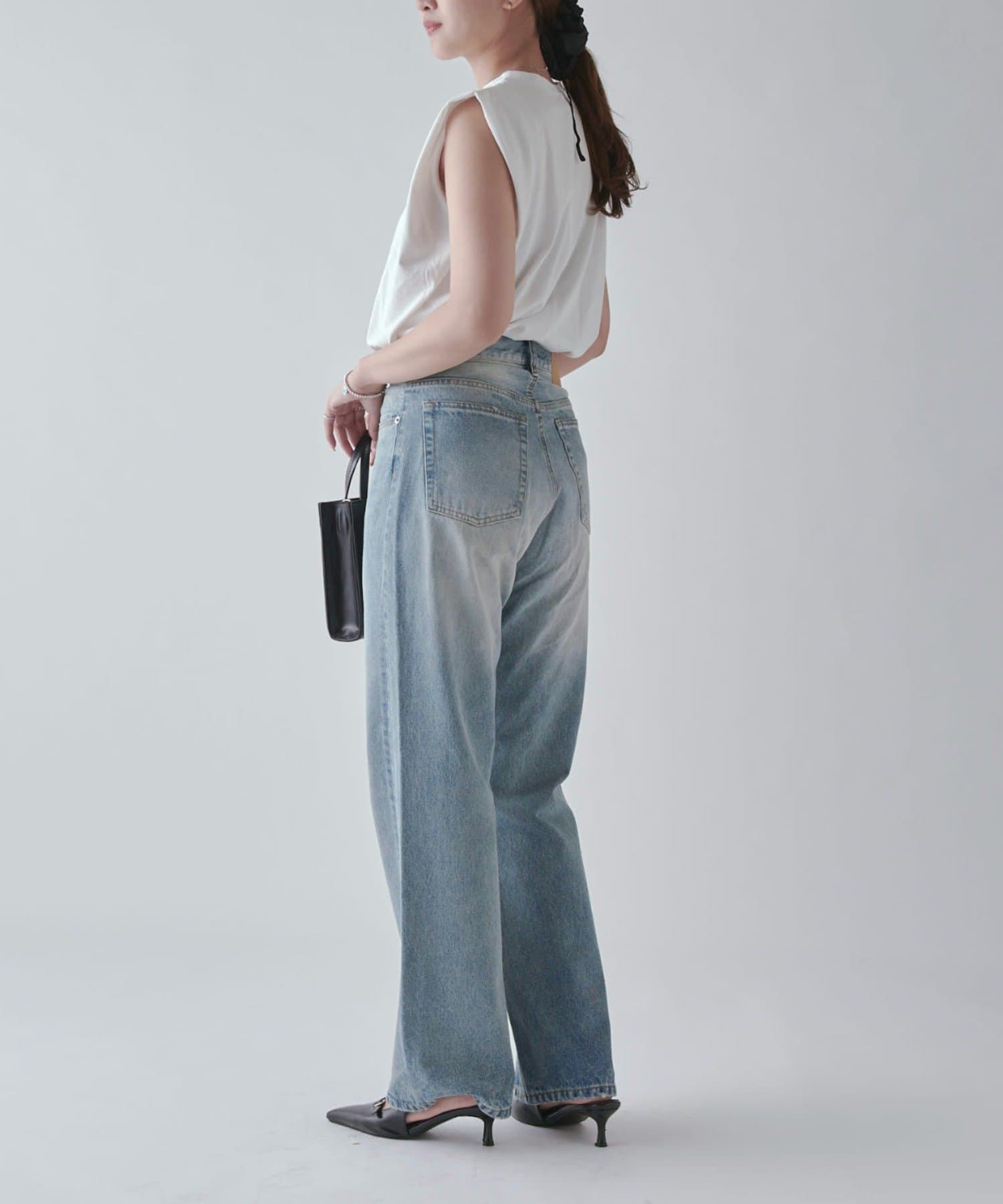 ワイドすぎず女性らしいシルエットなので、大人カジュアルに着こなせるストレートデニムとなっております。