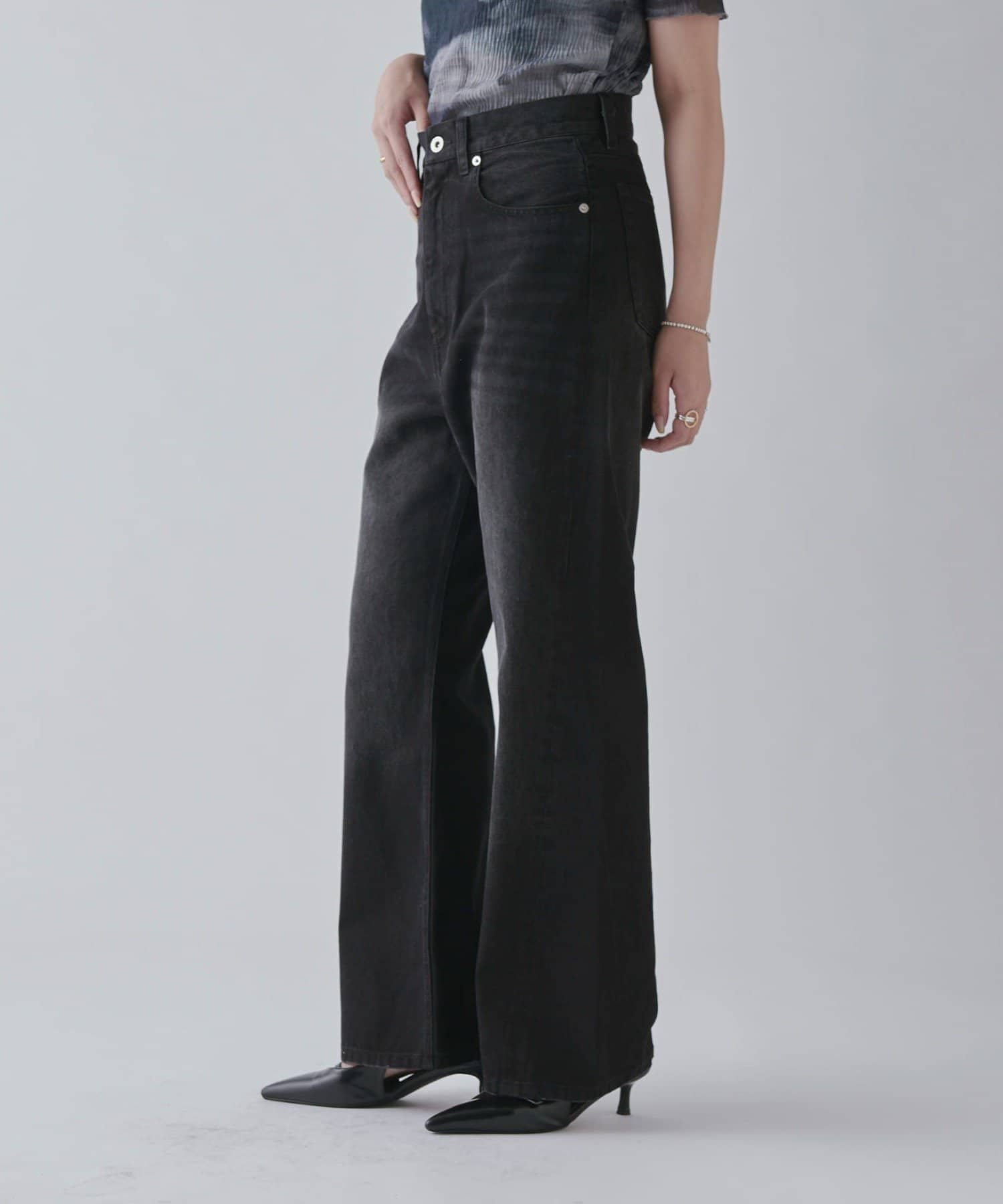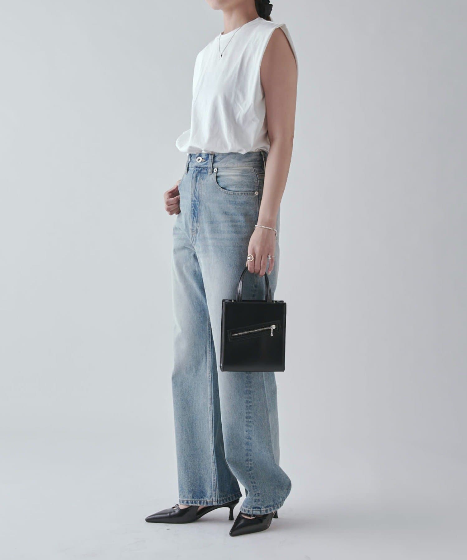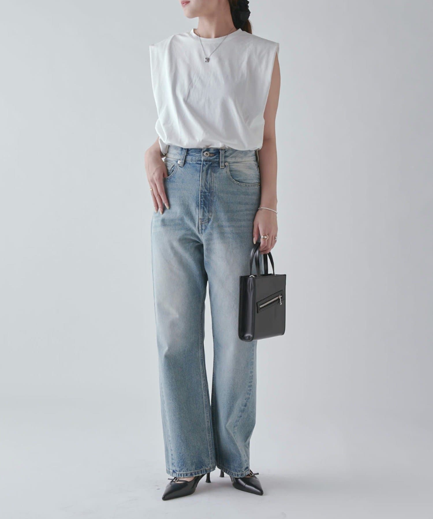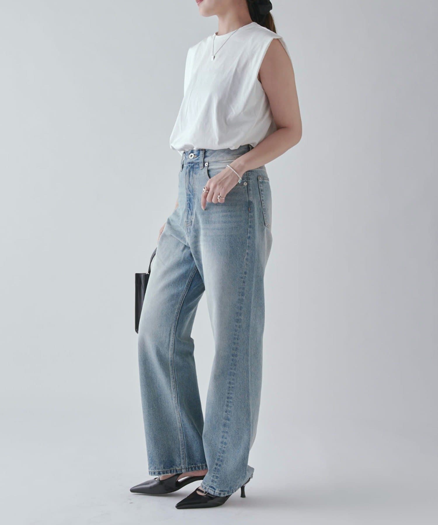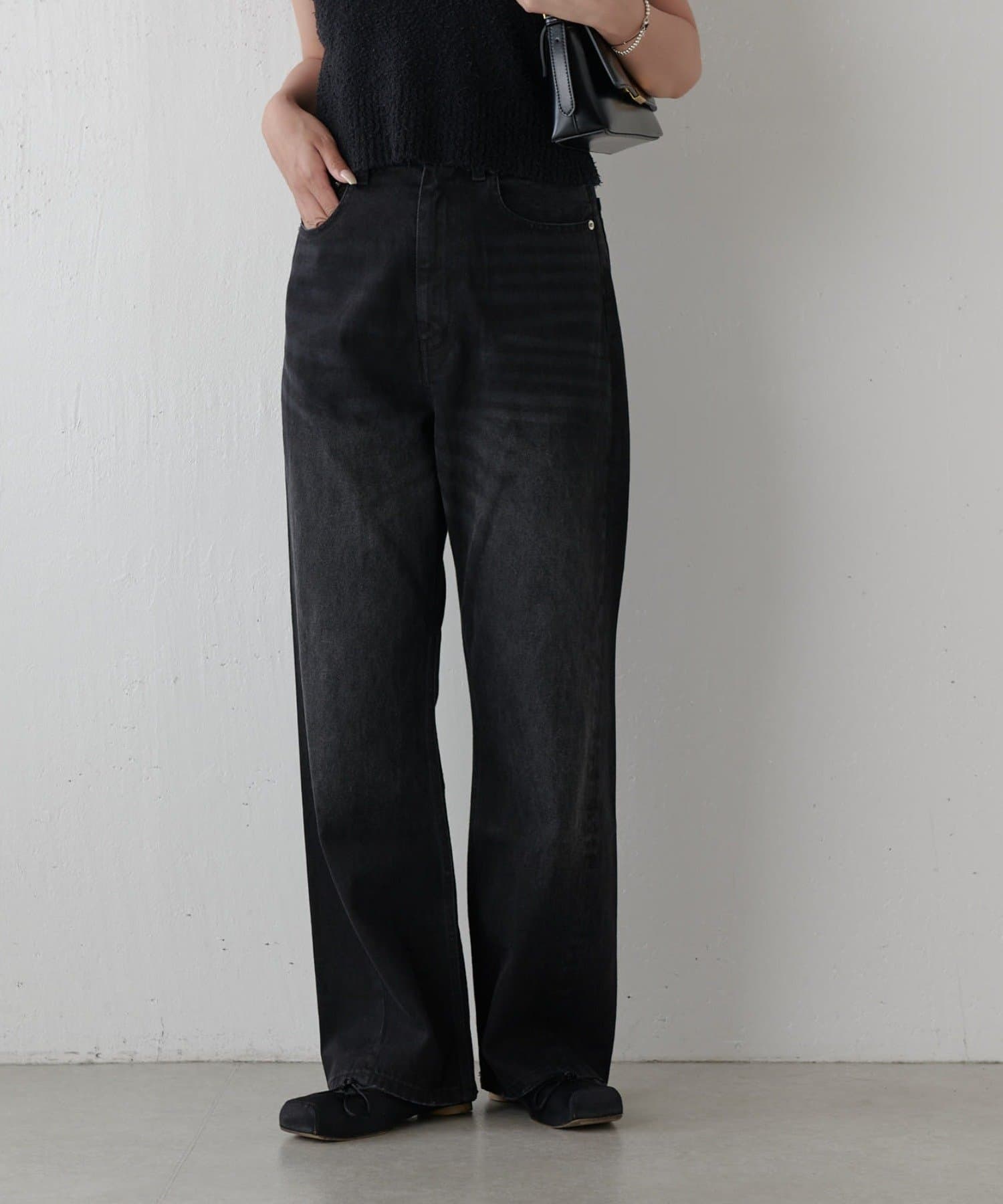 ワイドすぎず女性らしいシルエットなので、大人カジュアルに着こなせるストレートデニムとなっております。