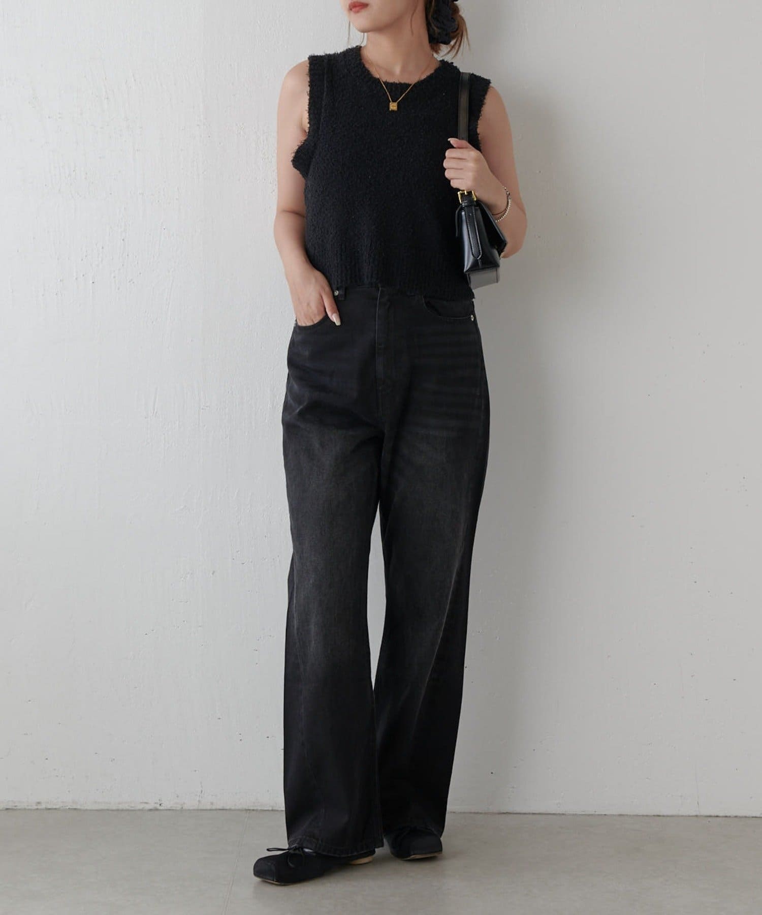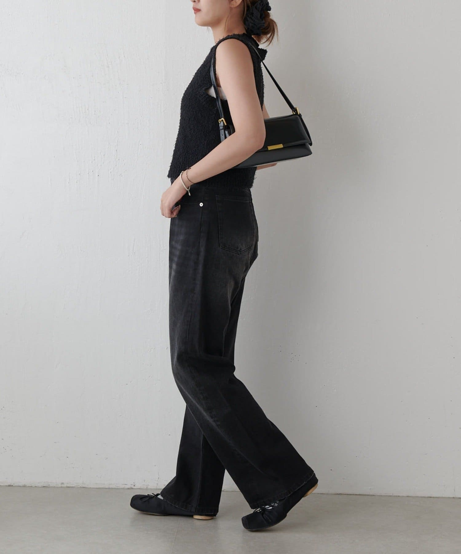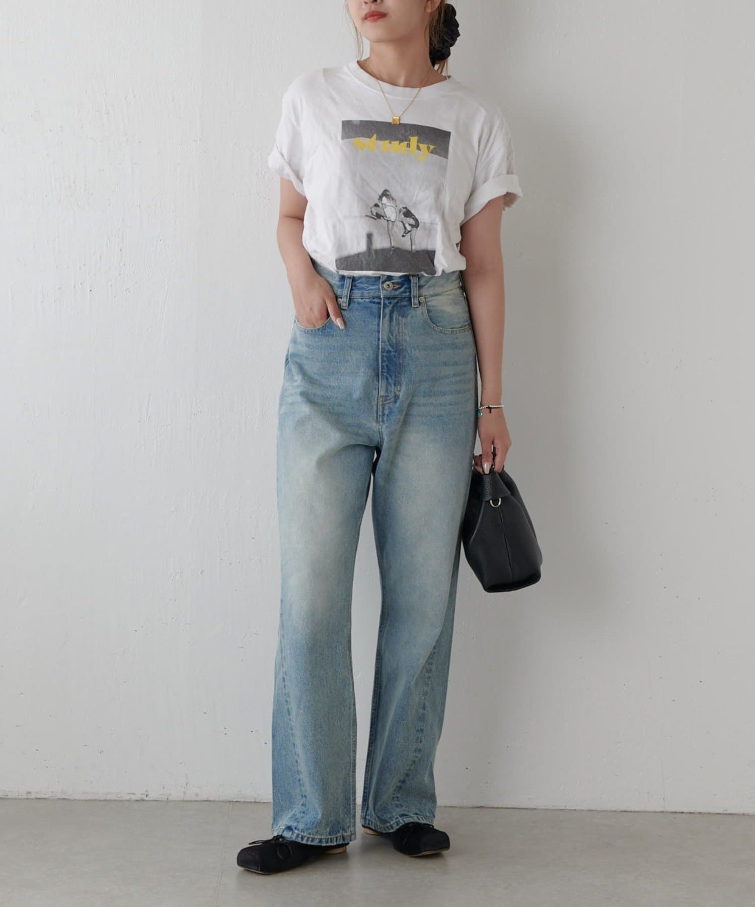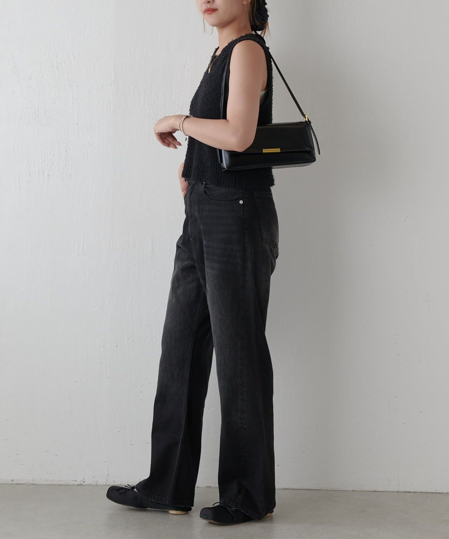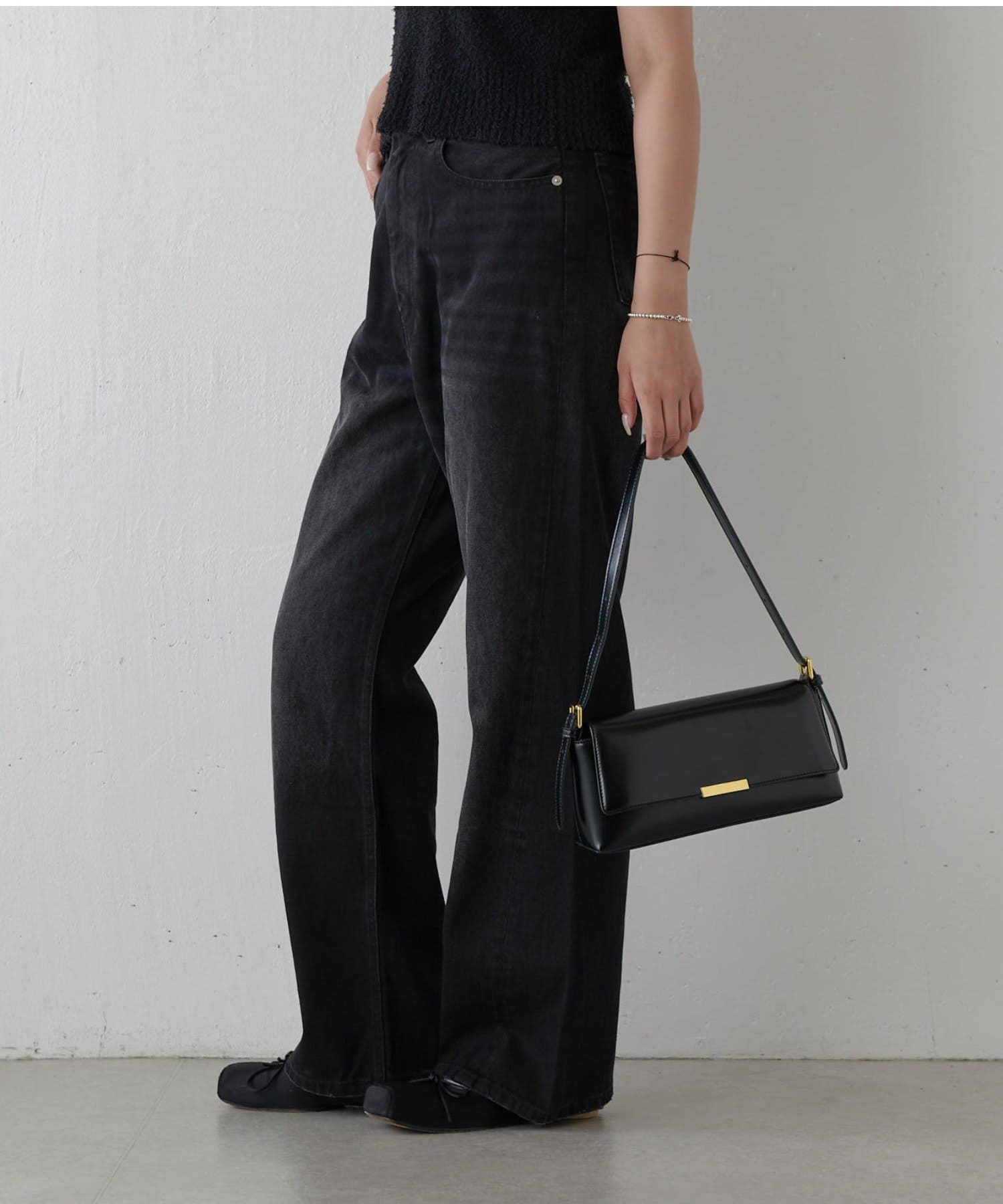 ワイドすぎず女性らしいシルエットなので、大人カジュアルに着こなせるストレートデニムとなっております。