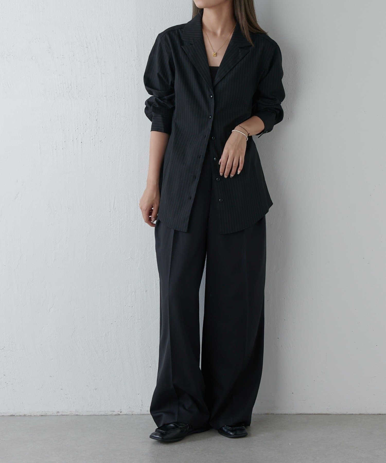 ジャケットライクに着れるシャツで、キレイに着れるのでどの骨格の方でも似合うアイテムです。