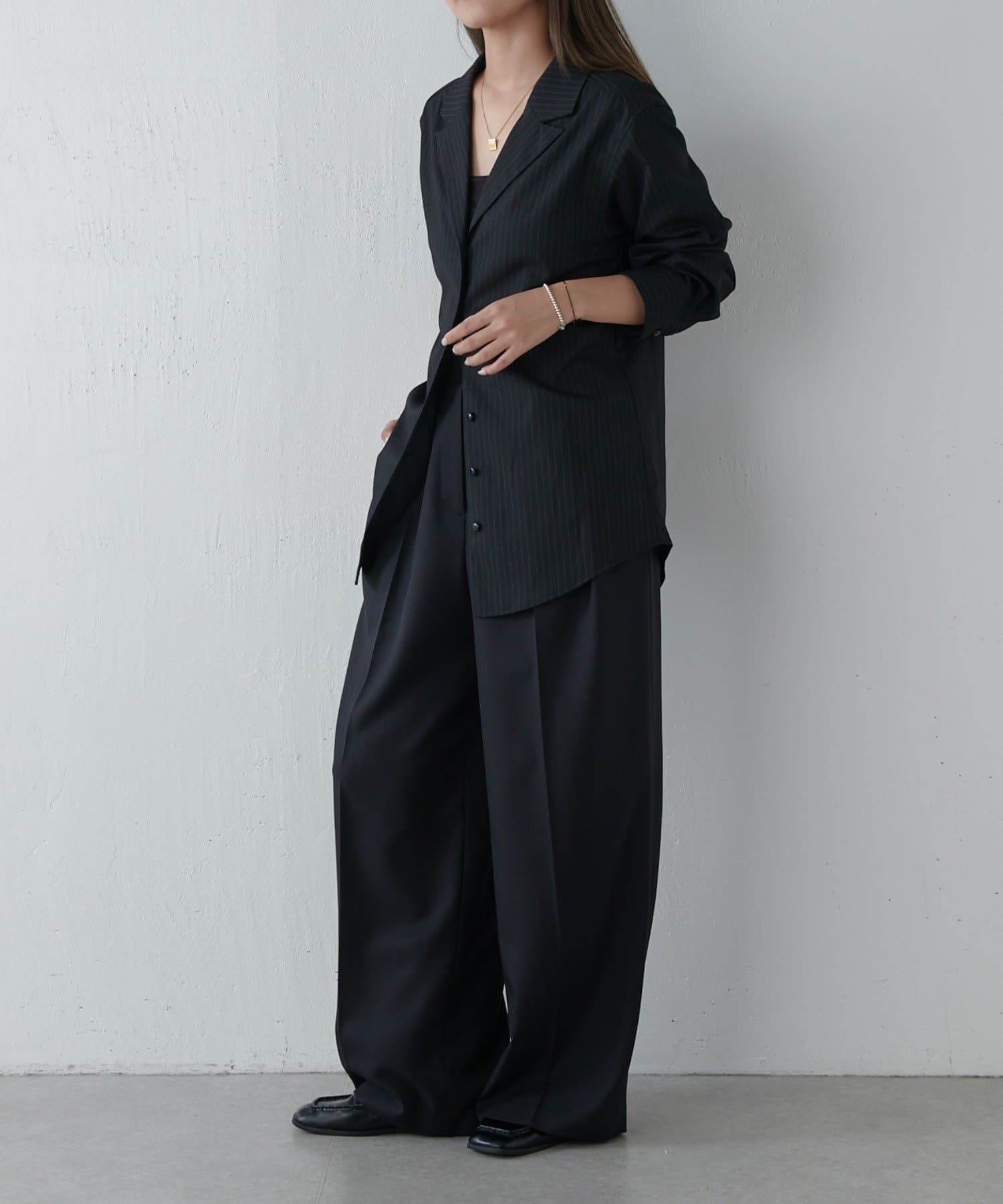 インナーにTシャツ入れて羽織にしても、きちんと感のあるスラックスで合わせるのもおススメ。