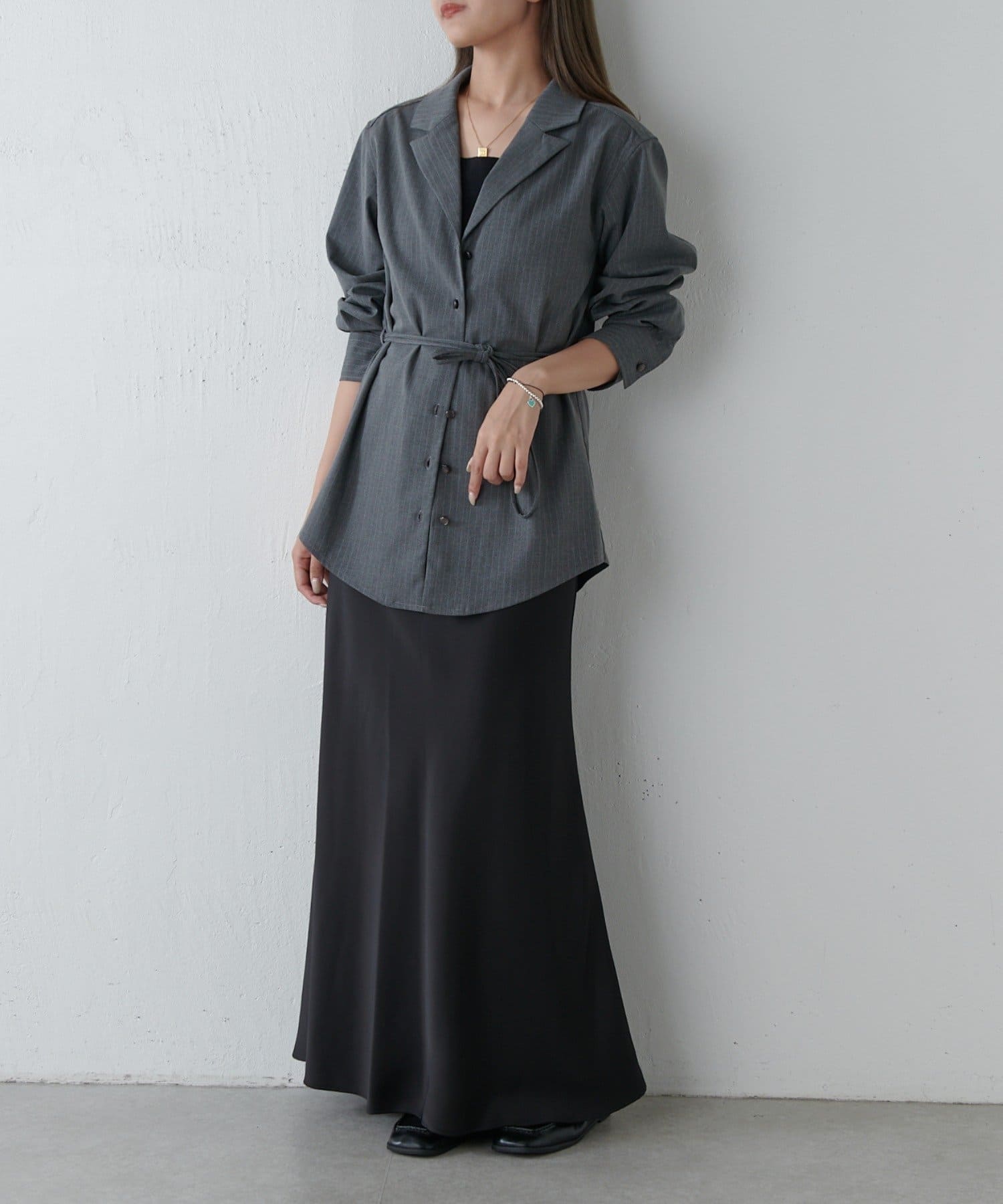 両脇には細い華奢な糸ループを施してあり、ウエストマークも作れるので着やせ効果も抜群◎