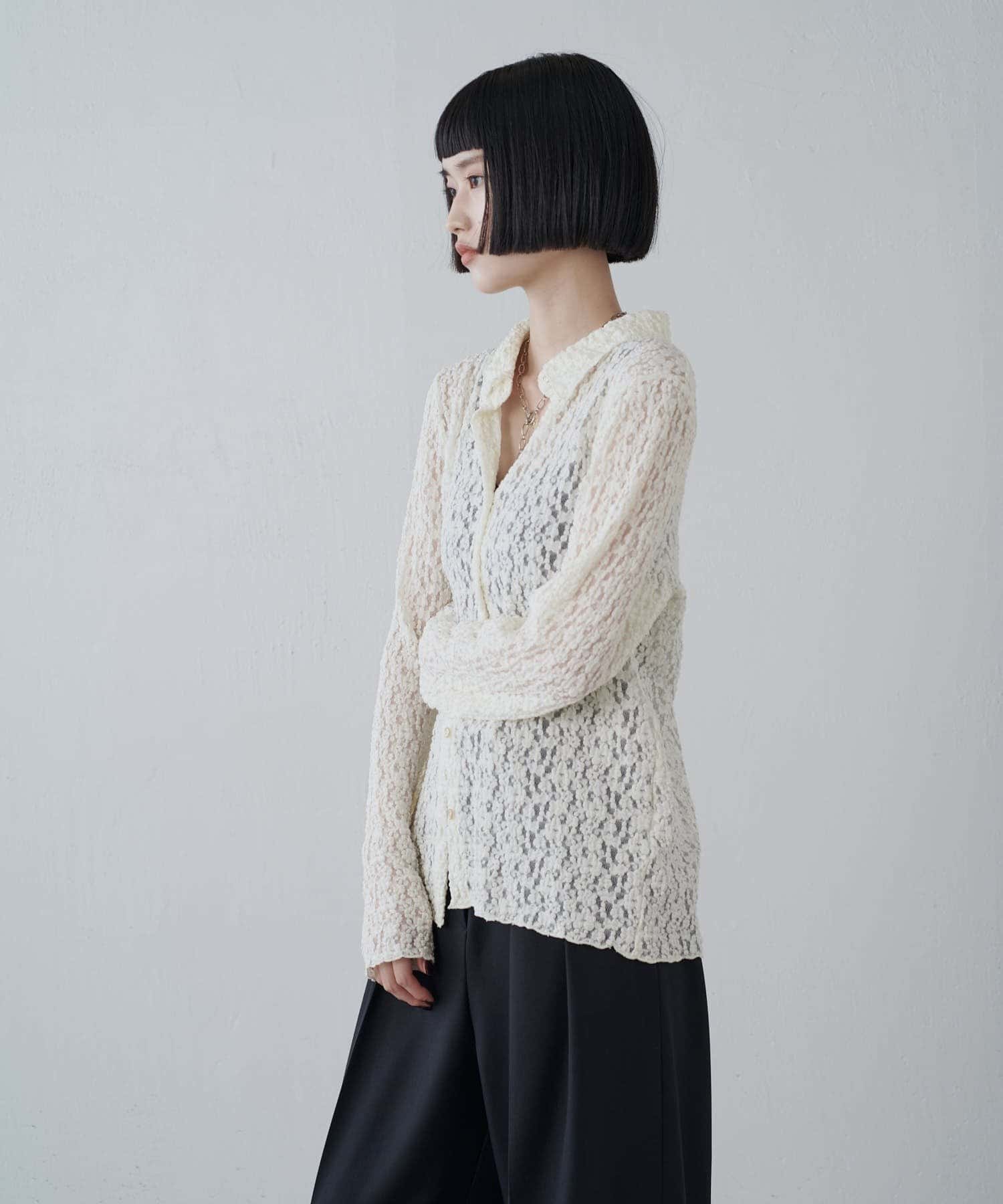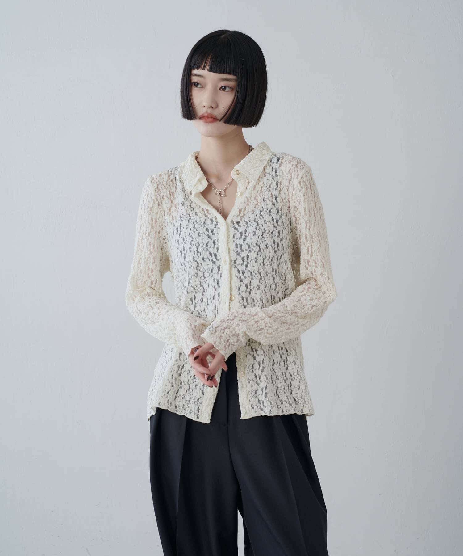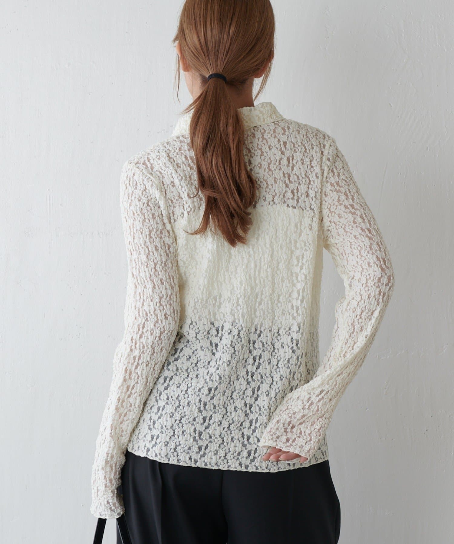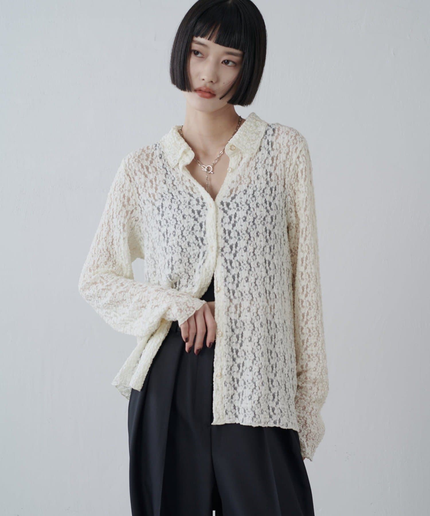 繊細なレース素材で仕立てた、シアーレースシャツ。