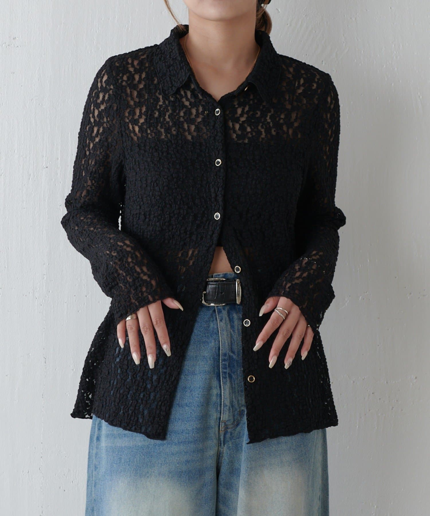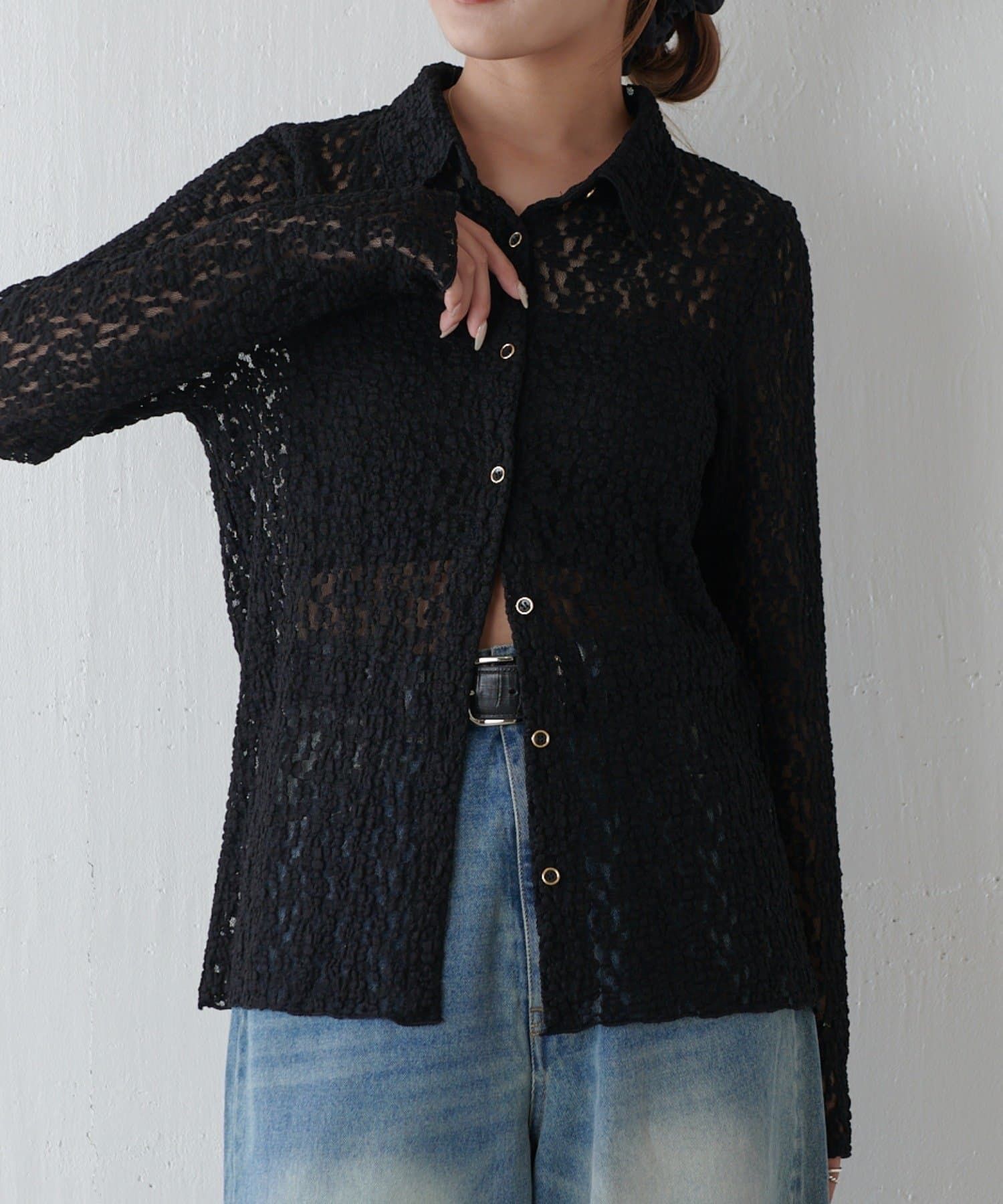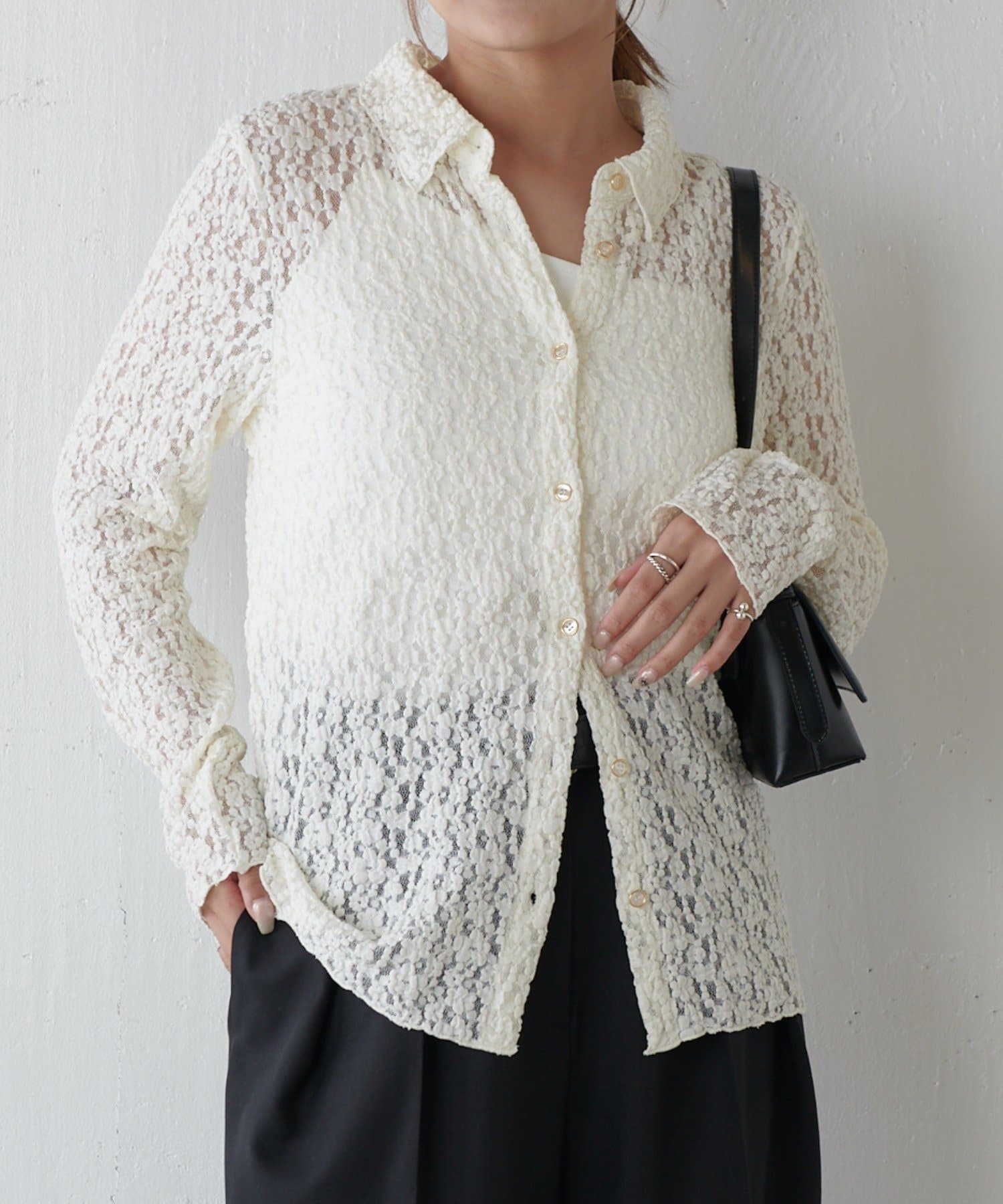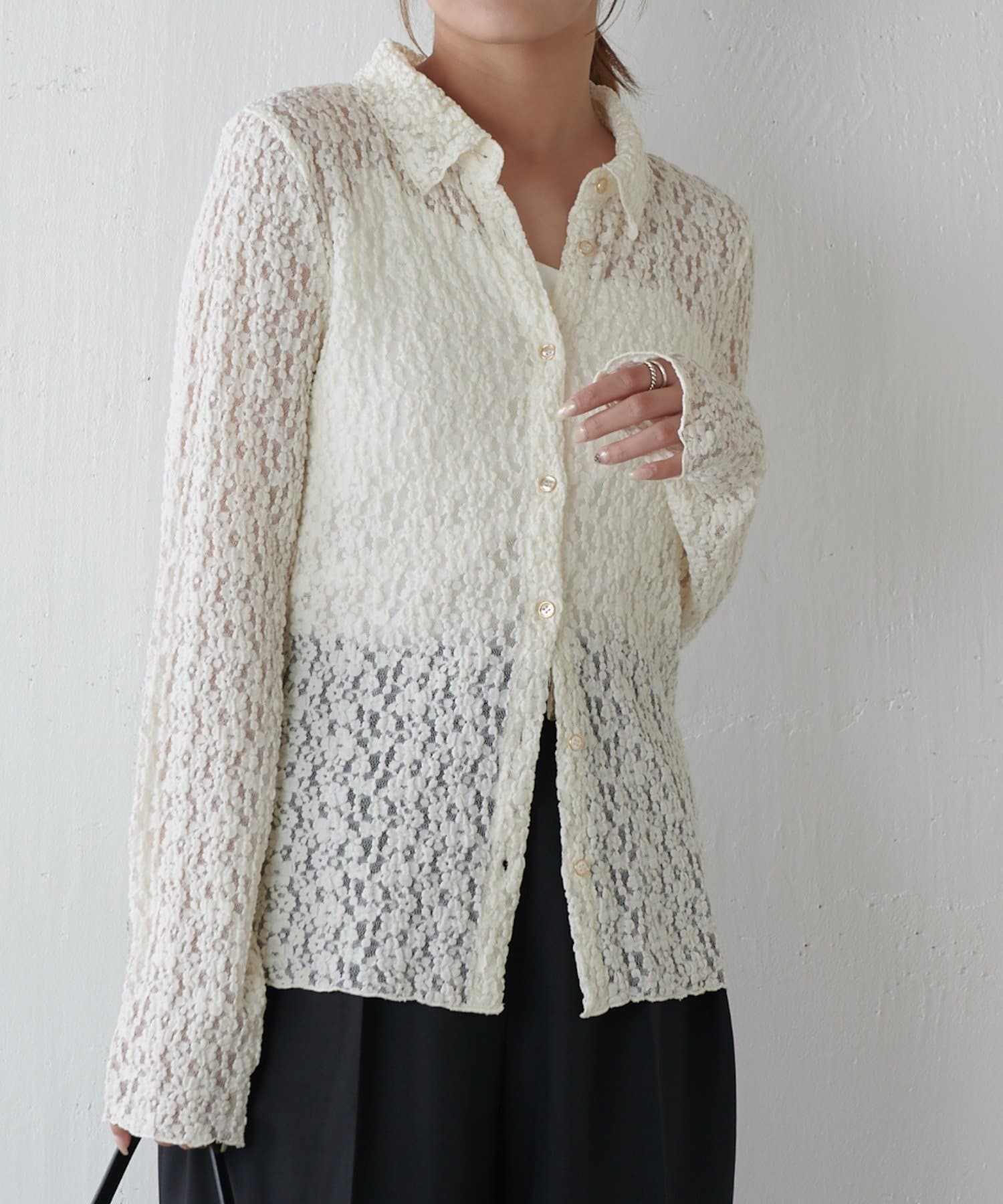 繊細なレース素材で仕立てた、シアーレースシャツ。