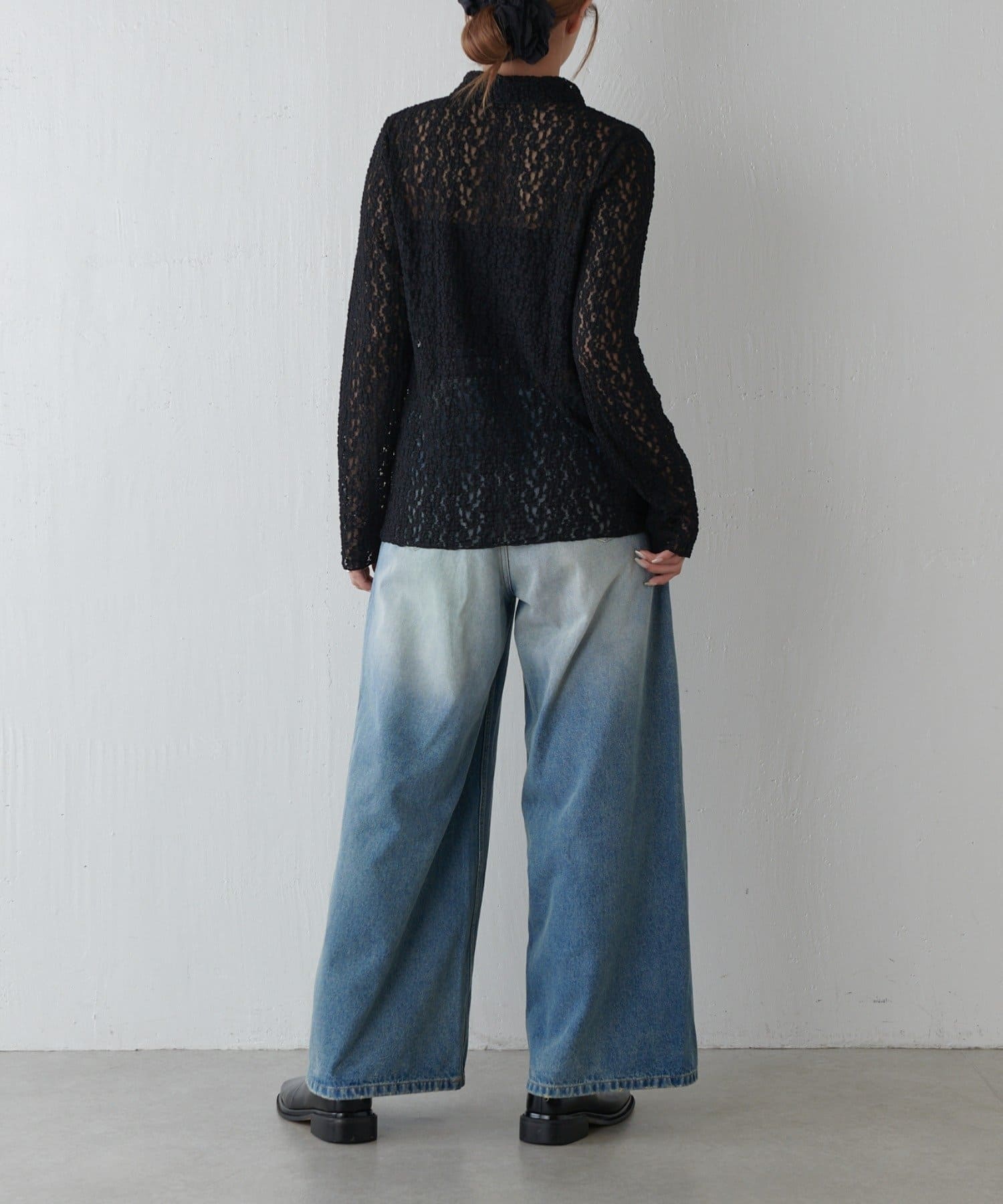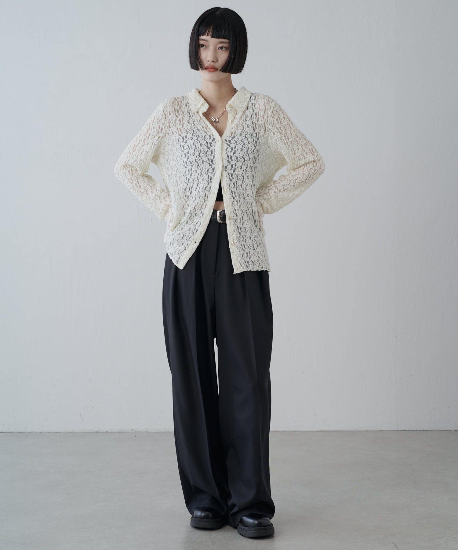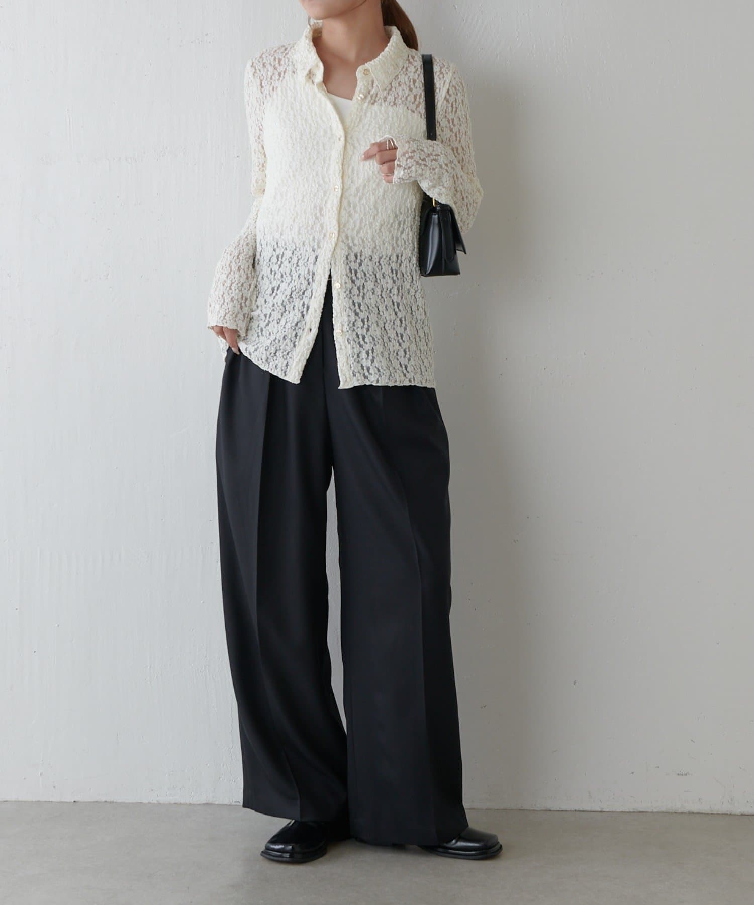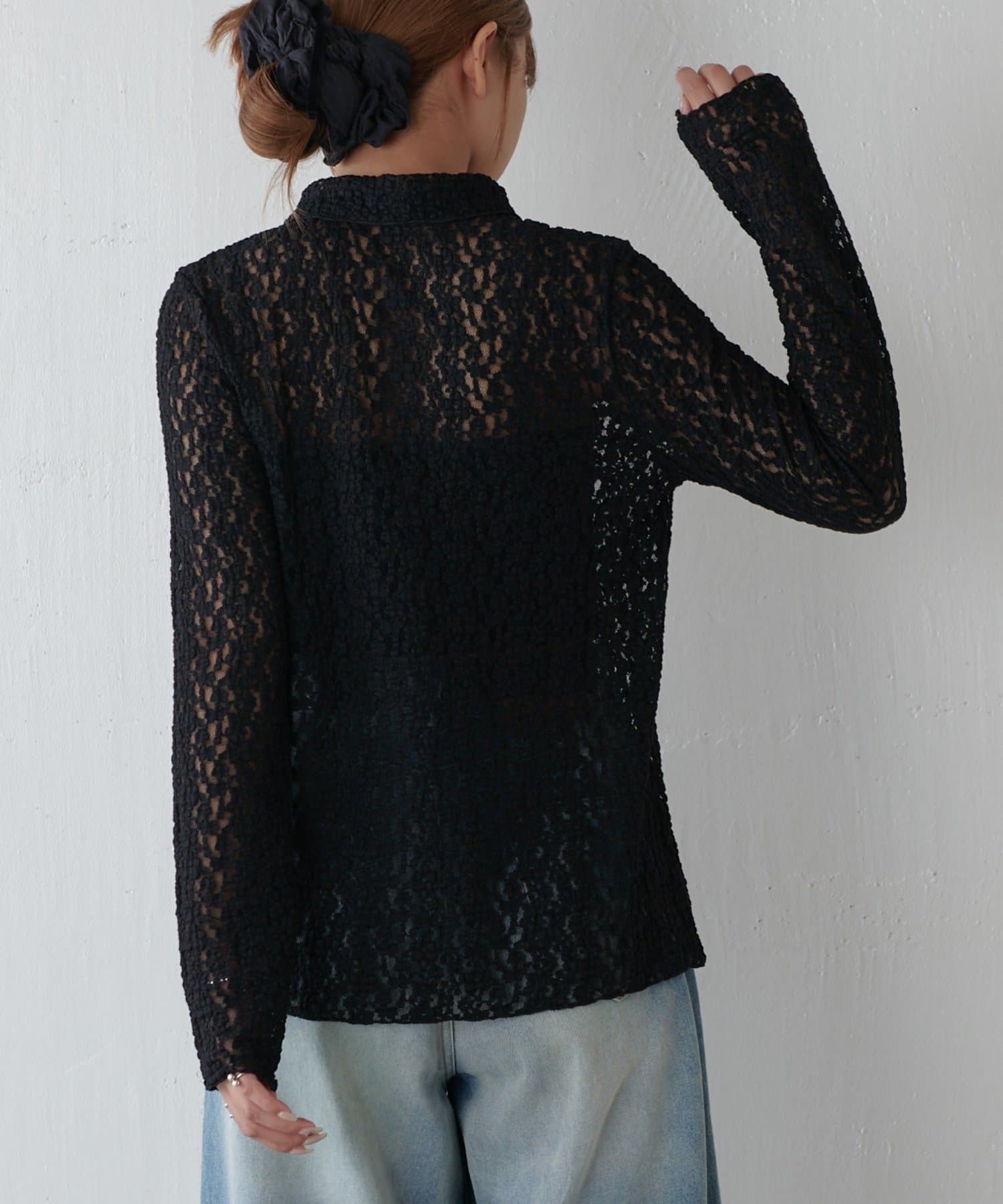 繊細なレース素材で仕立てた、シアーレースシャツ。