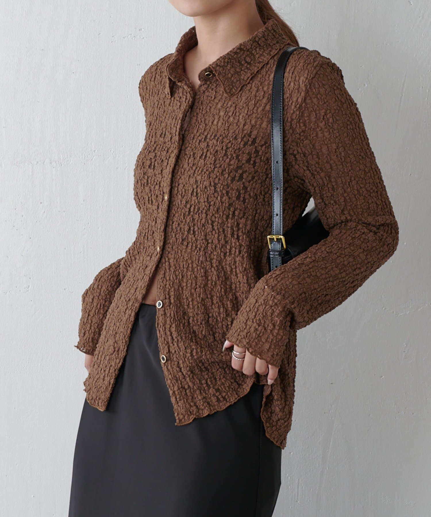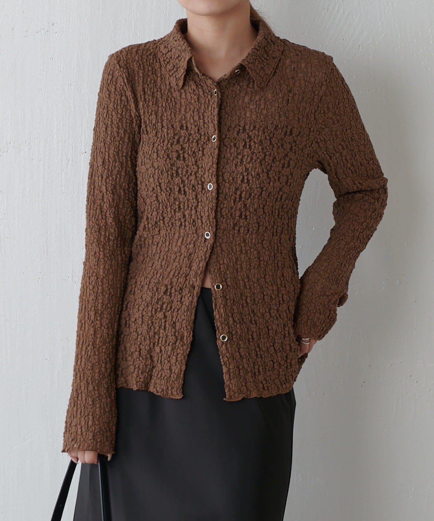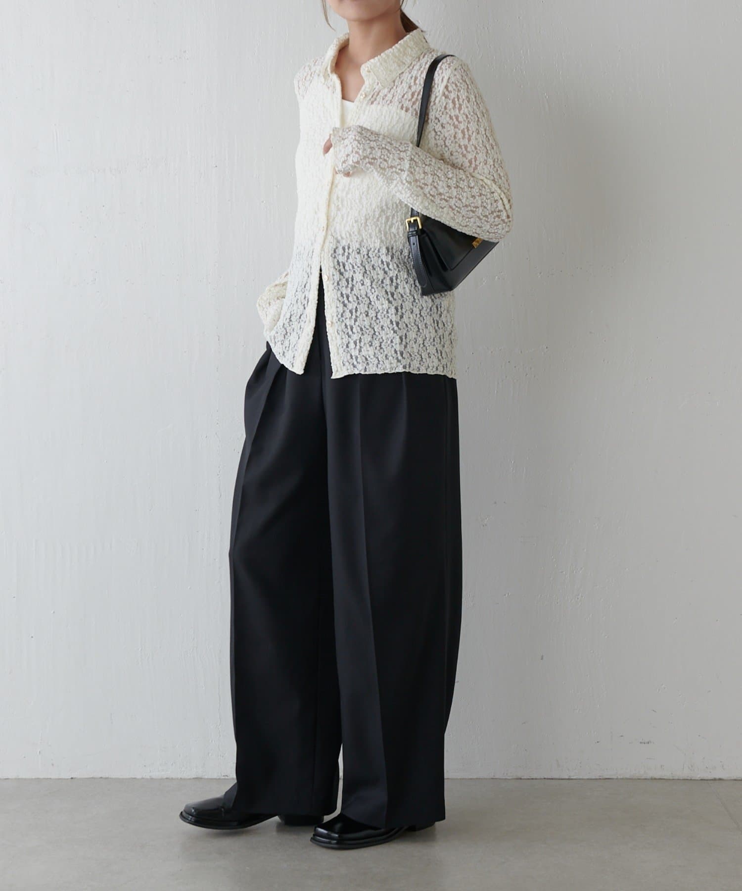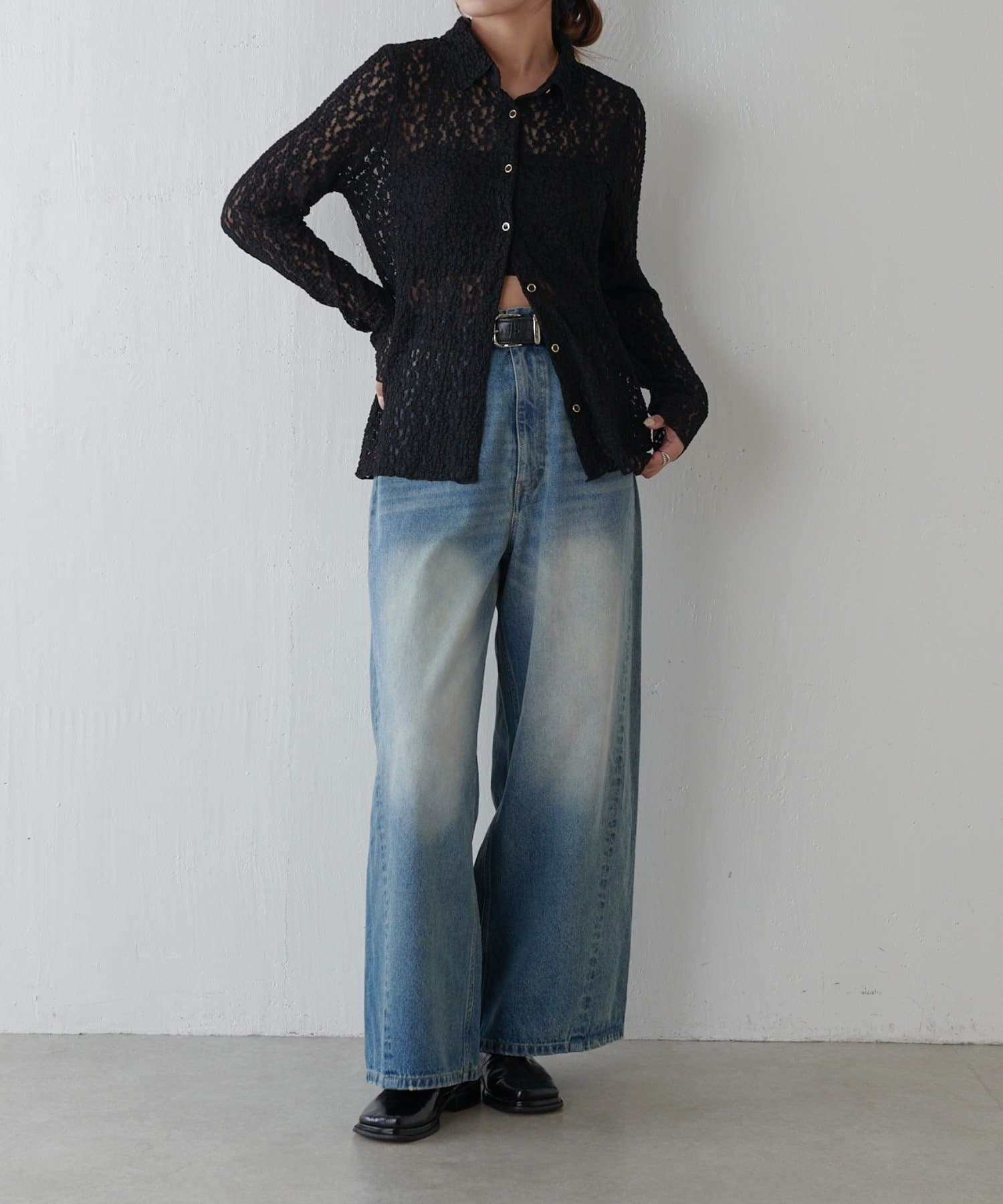 繊細なレース素材で仕立てた、シアーレースシャツ。