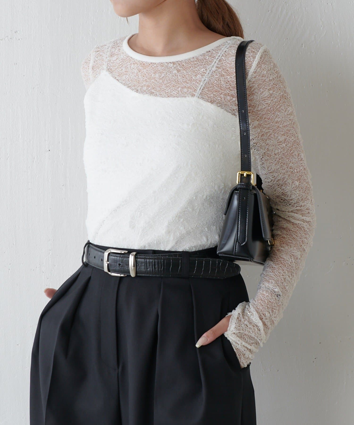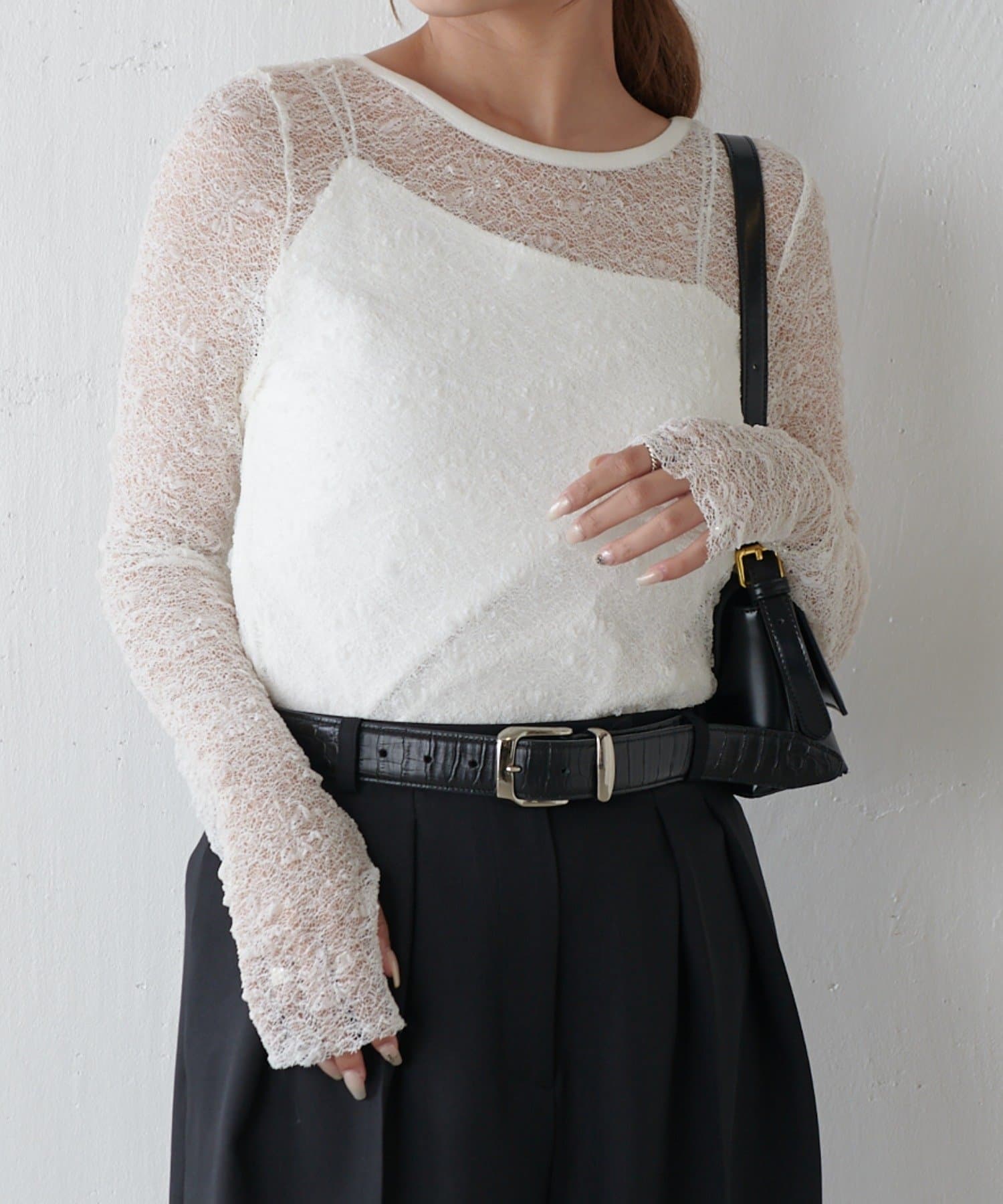 繊細なレースが目を惹き、着回しのきくトレンドトップス。