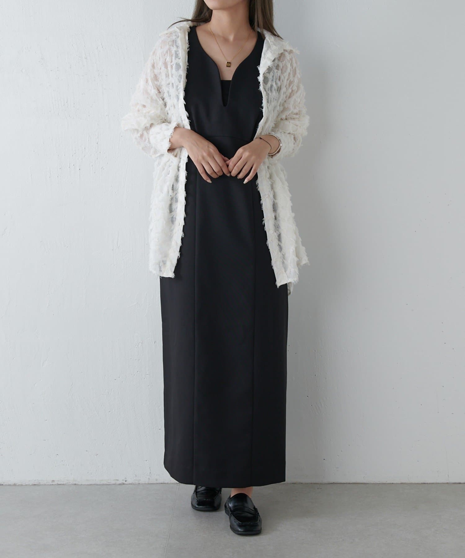 一枚でも、カーディガンやシャツを合わせて着用もキレイめスタイルに。