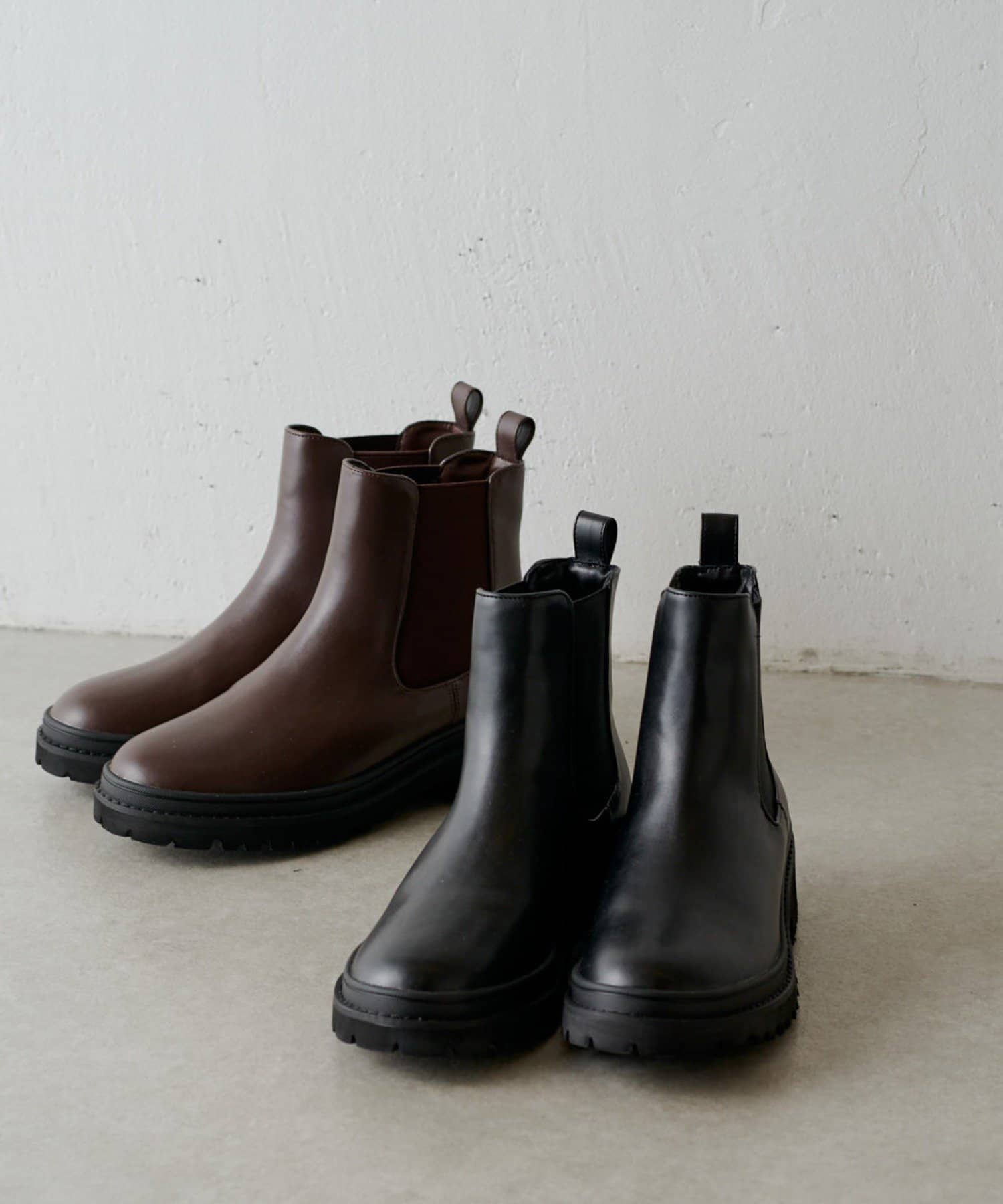 トレンドに左右されない定番のアイテムのサイドゴアブーツで、シンプルなデザインにすっきりとしたショート丈。