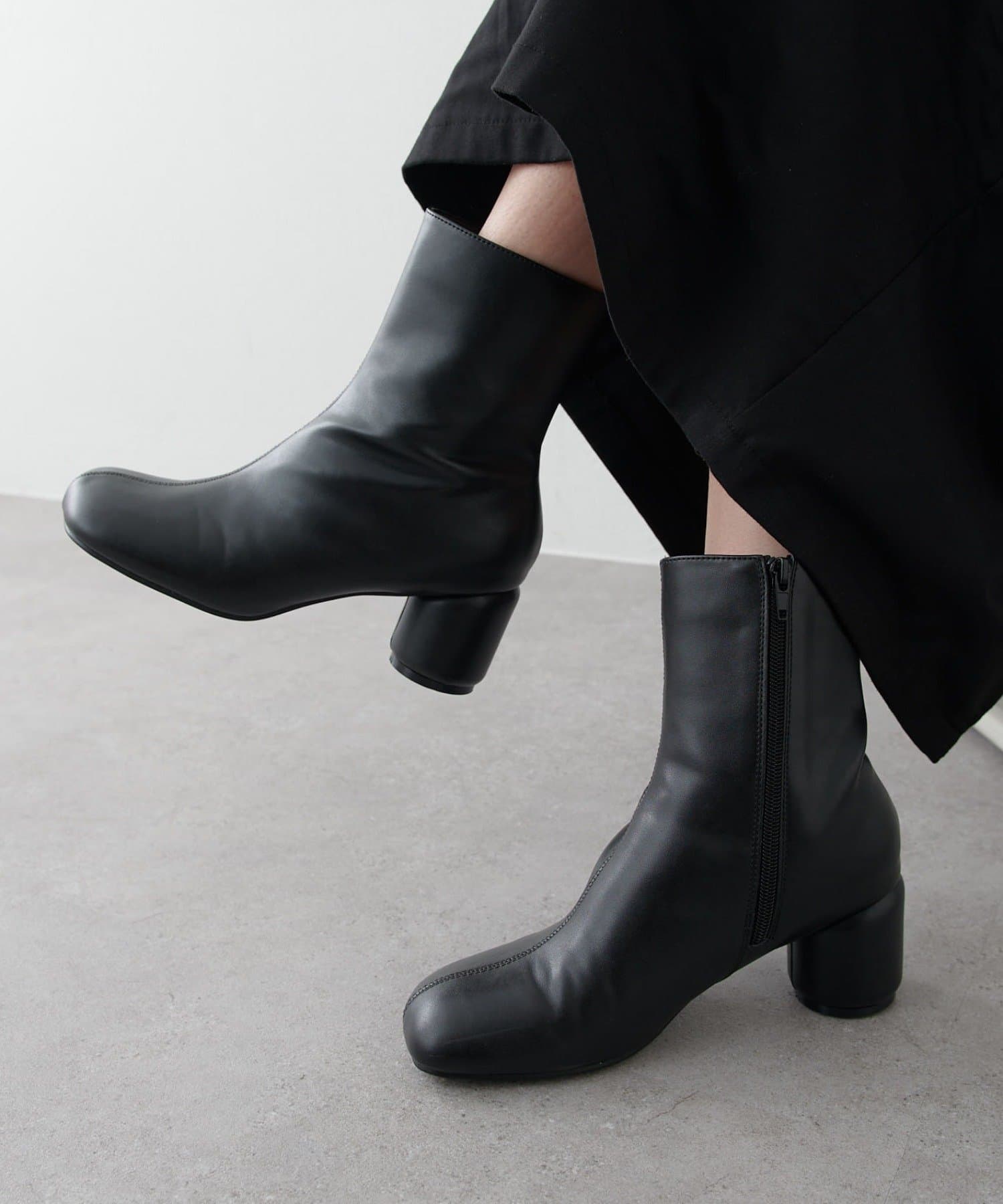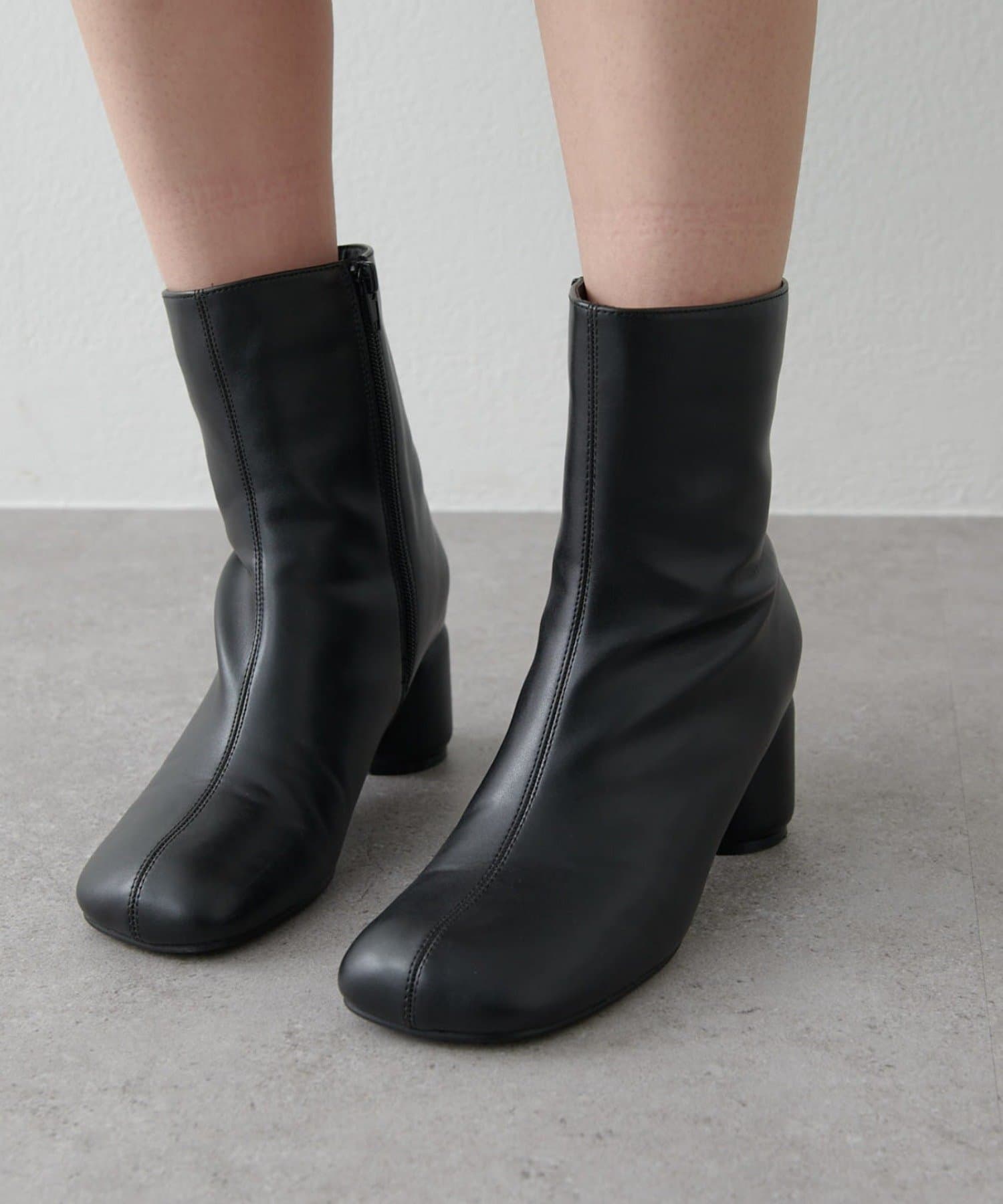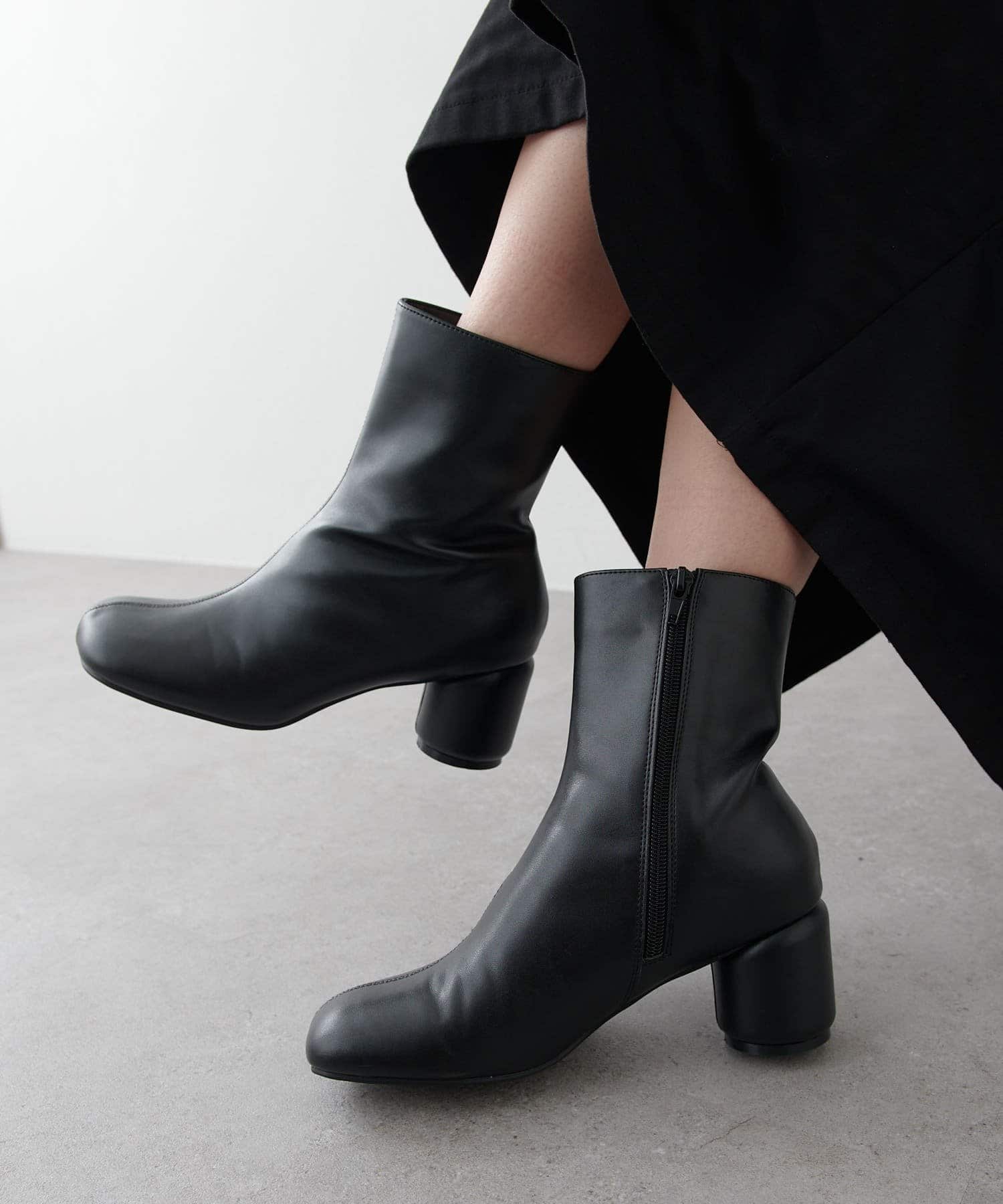 すっきりとした無駄のないデザインと、履くだけでスラっと美脚見えのヒールブーツ。