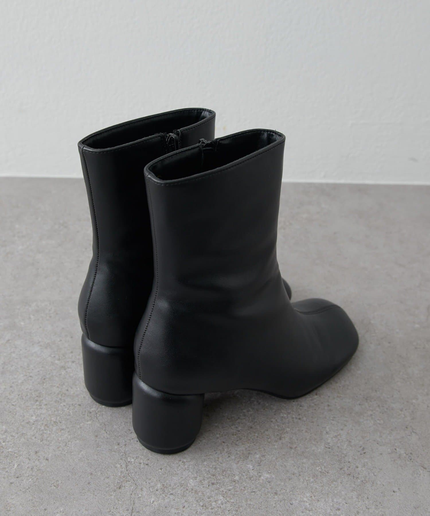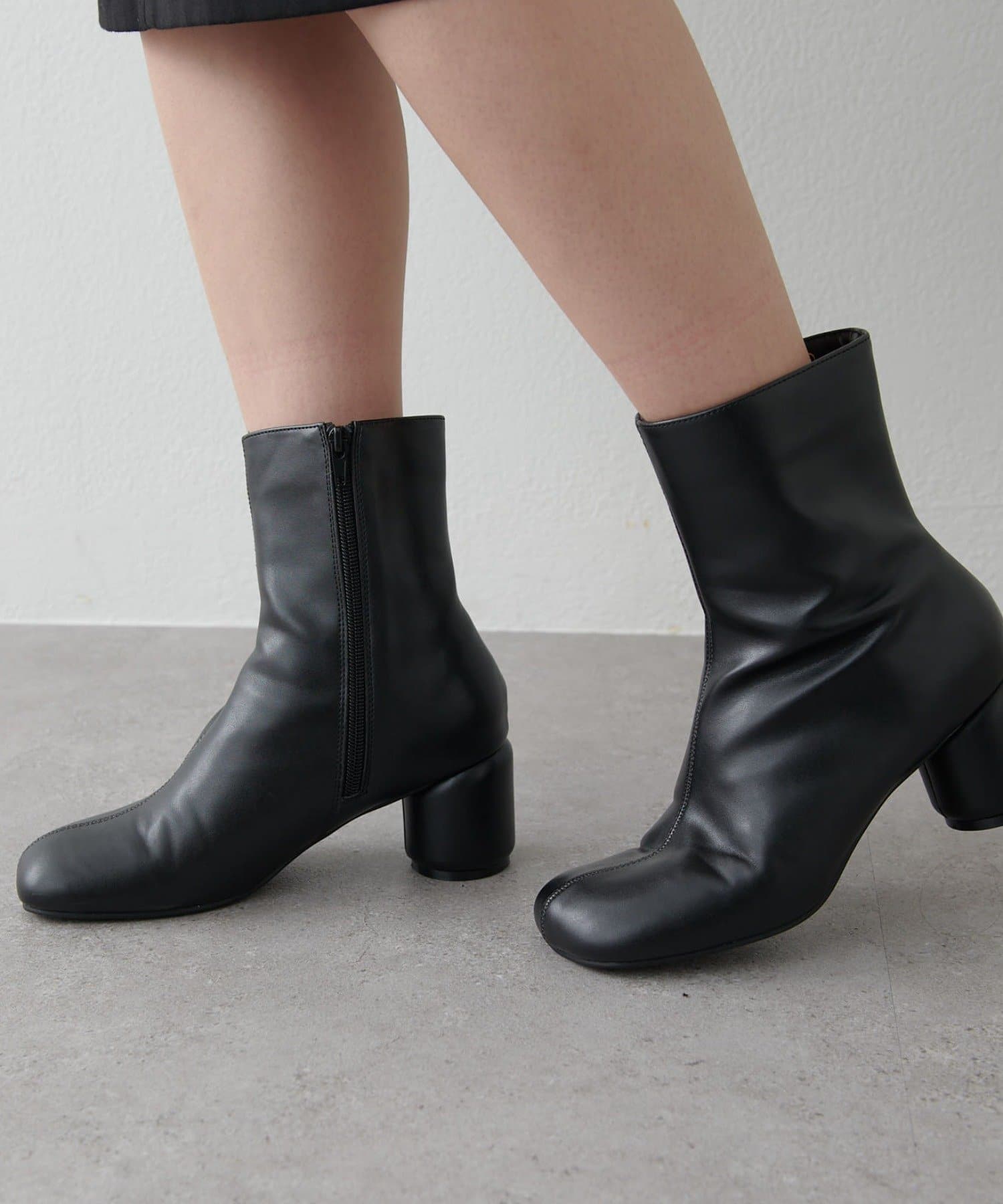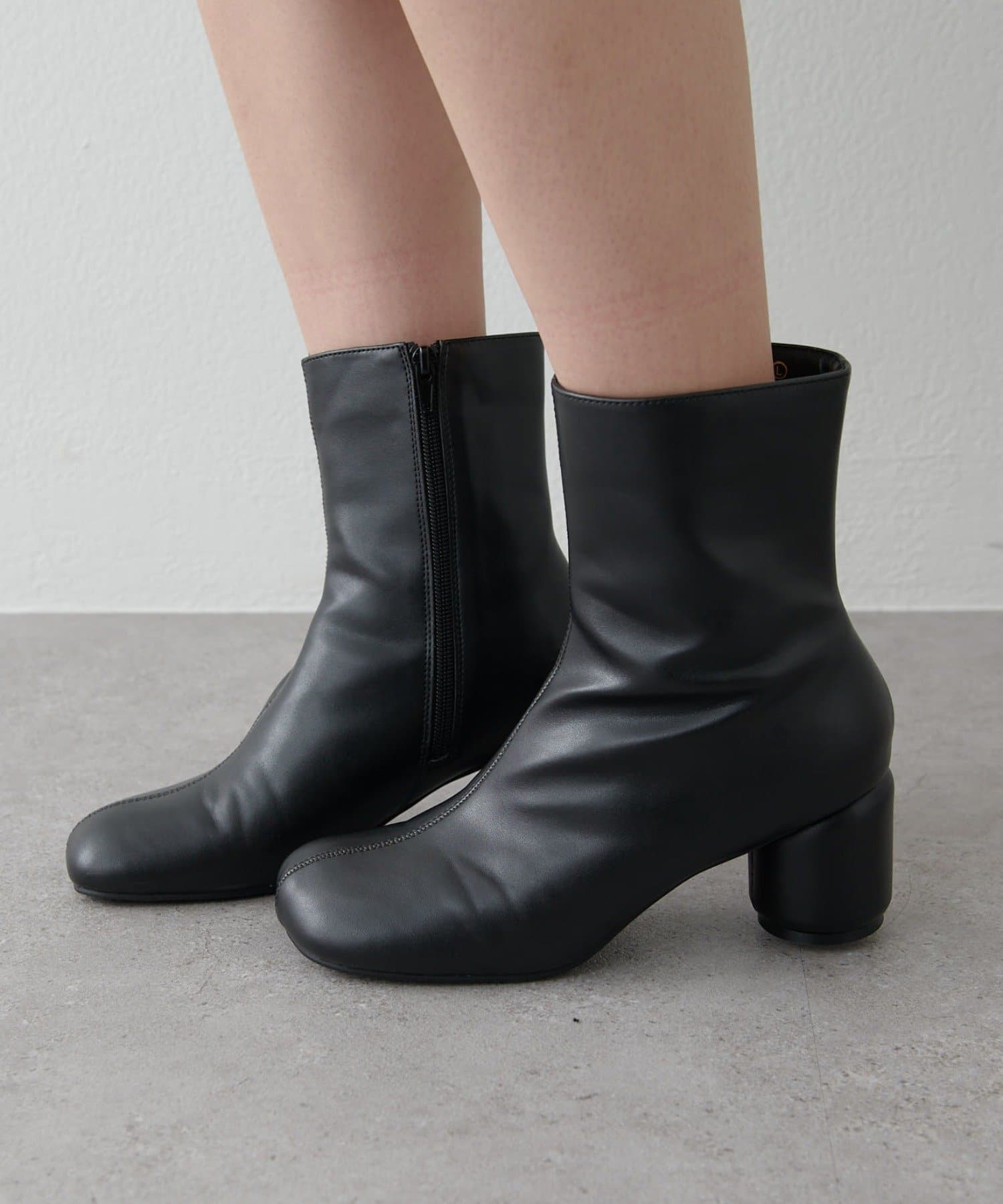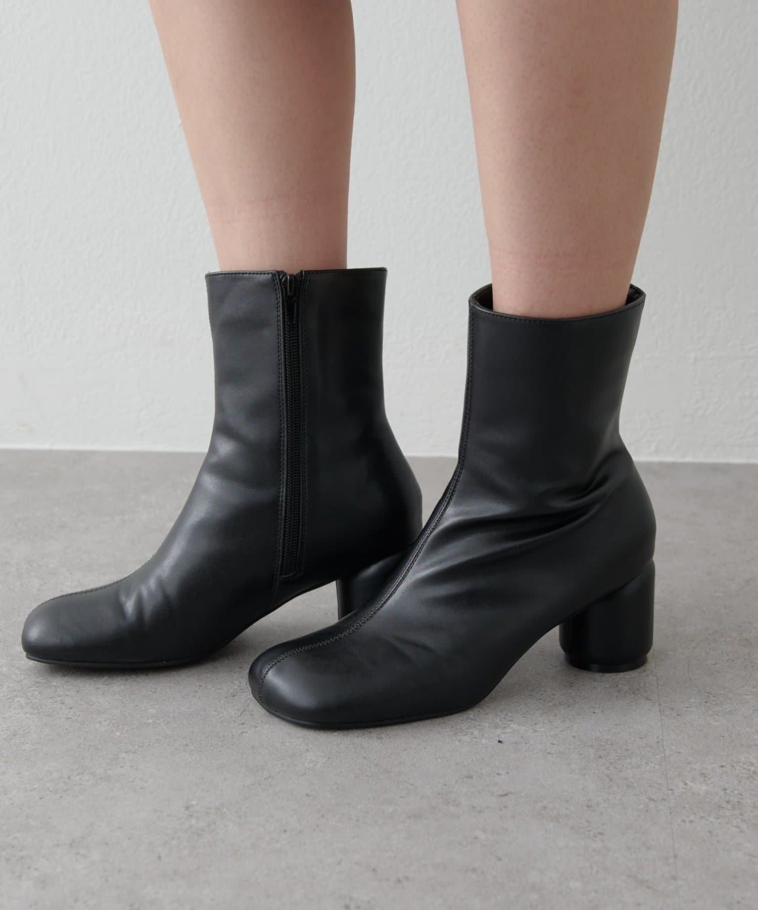 すっきりとした無駄のないデザインと、履くだけでスラっと美脚見えのヒールブーツ。