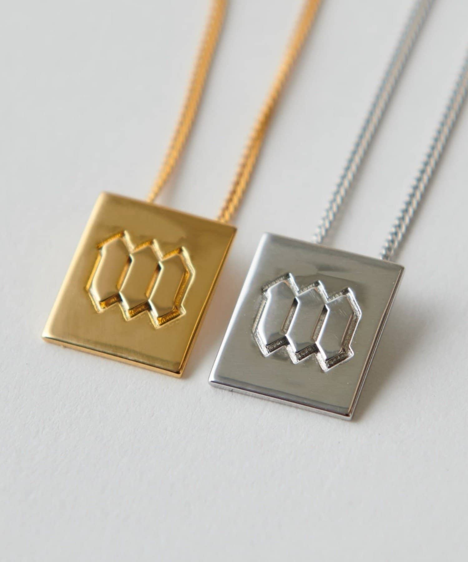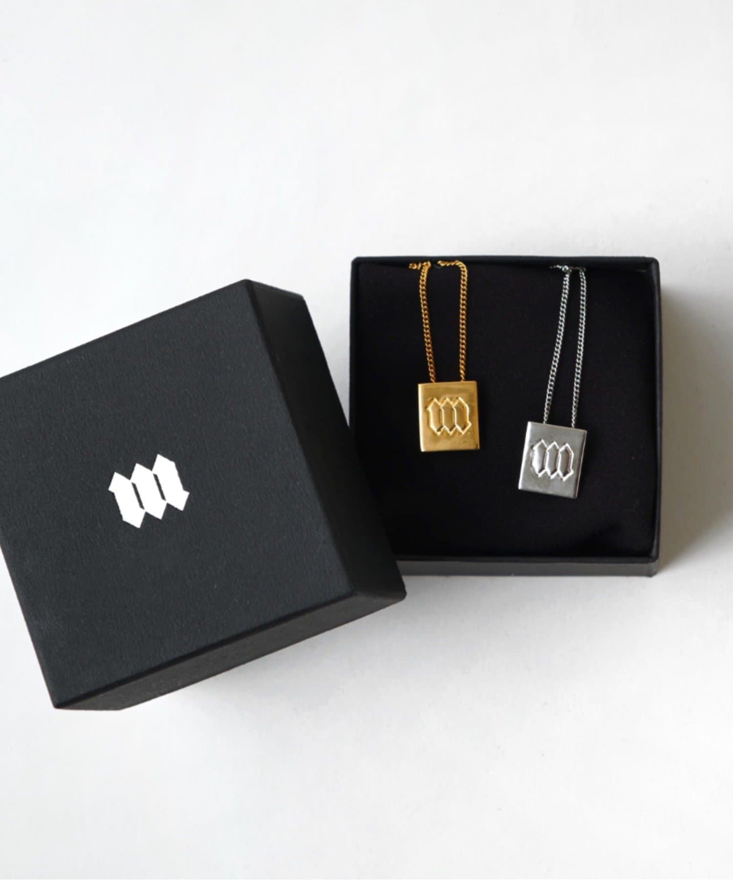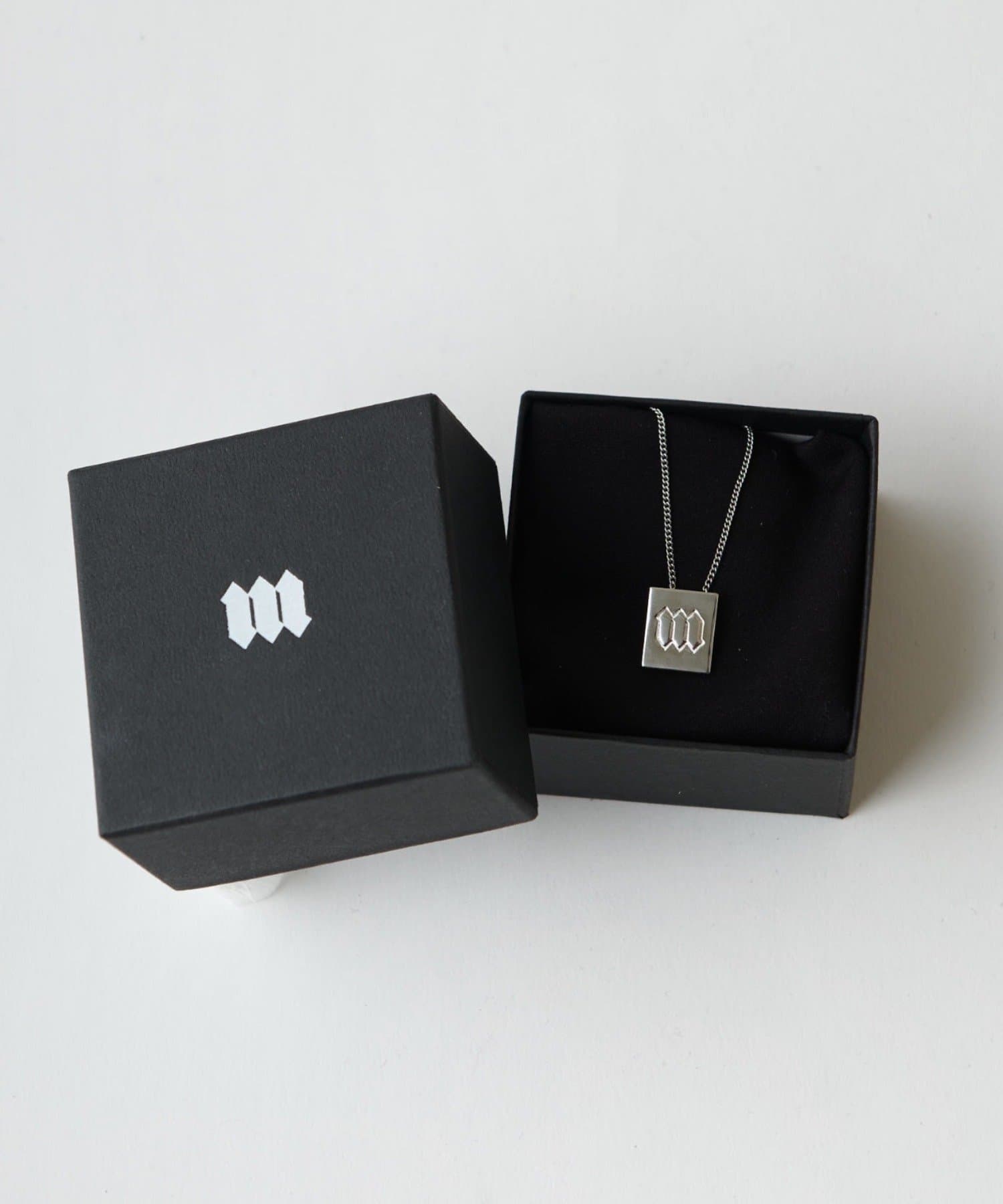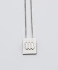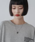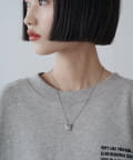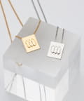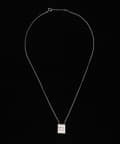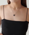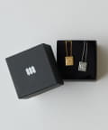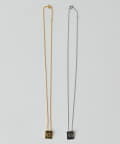 ■華奢なチェーンの先にあしらったスクエアロゴモチーフのネックレス。