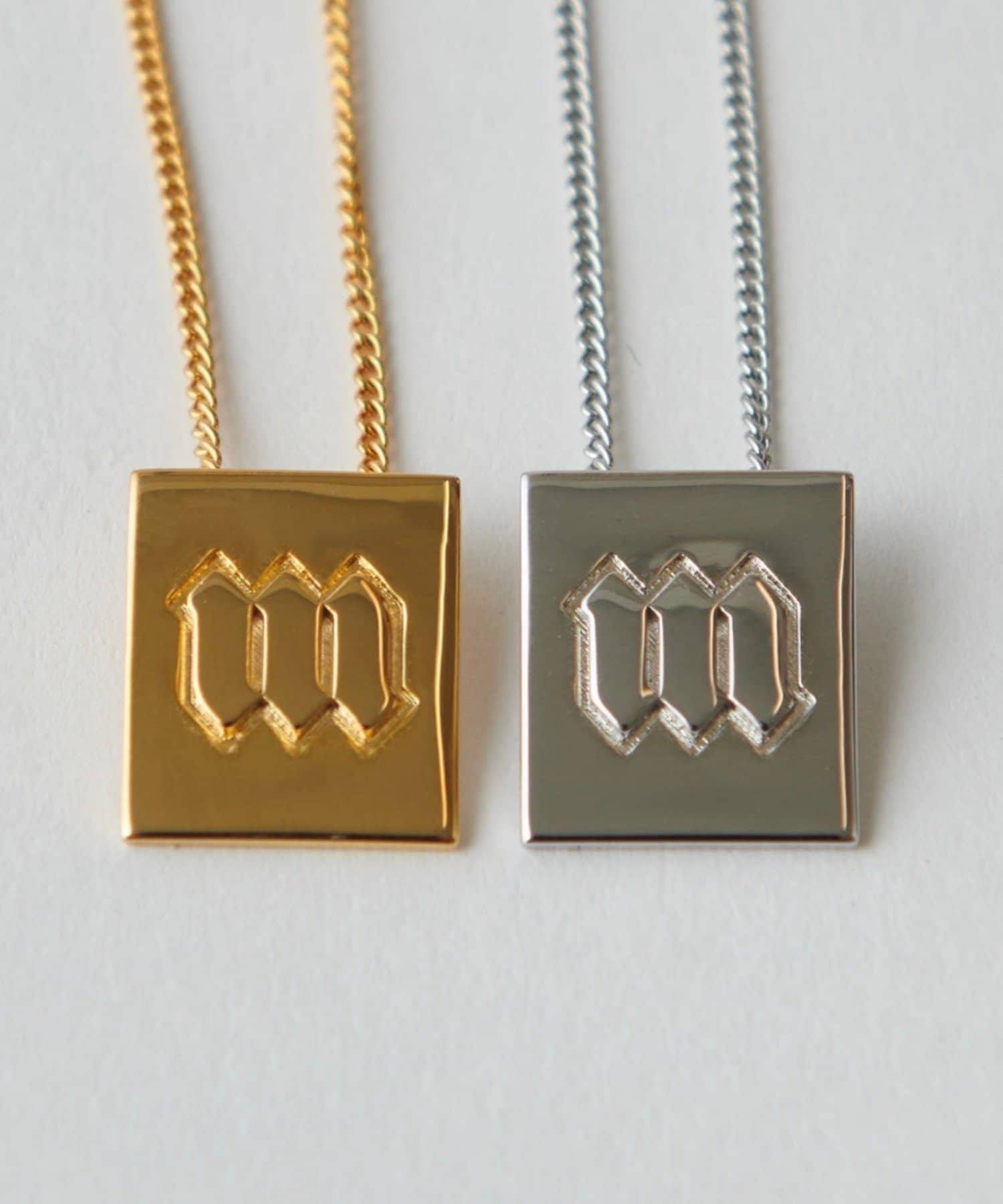 シーンやスタイルを選ばない、ミニマルなロゴモチーフネックレス