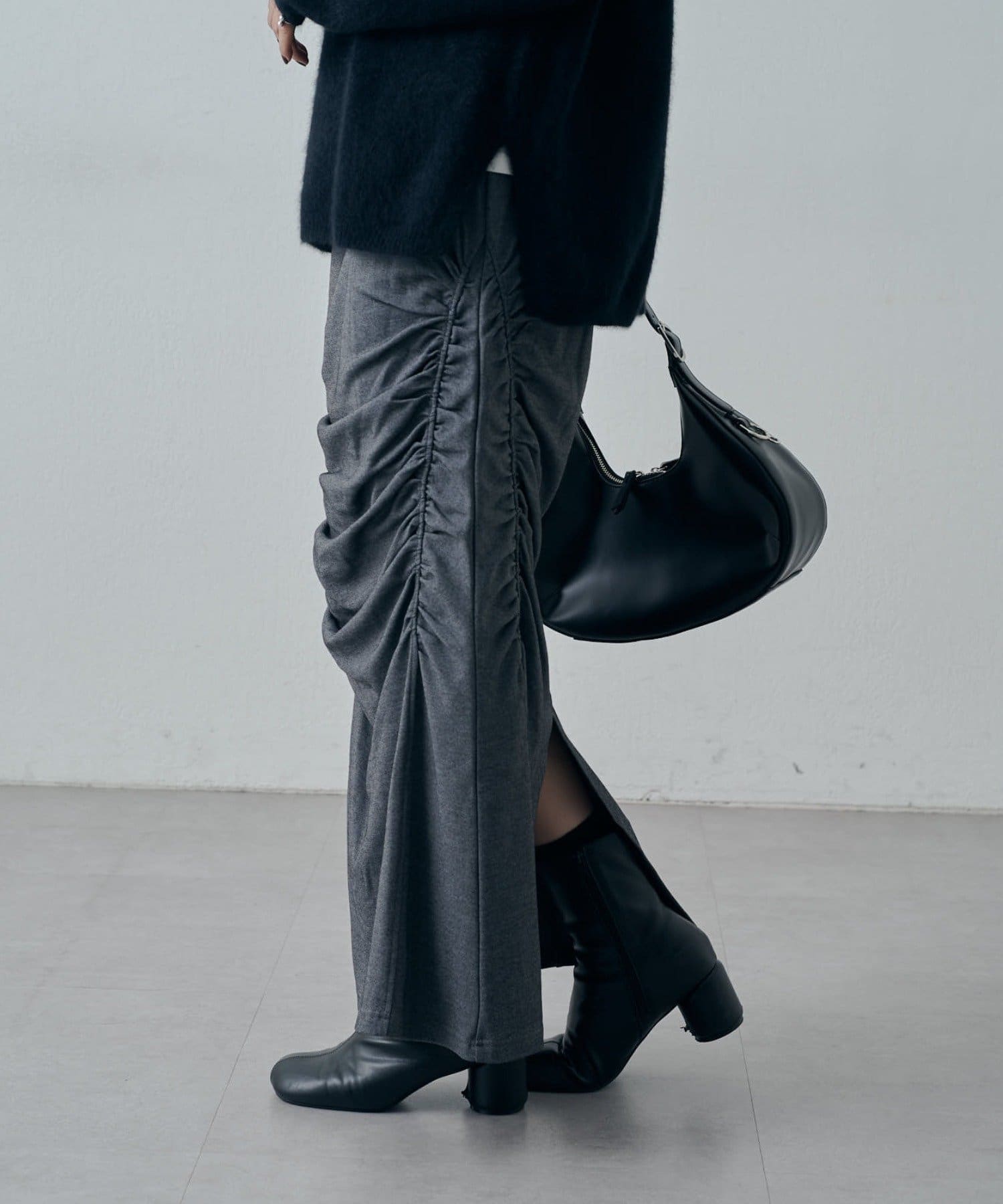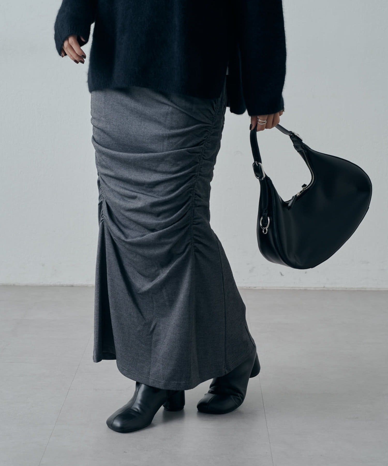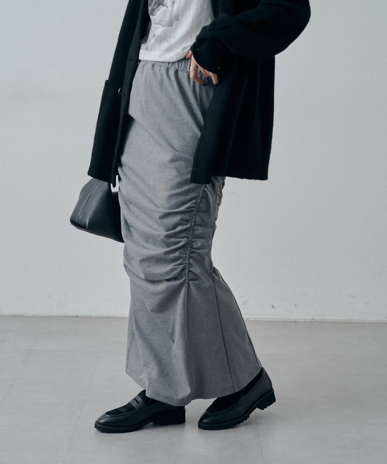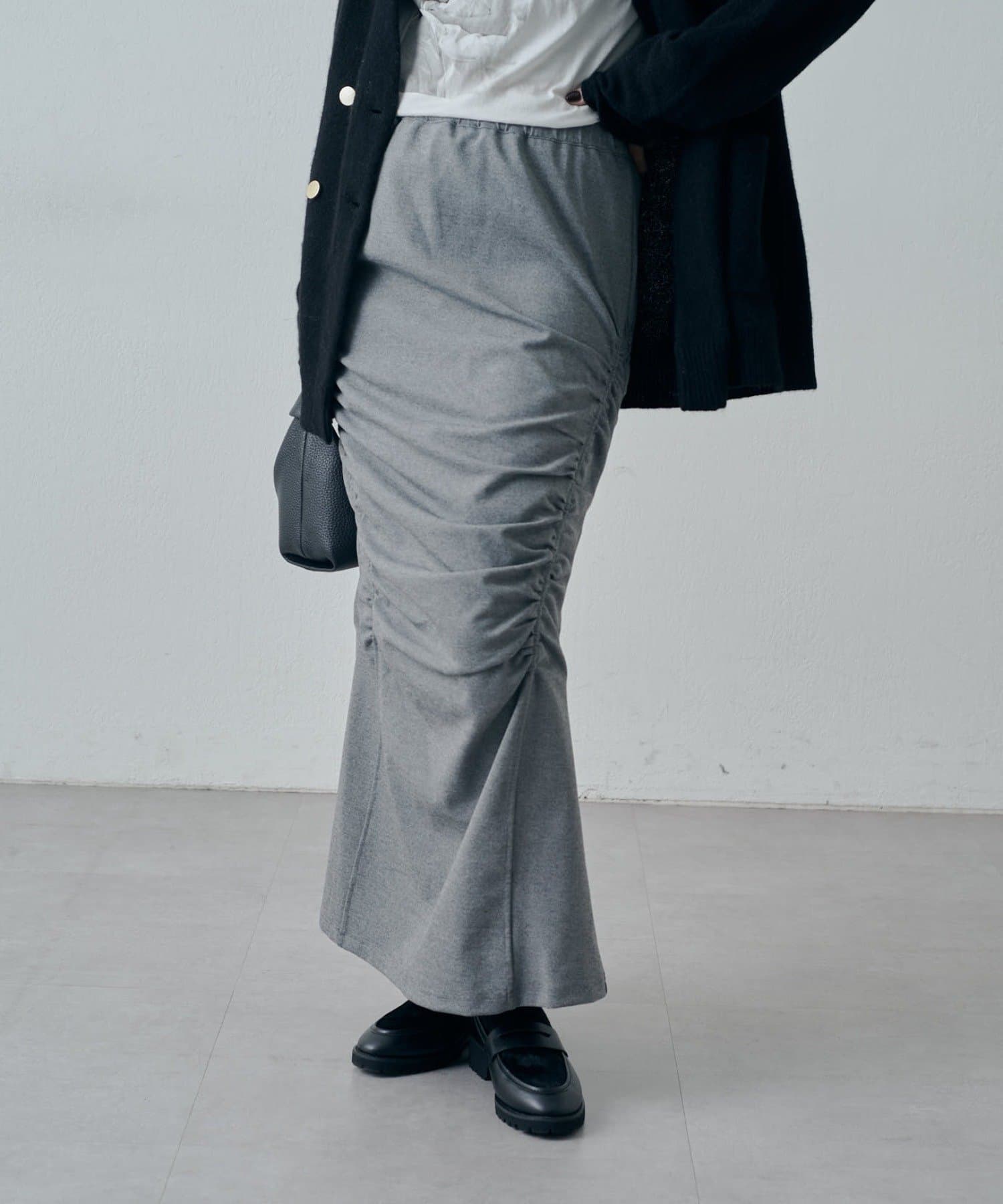 ギャザーデザインが入っているロングスカート。