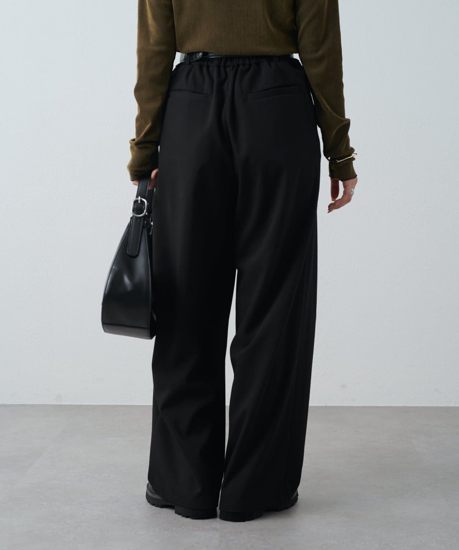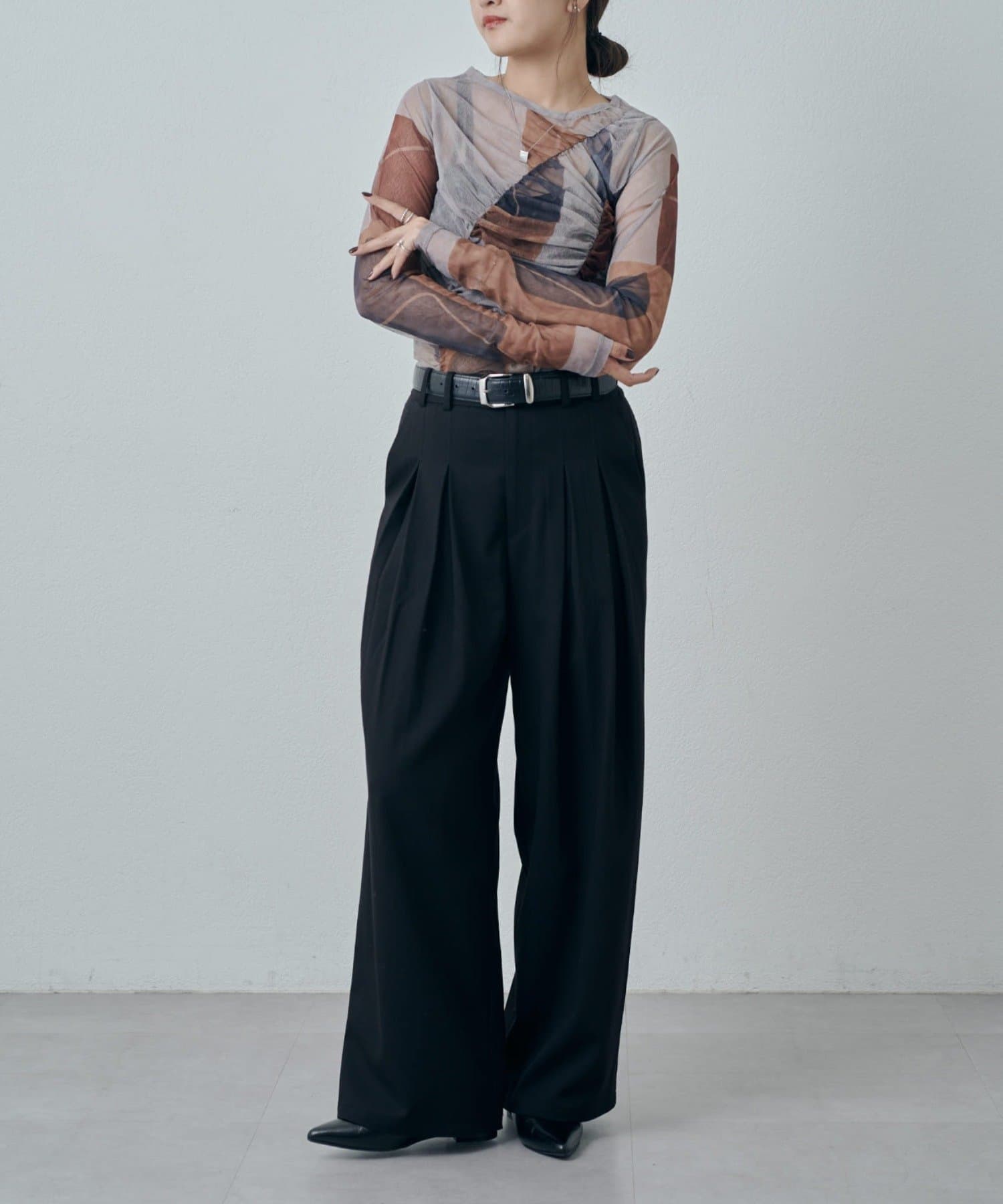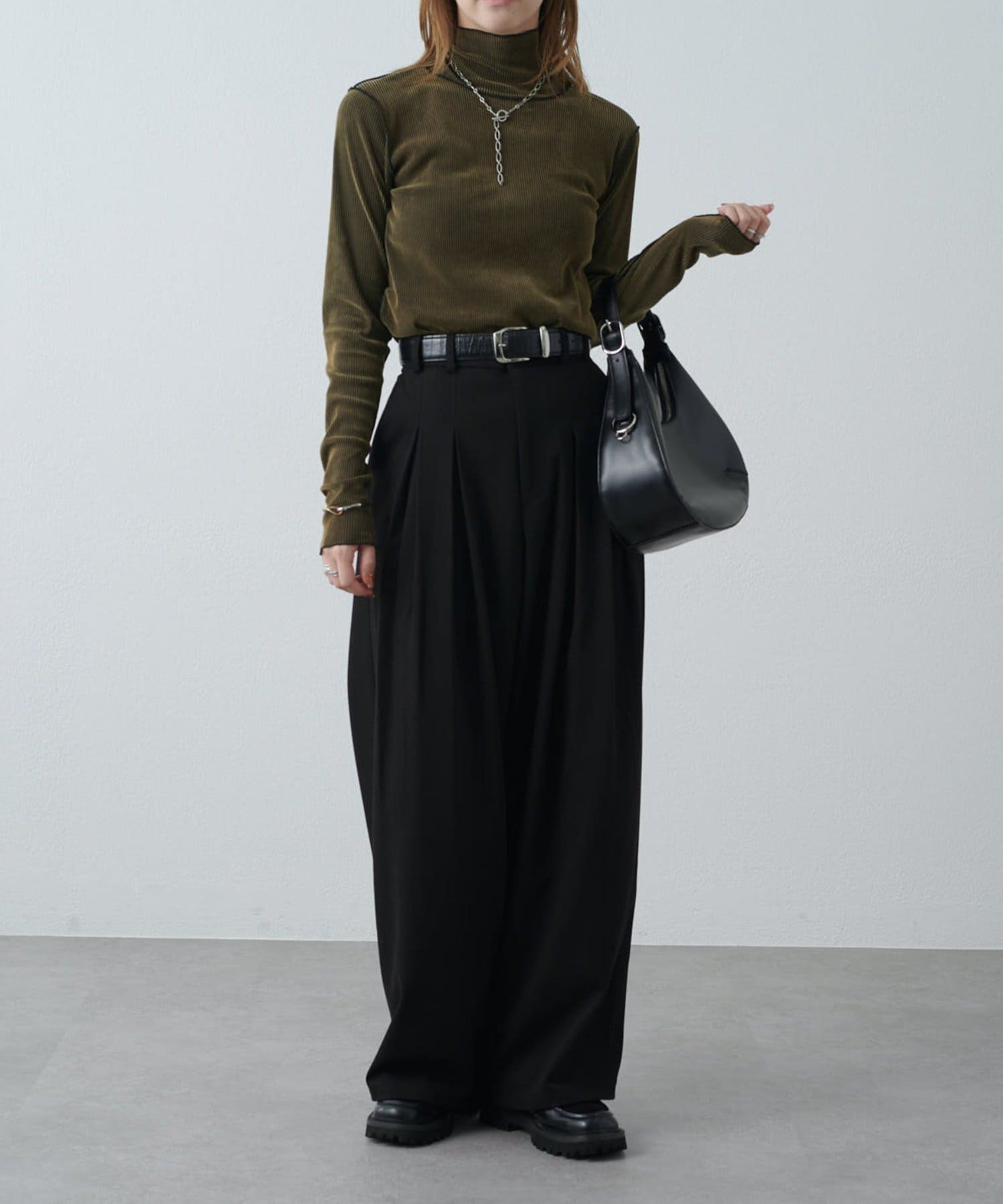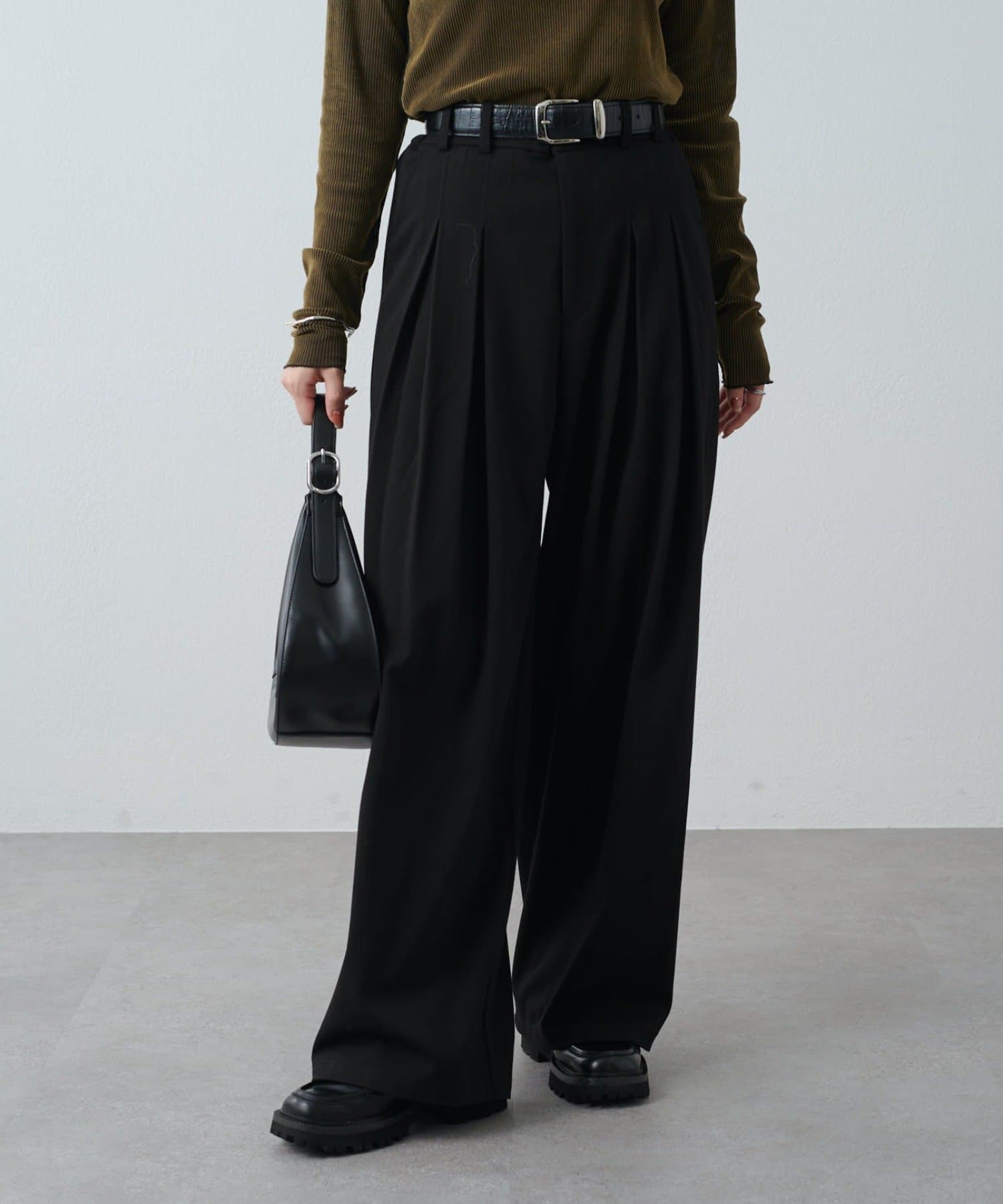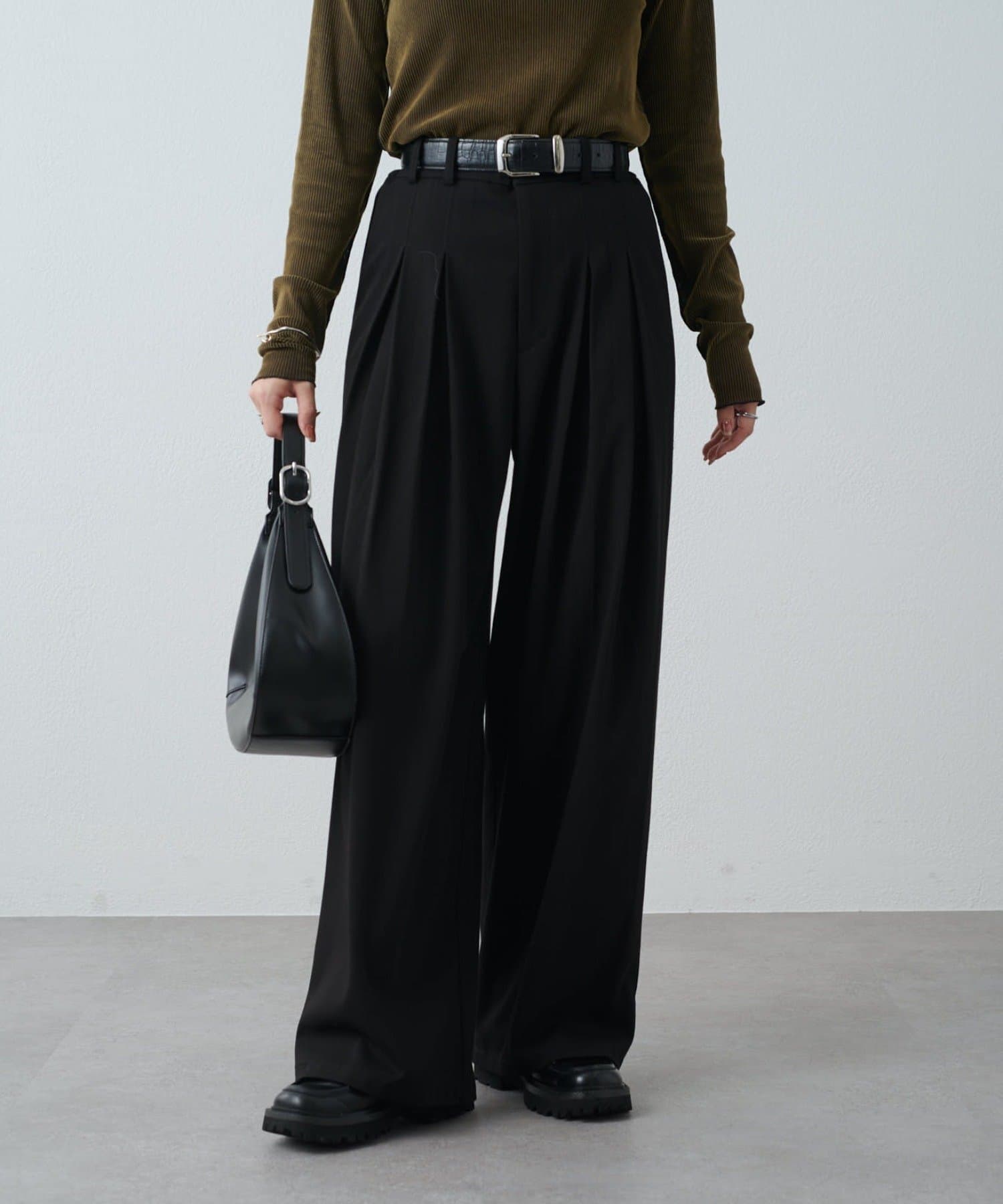 普段ワイドパンツを履くことが多い為、ストレートのパンツは苦手意識がありましたが、このパンツはタックが入っていて落ち感もあり、試着した際履いた時のシルエットが綺麗だったので購入。