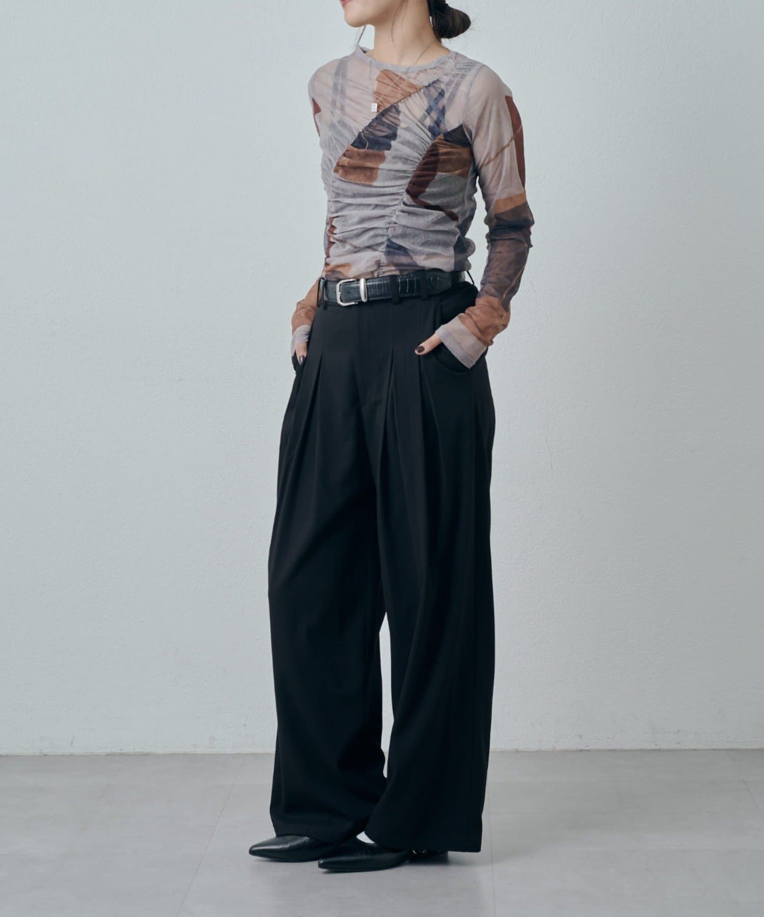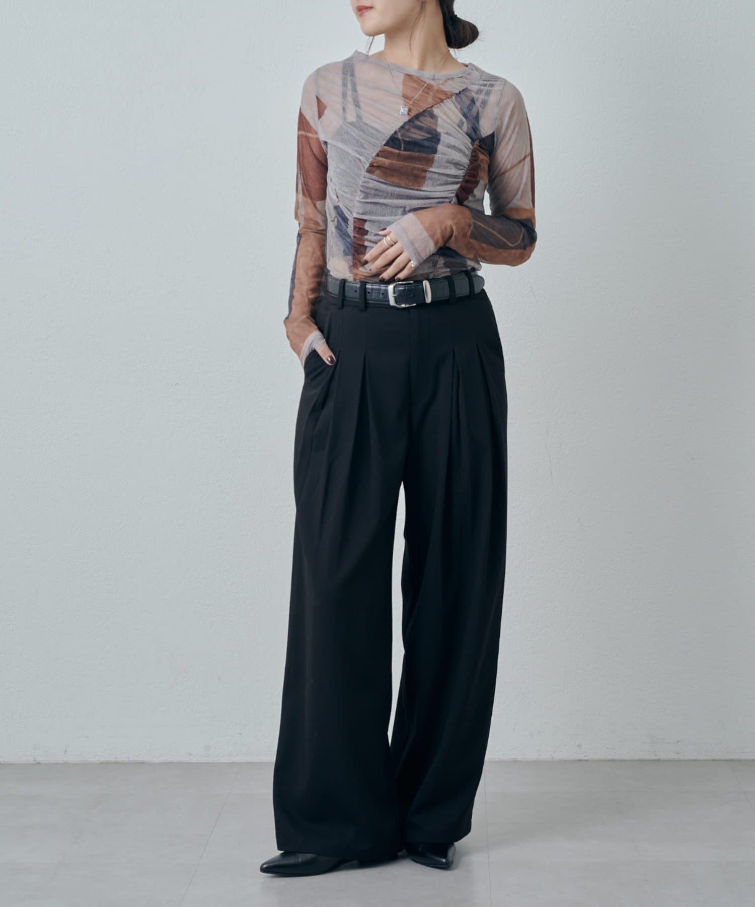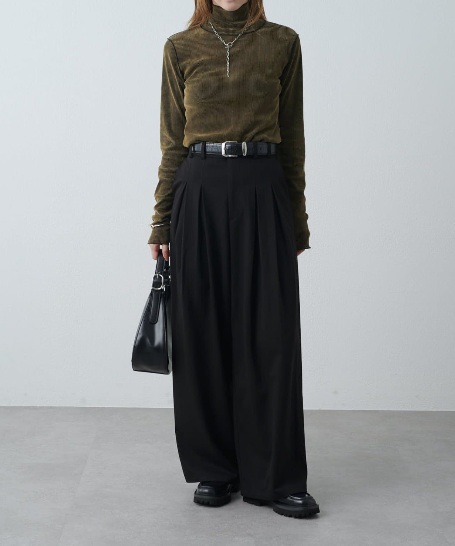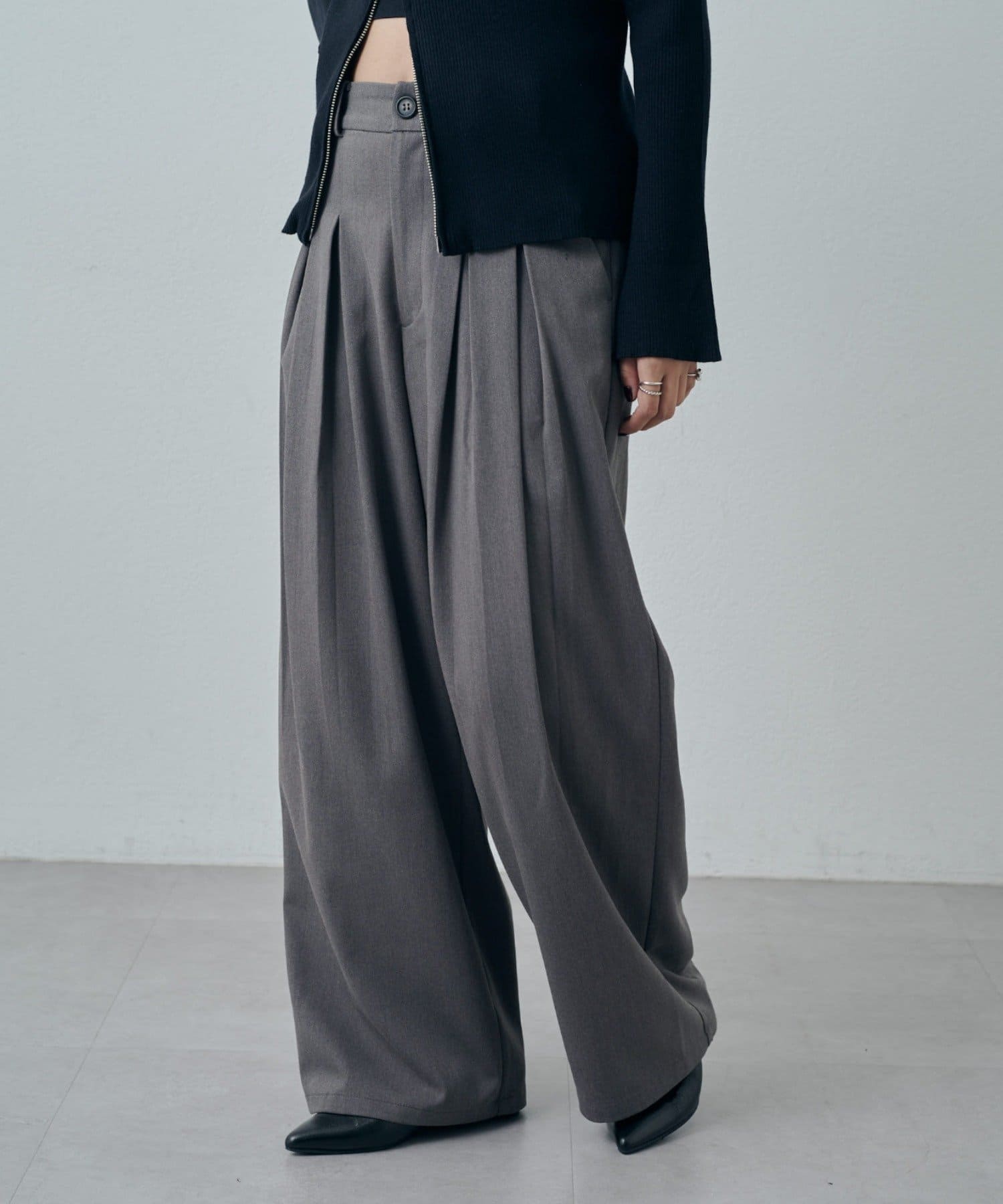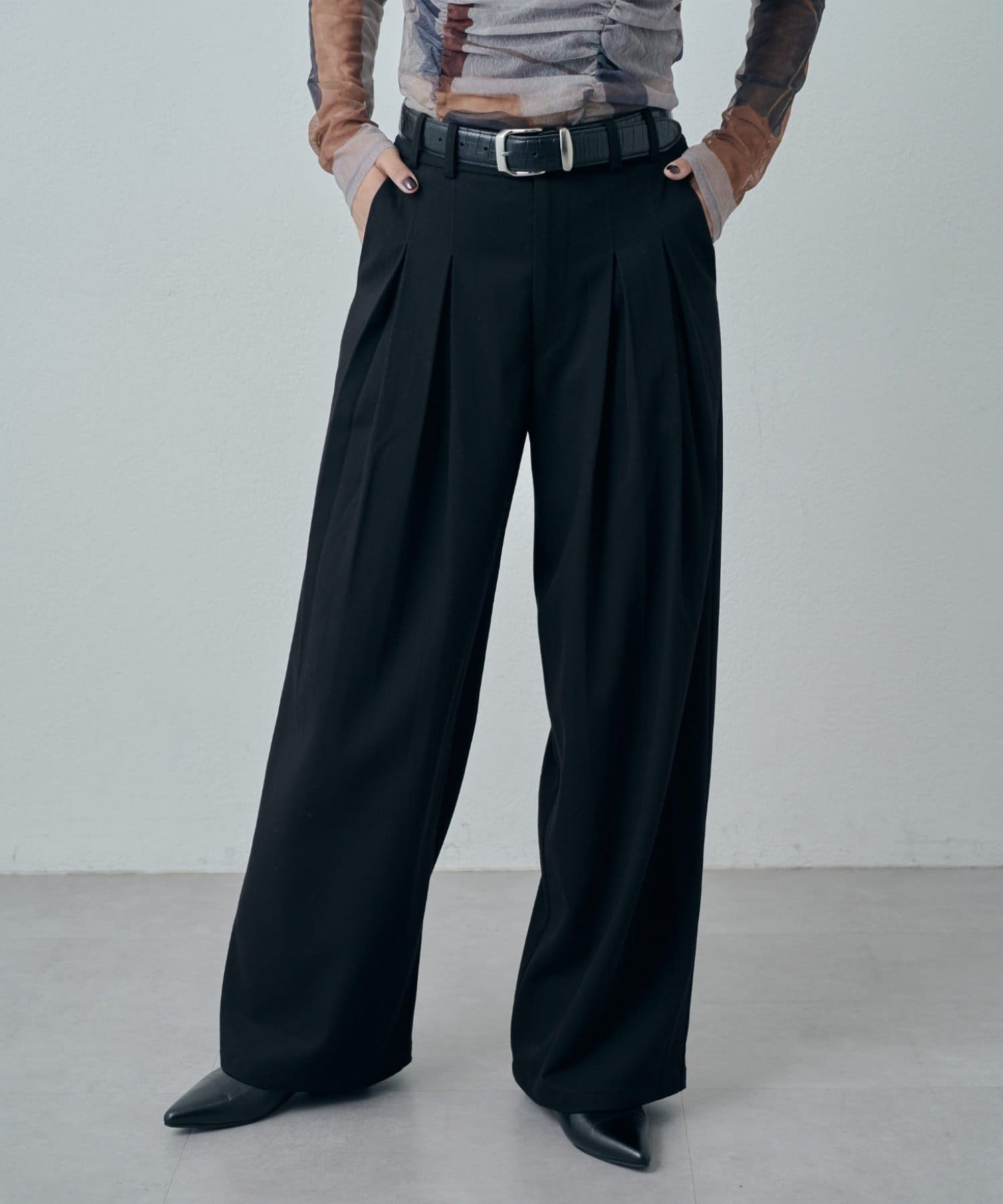 普段ワイドパンツを履くことが多い為、ストレートのパンツは苦手意識がありましたが、このパンツはタックが入っていて落ち感もあり、試着した際履いた時のシルエットが綺麗だったので購入。