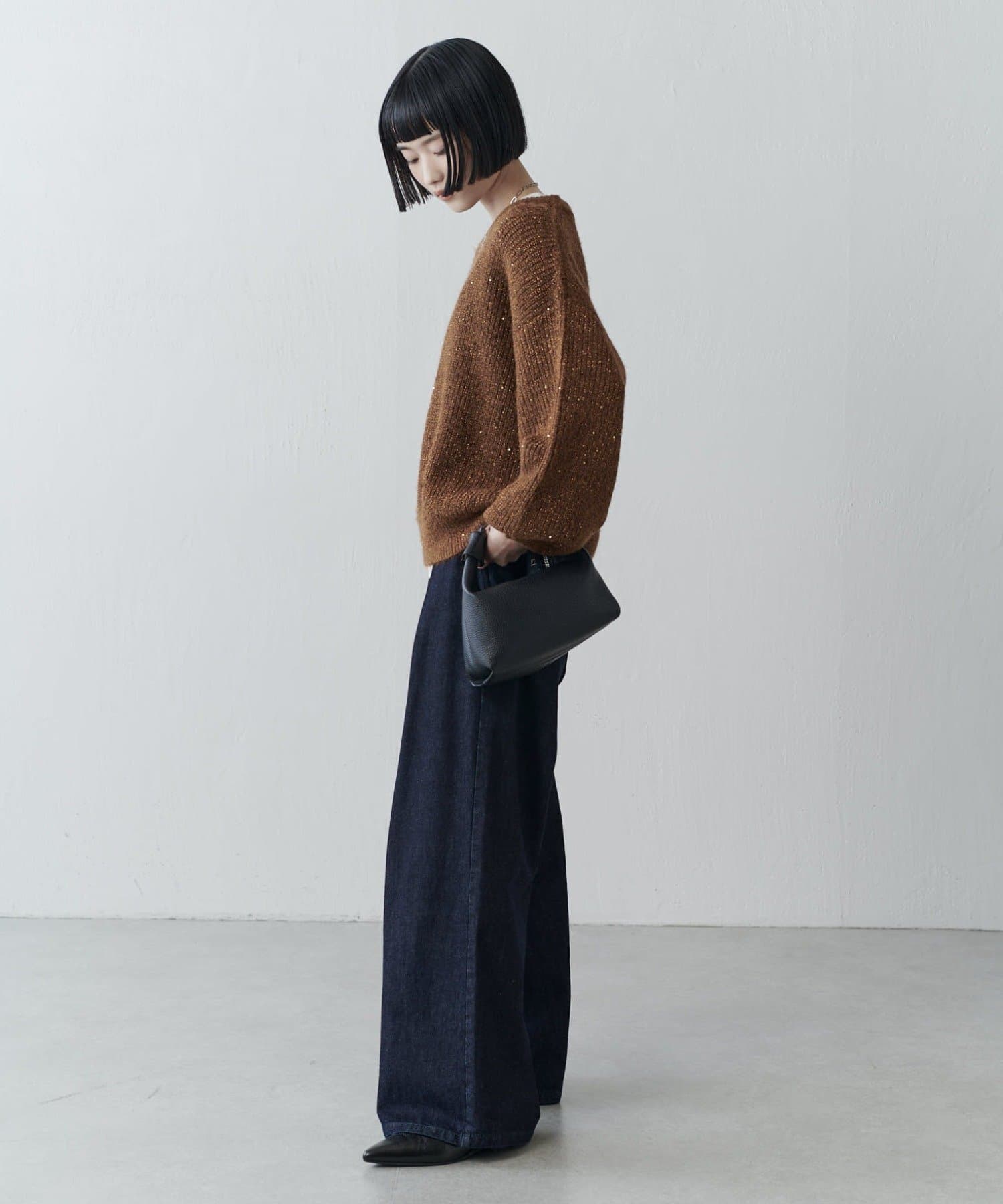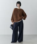 秋は、Lui’sのモードなシアートップスと合わせてもオシャレ見えしますし、カジュアルなスウェットとの合わせもかっこよく決まります。
