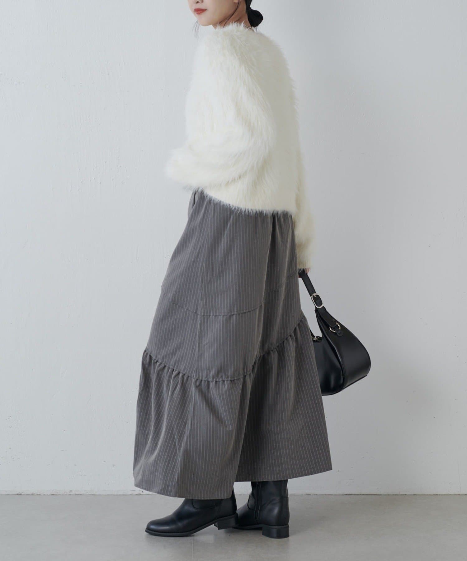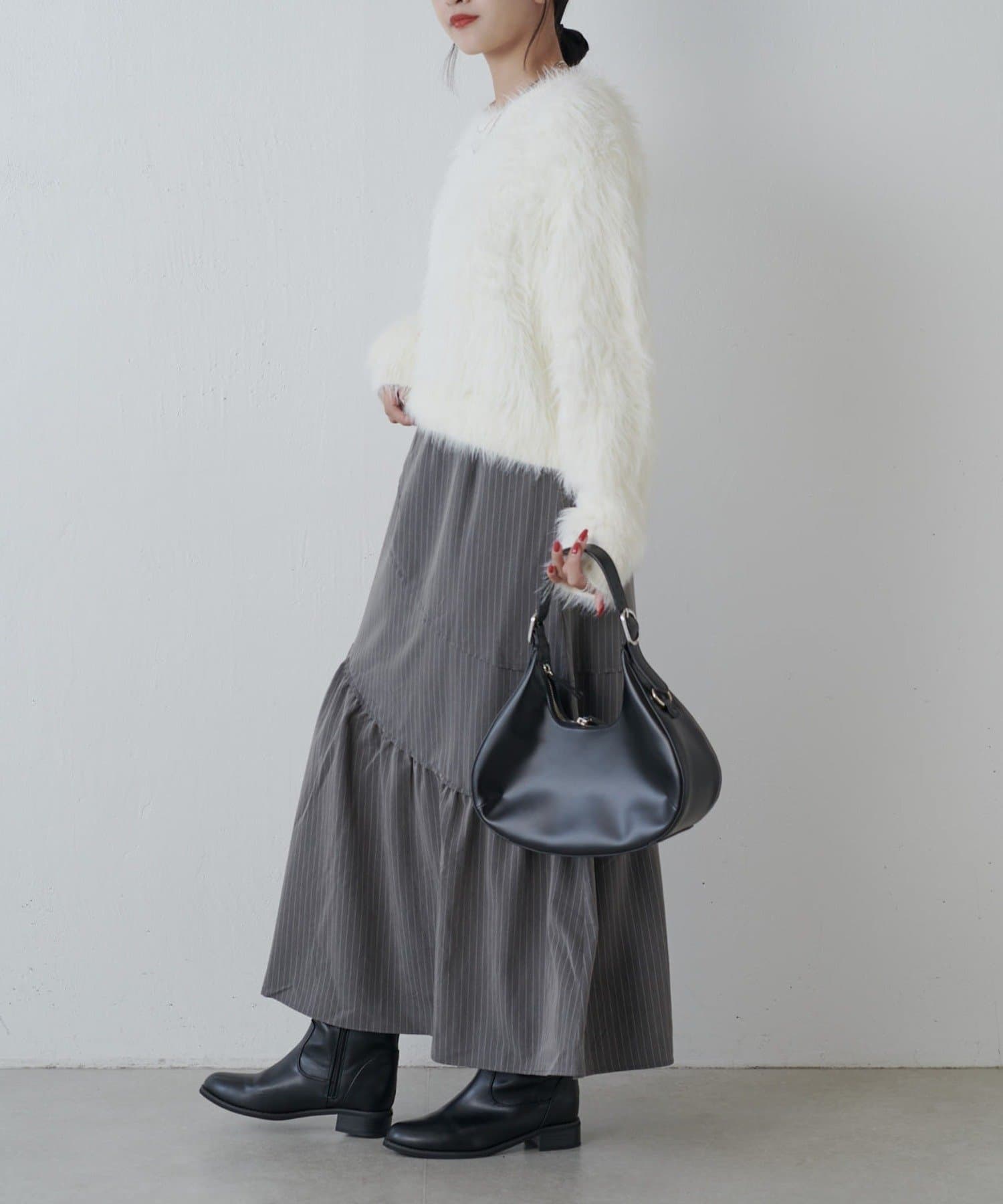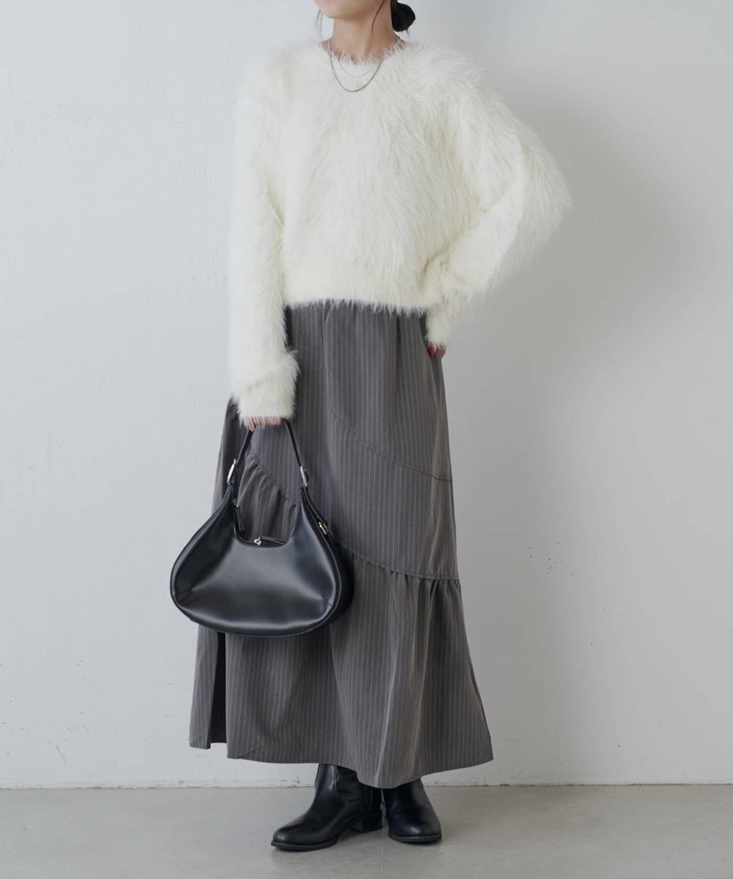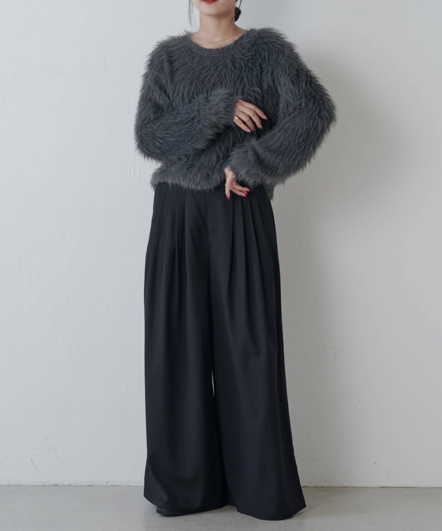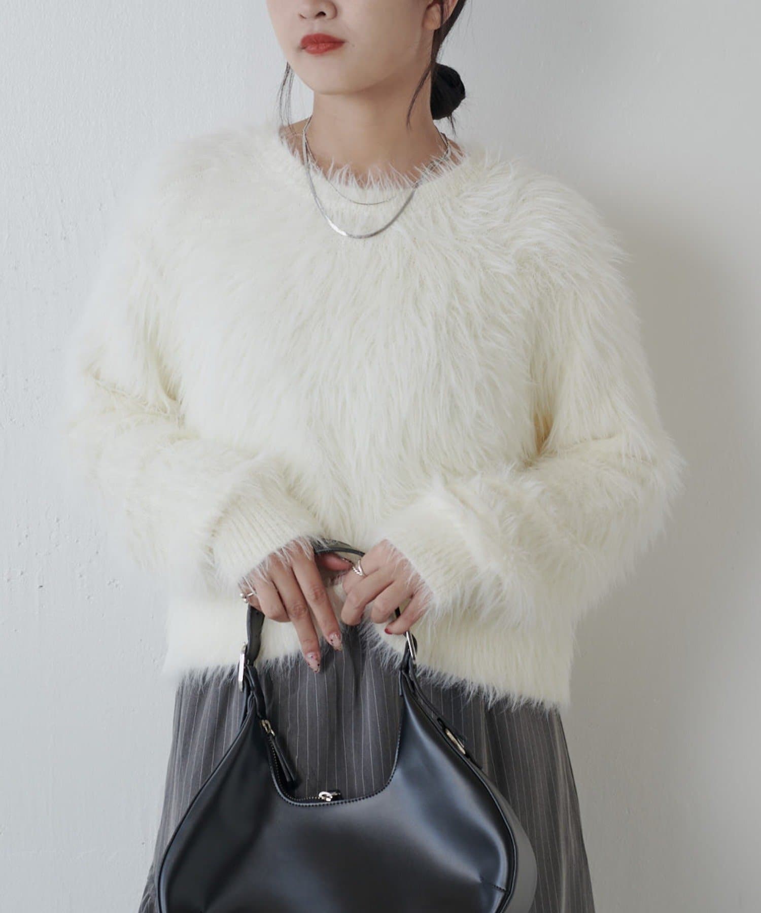 1枚で主役になる程よい立体感のあるシャギー素材。肌当たりが良く暖かいのも魅力のニットです。