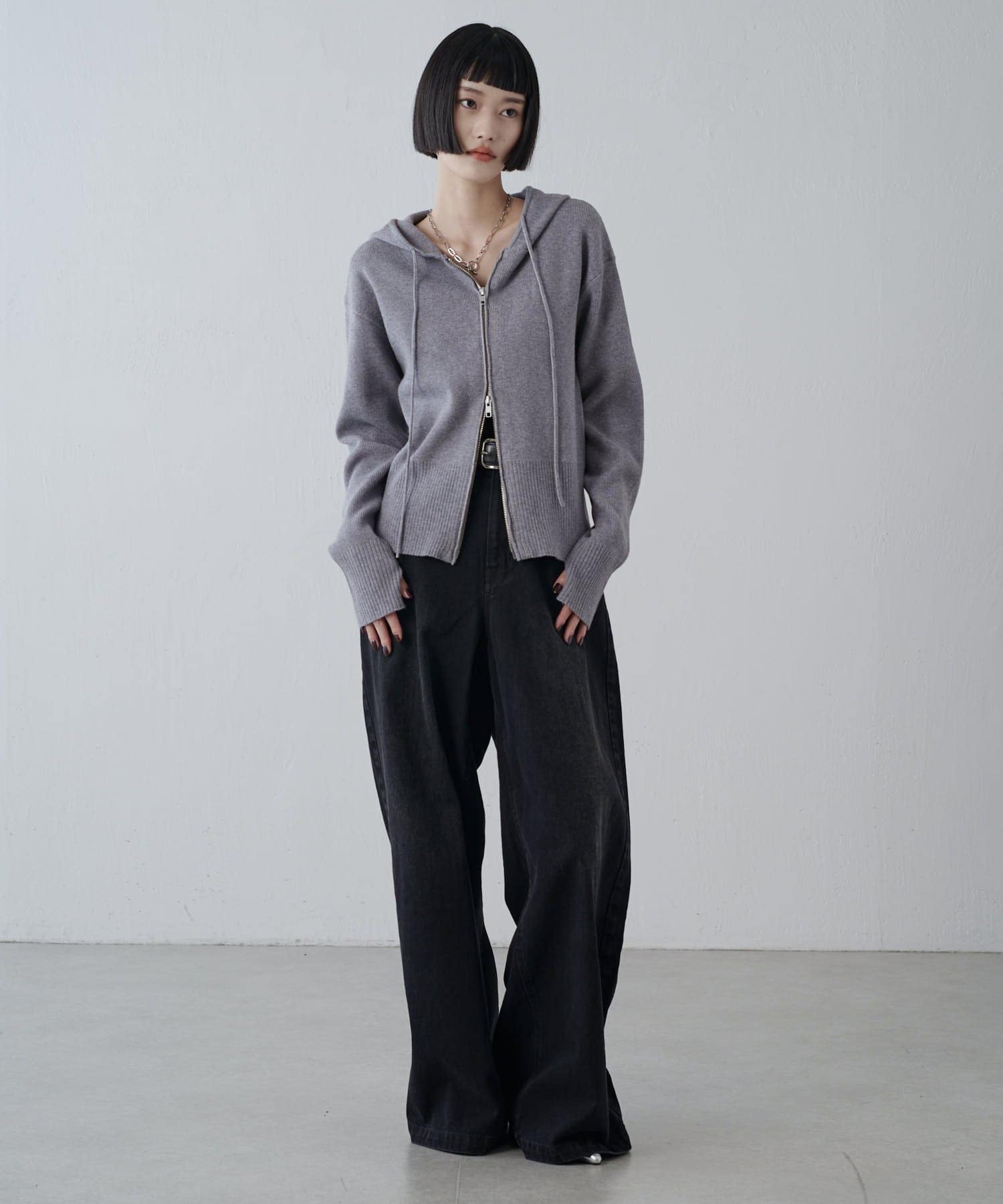 フードZIPニットパーカー