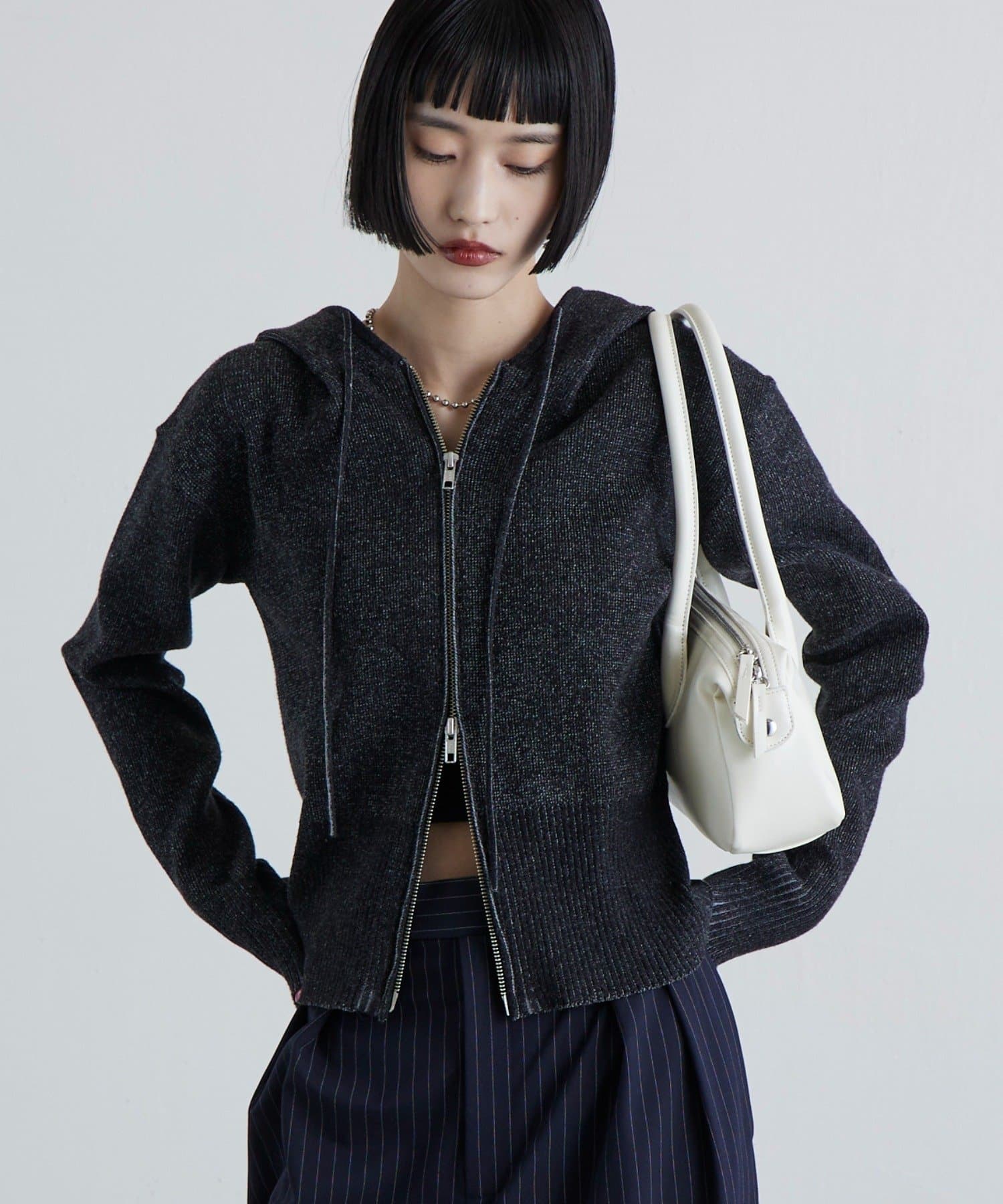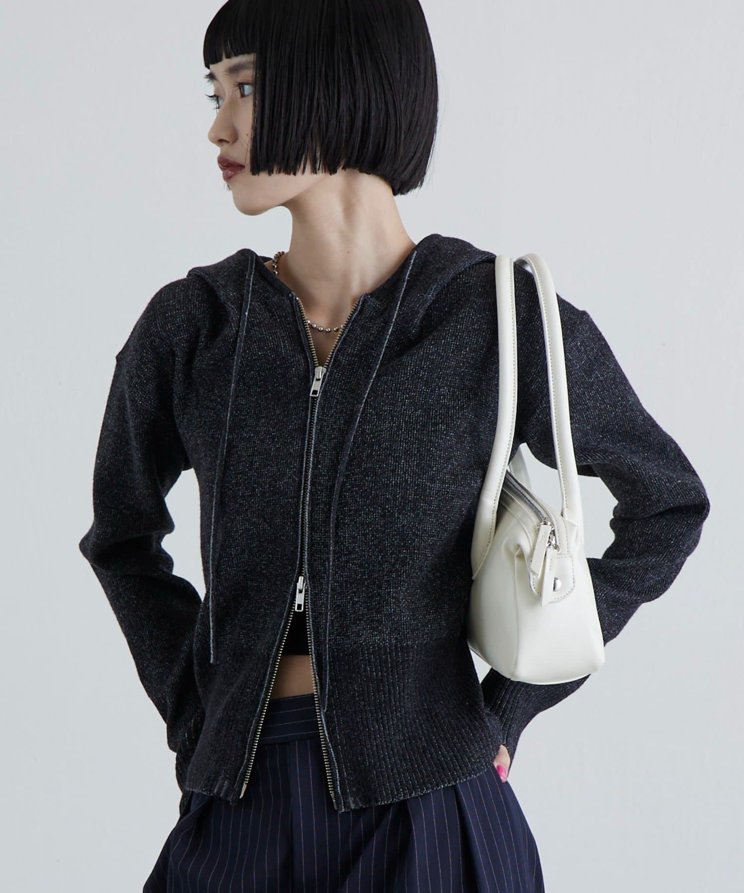 トレンド感満載な短丈ジップパーカー。