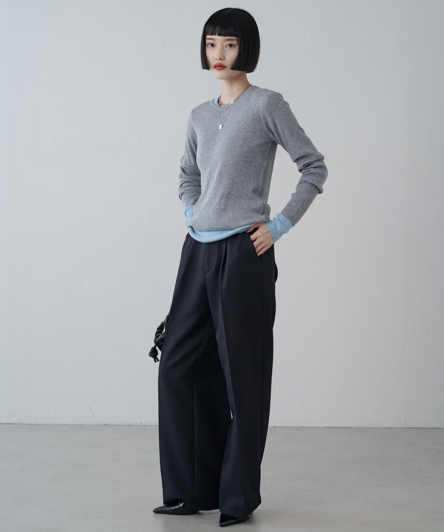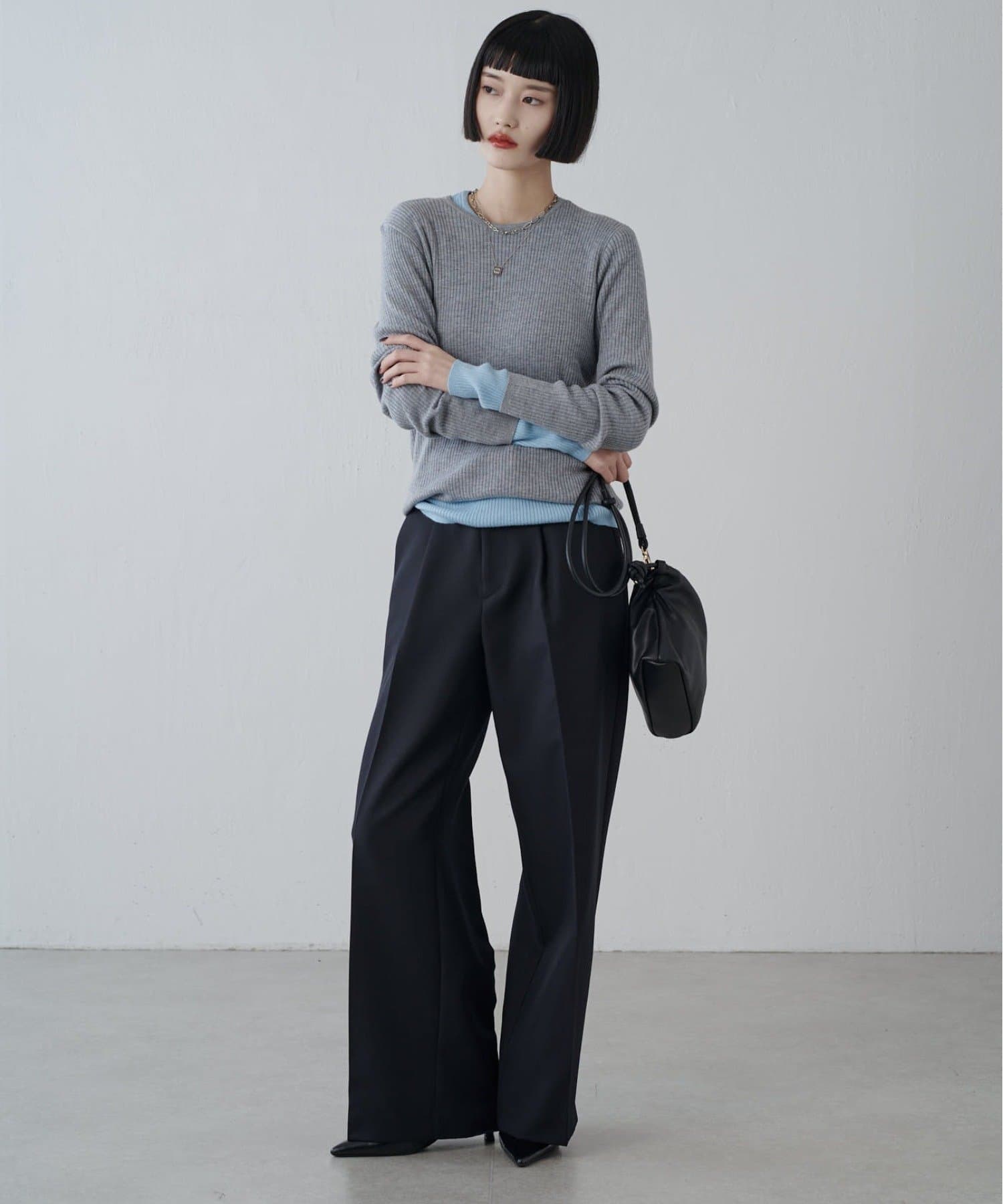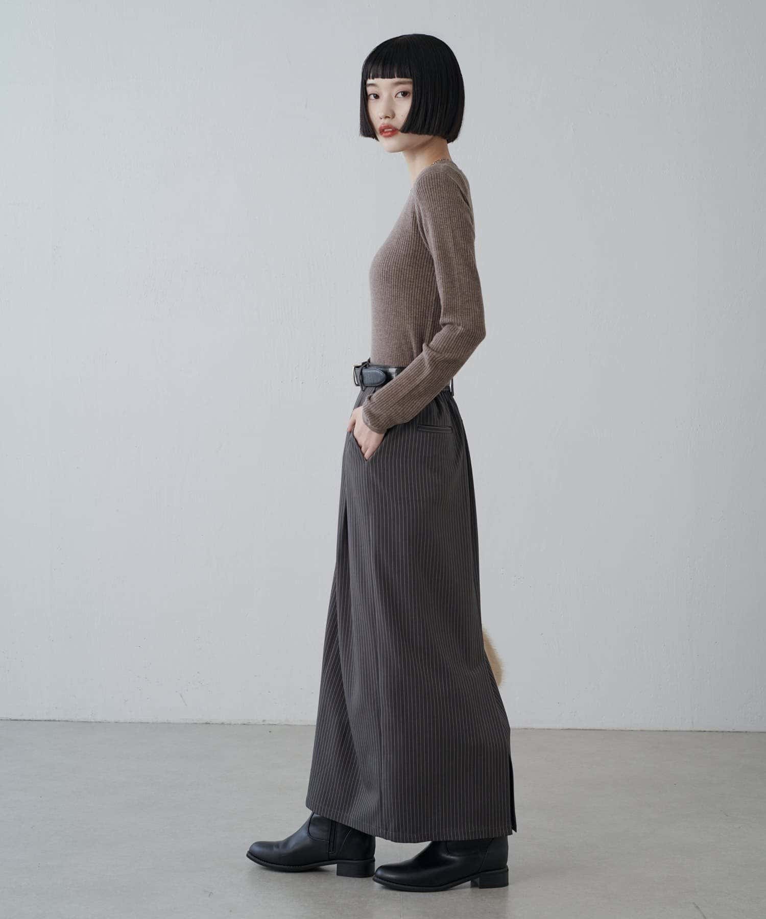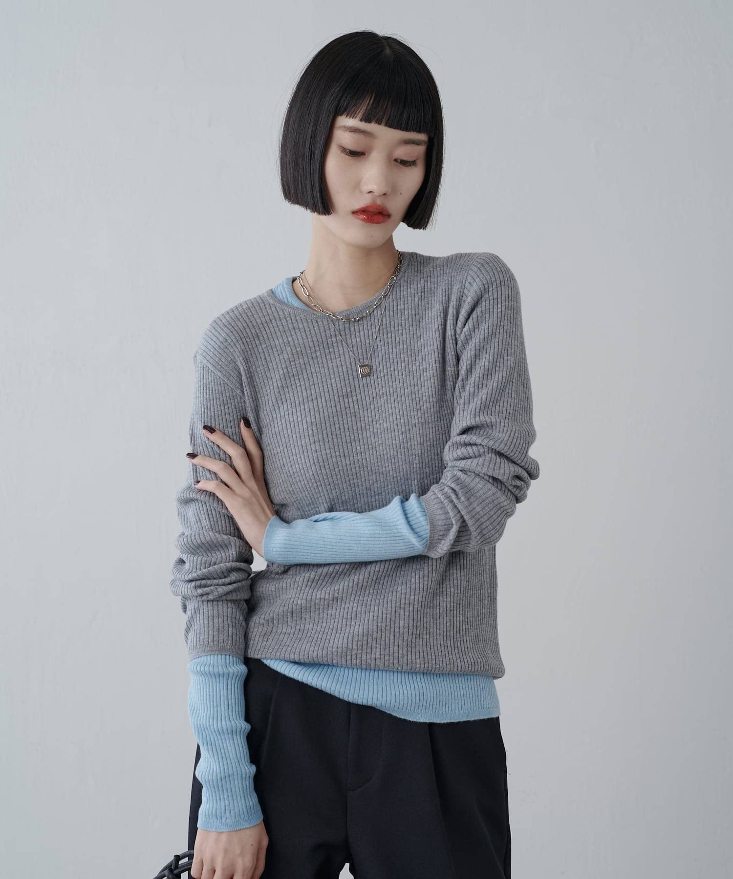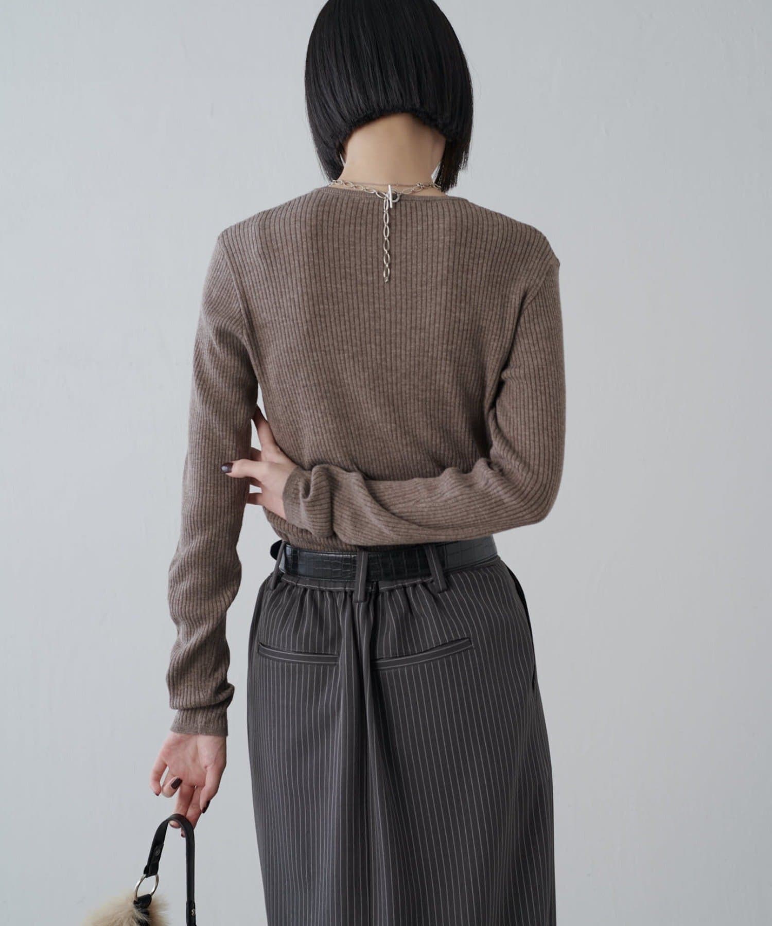 縦のリブデザインが細身えして、滑らかな肌触りで着心地がいいニットです。