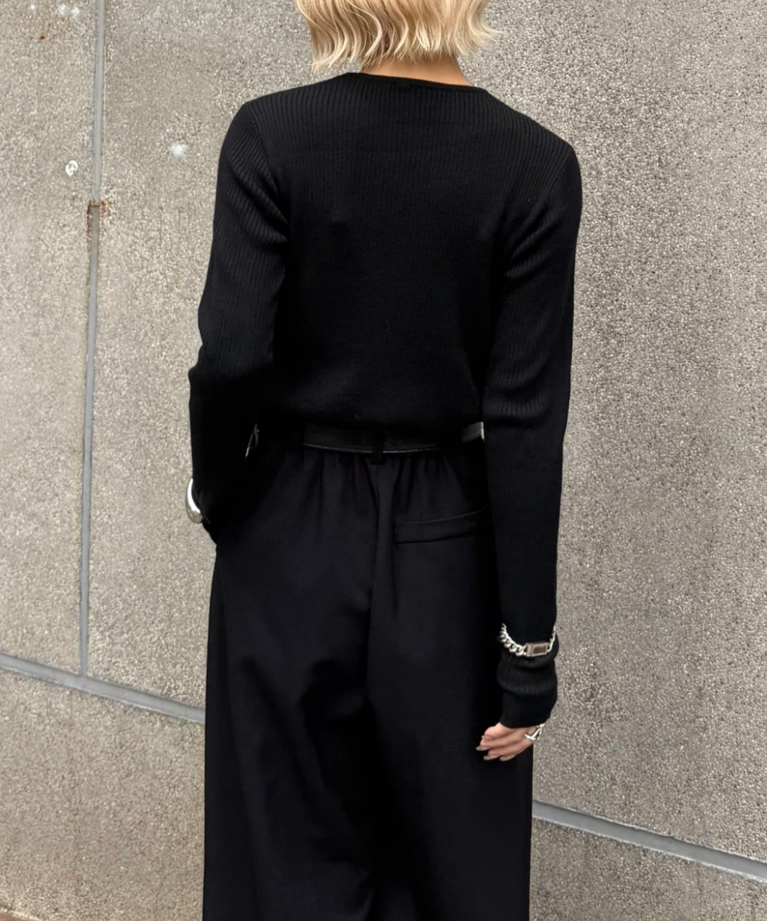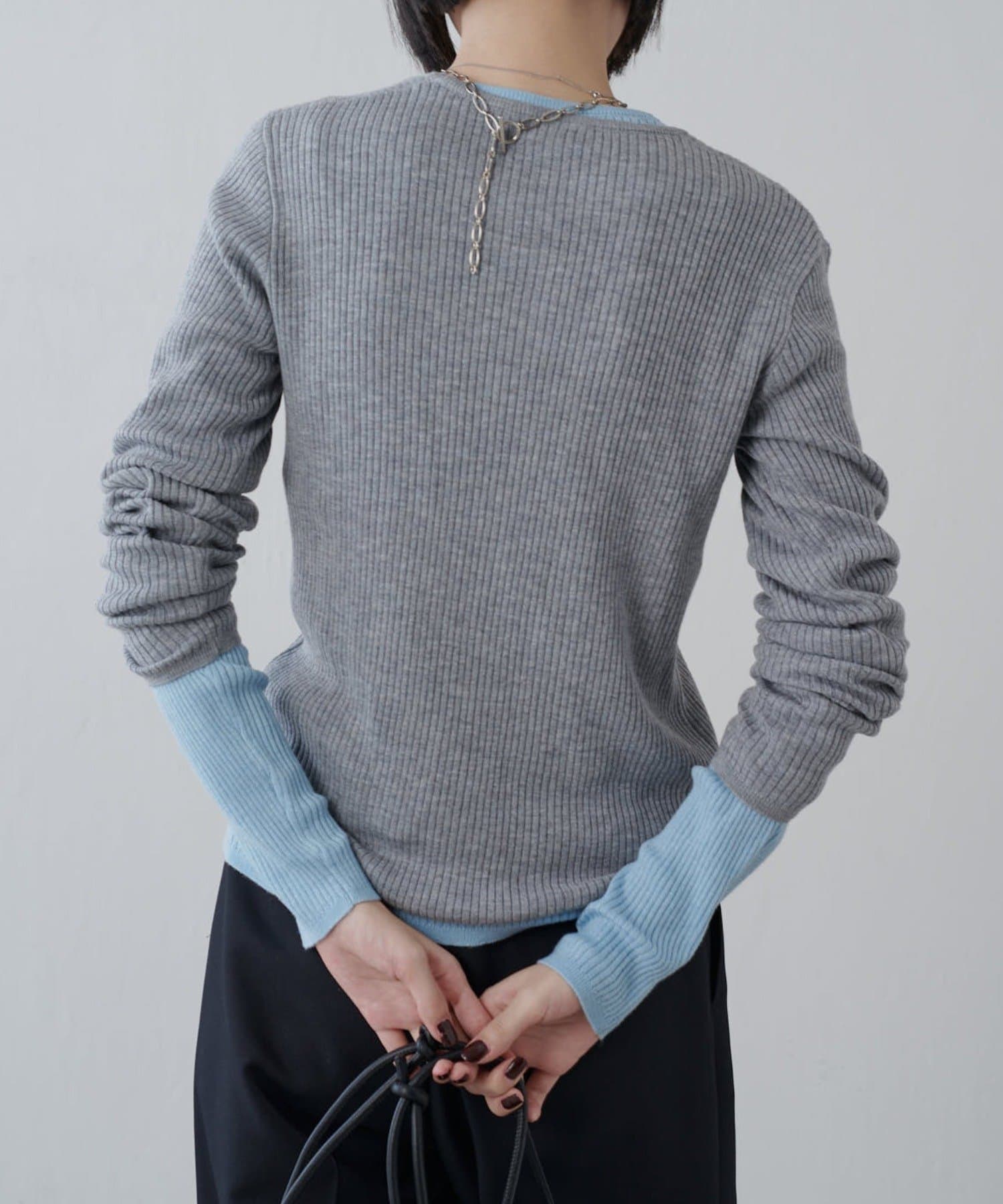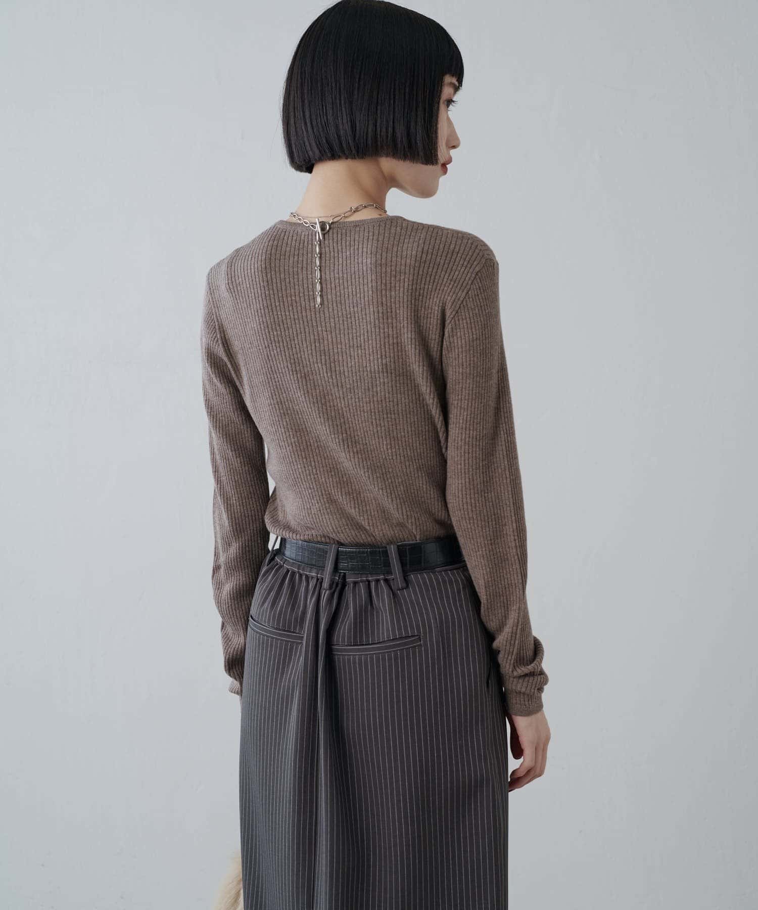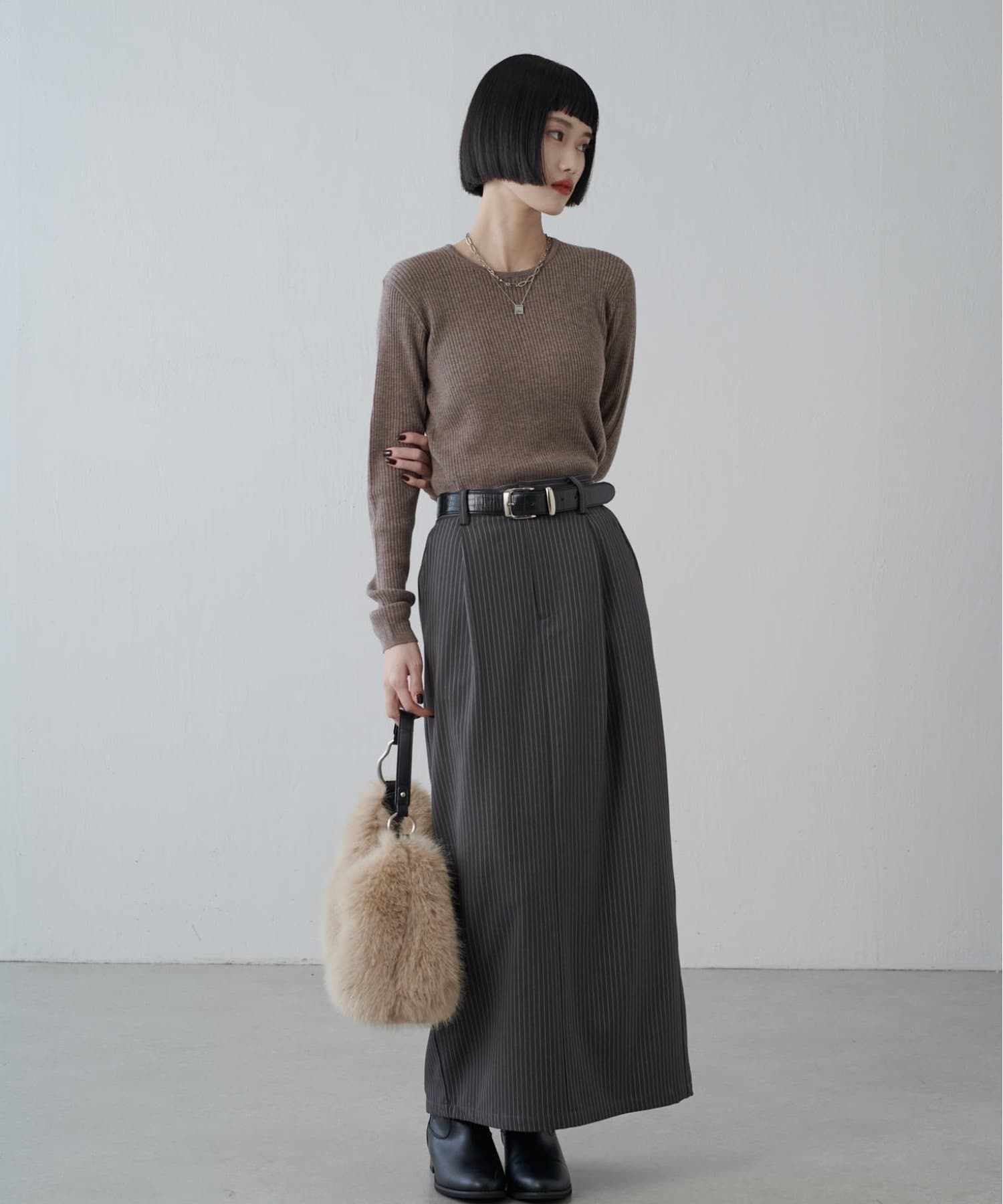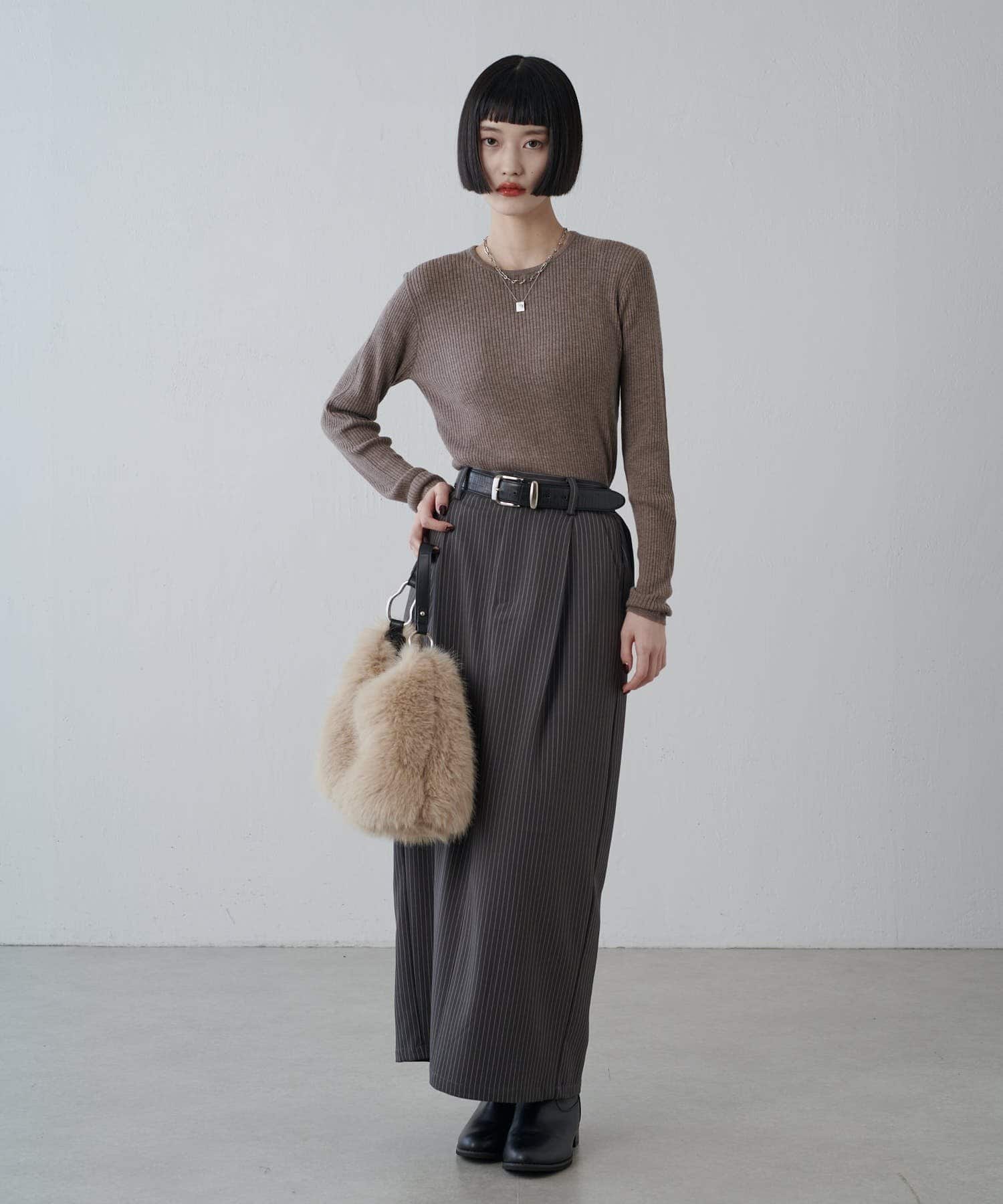 縦のリブデザインが細身えして、滑らかな肌触りで着心地がいいニットです。