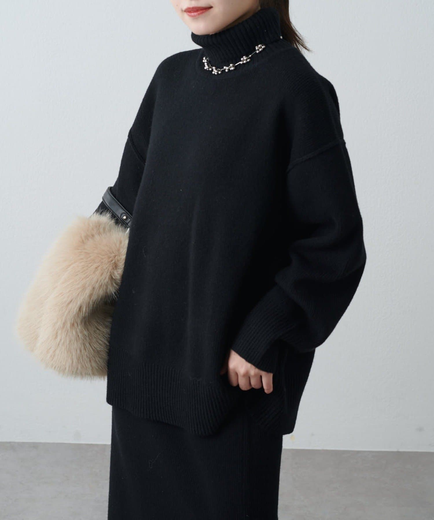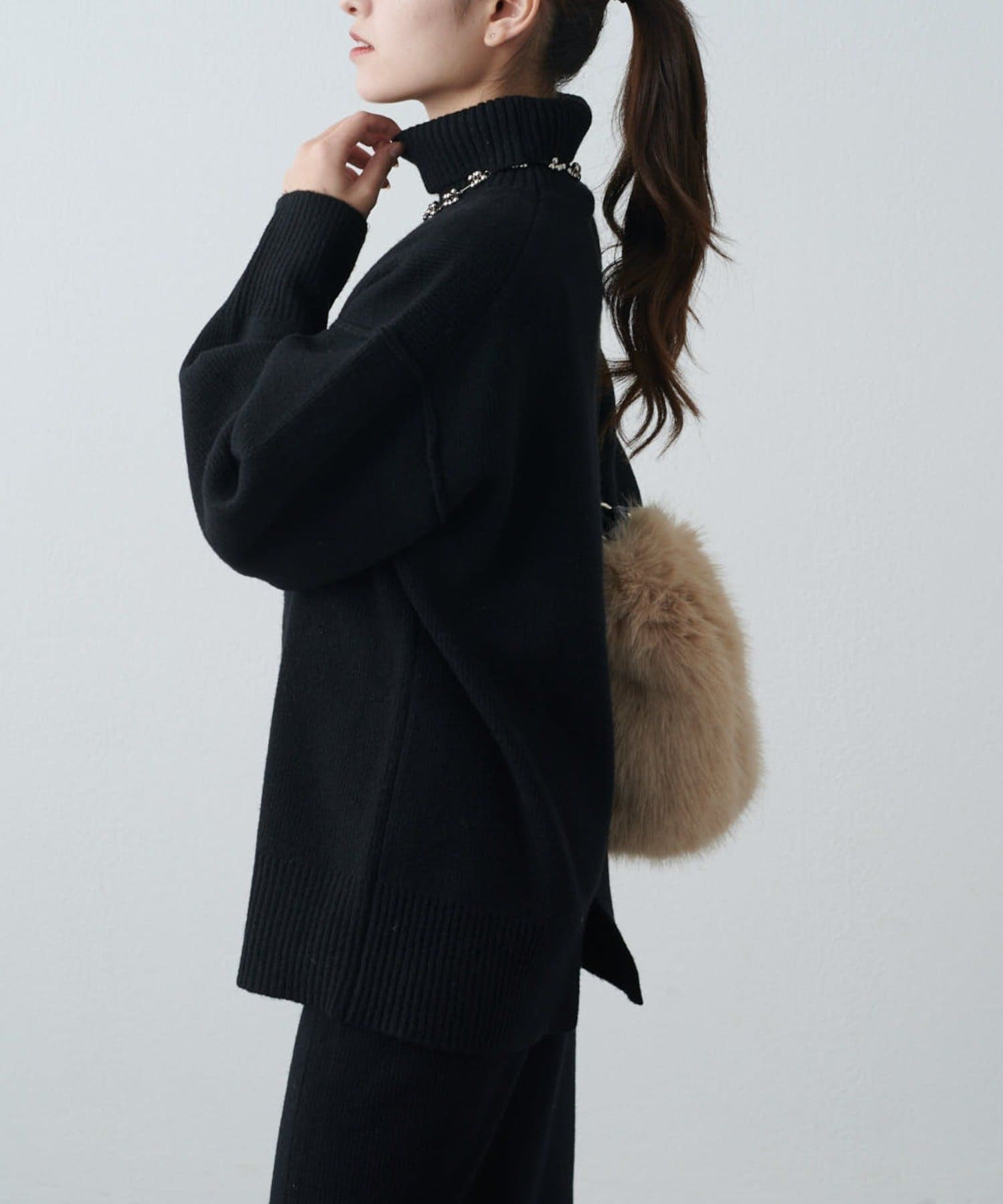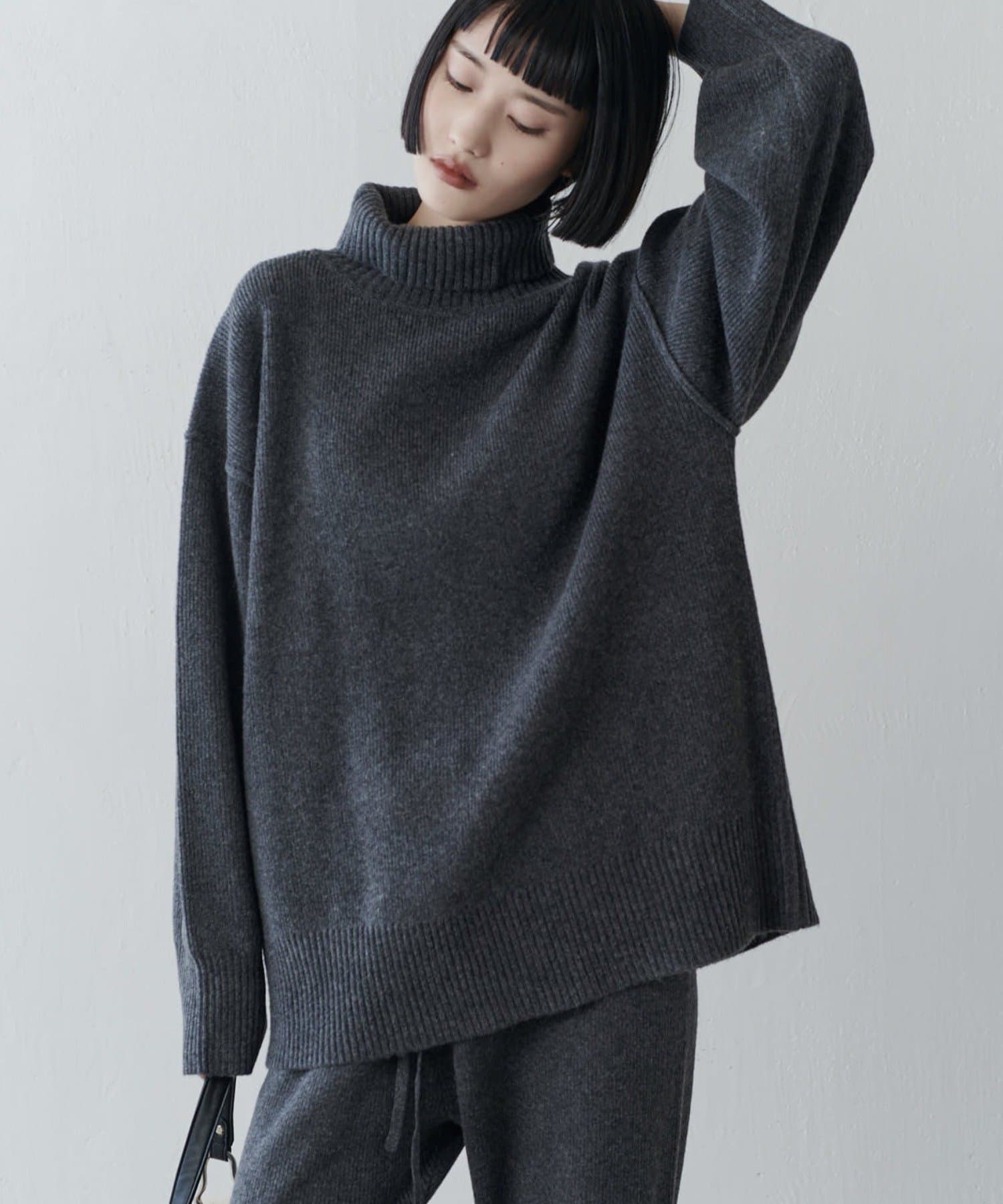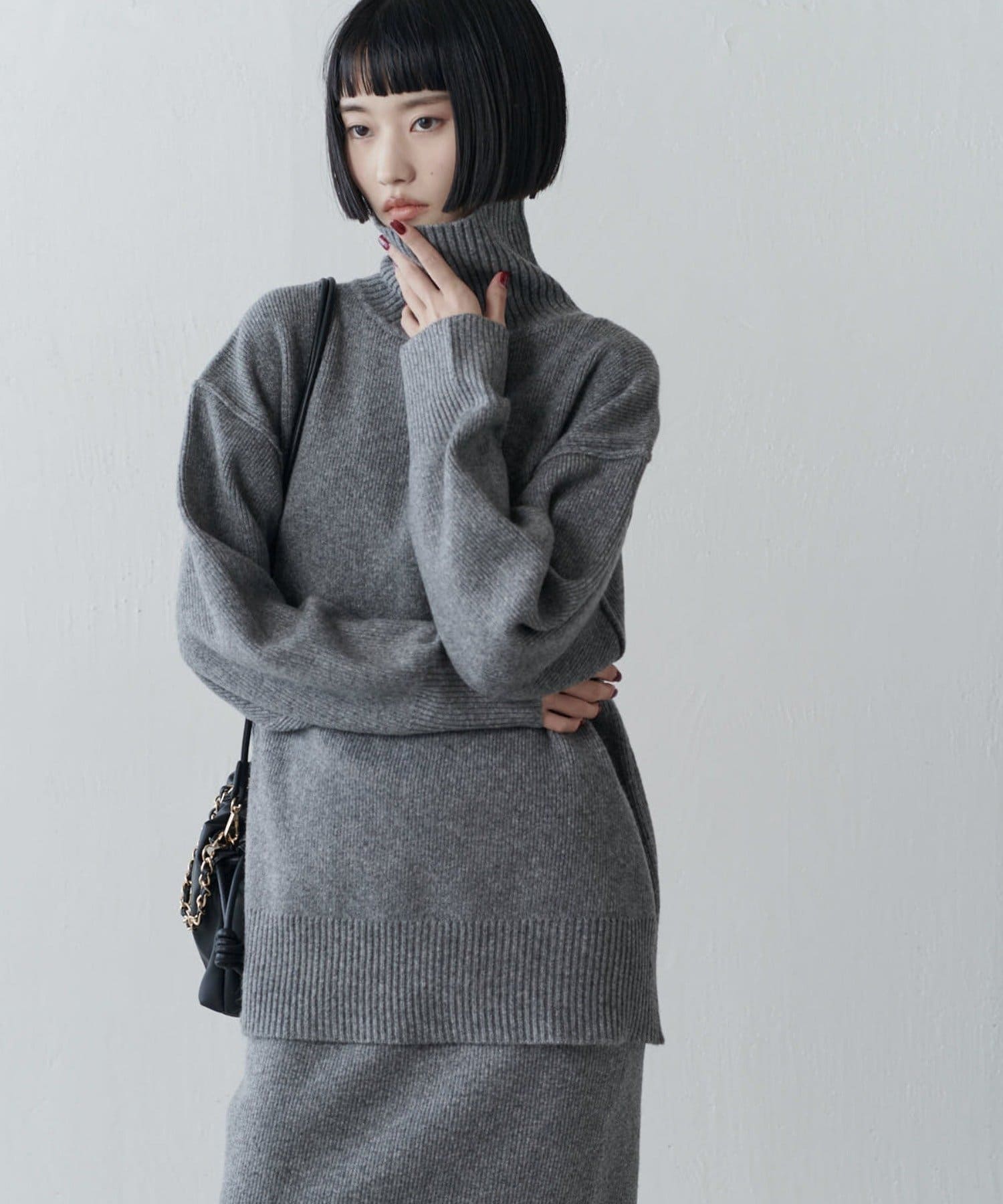 きれいめ見えするニットで大人も着やすいタートルネックニットトップス