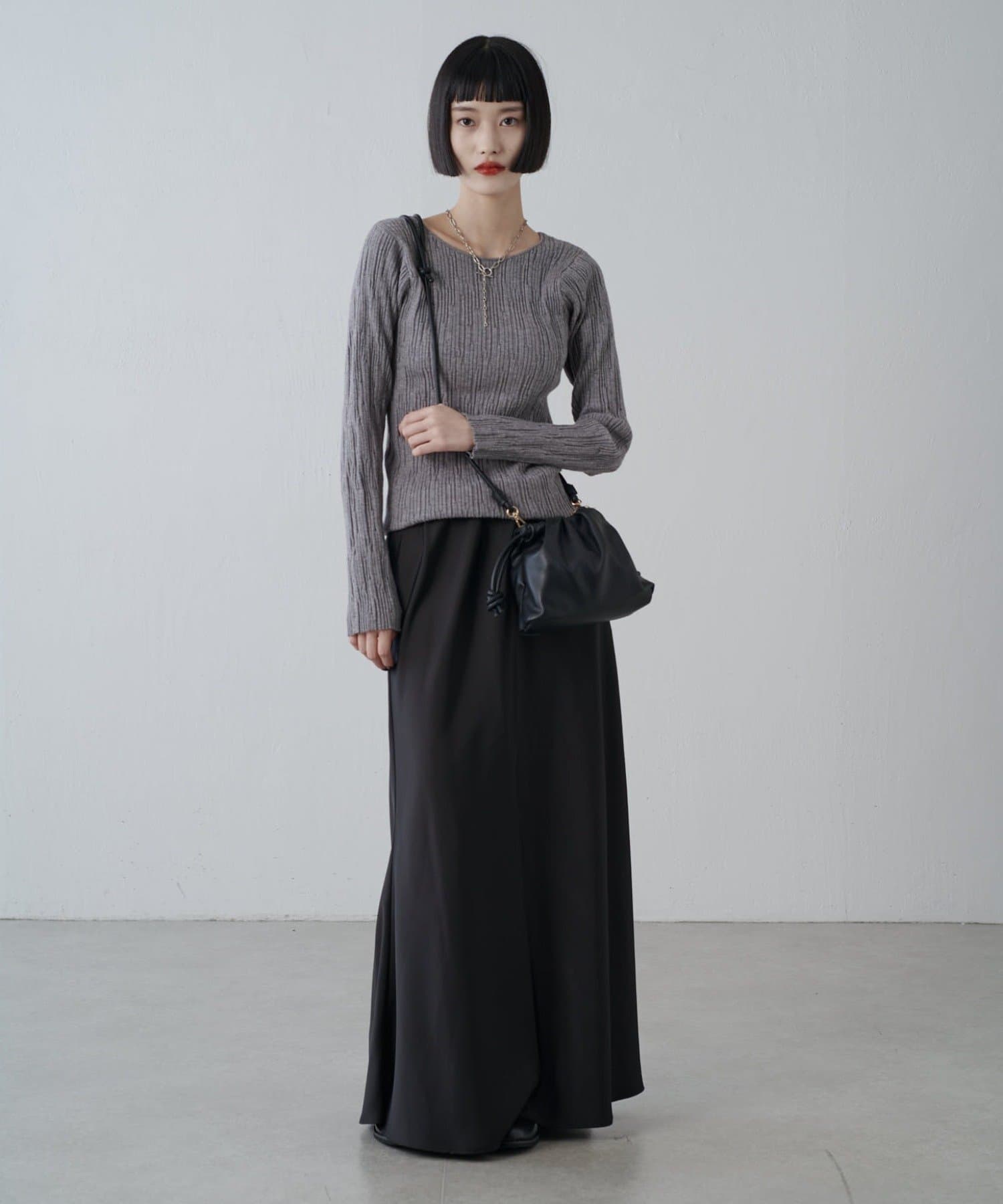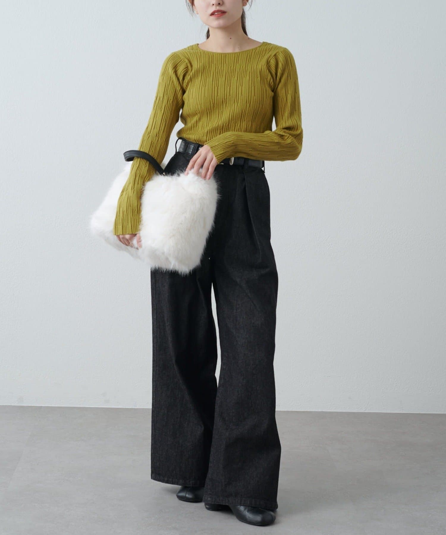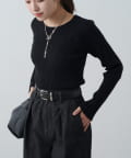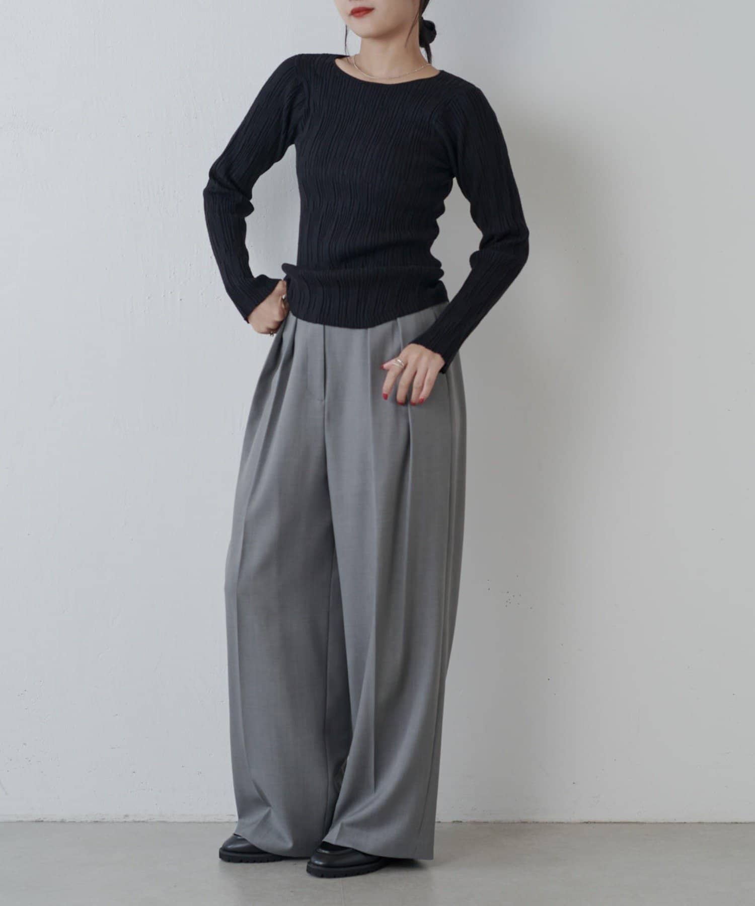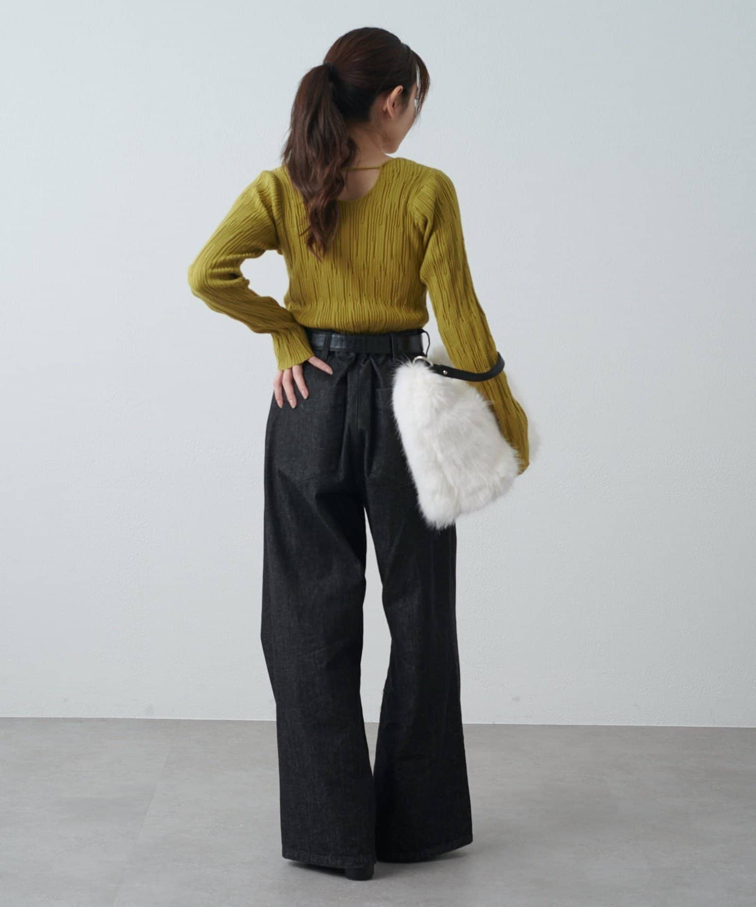 トレンド感のある首元のデザインですが、シンプルなトップスなのでどんなボトムとも相性抜群◎