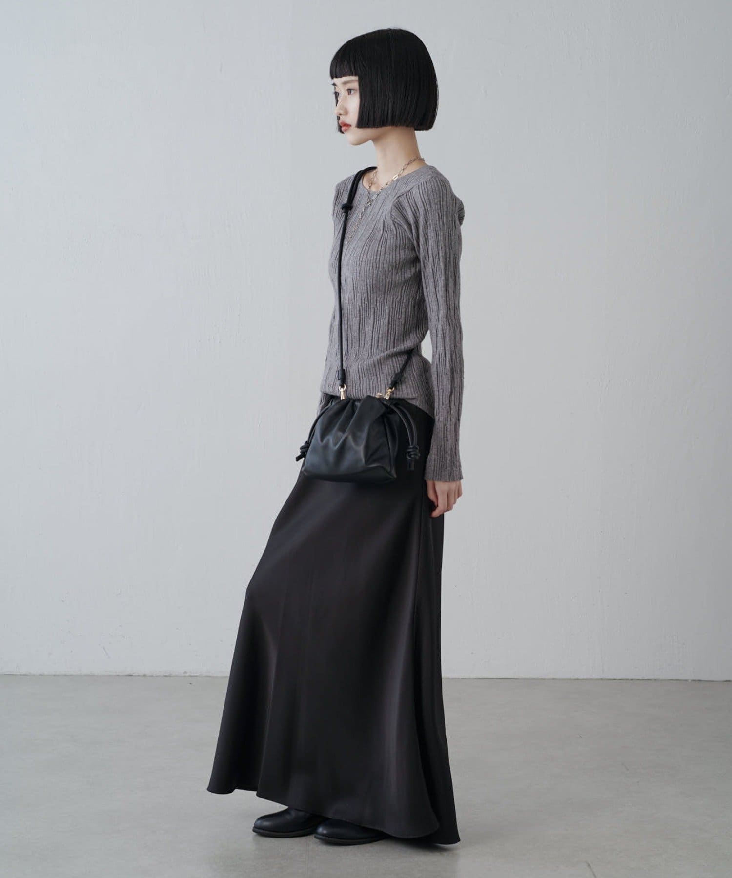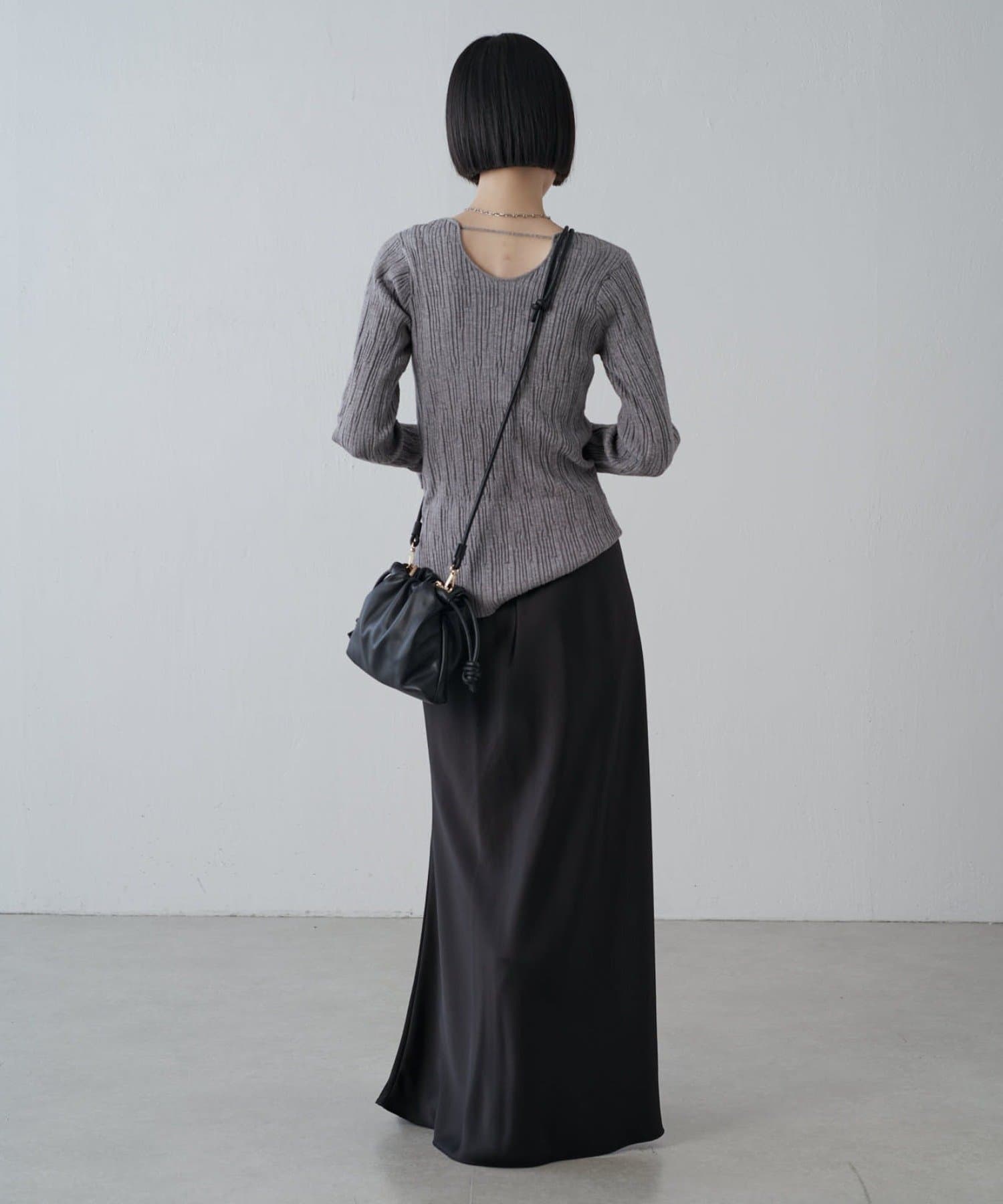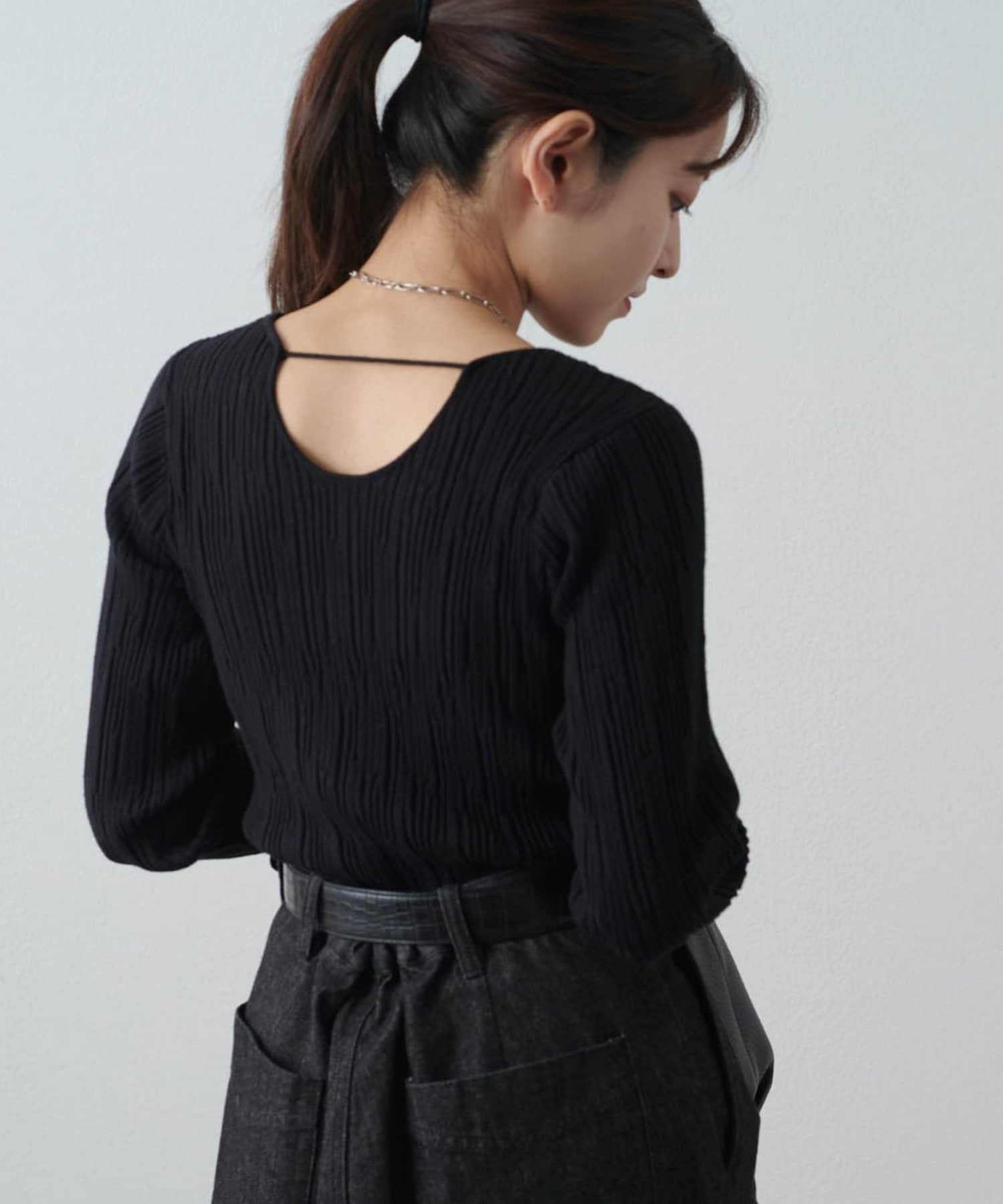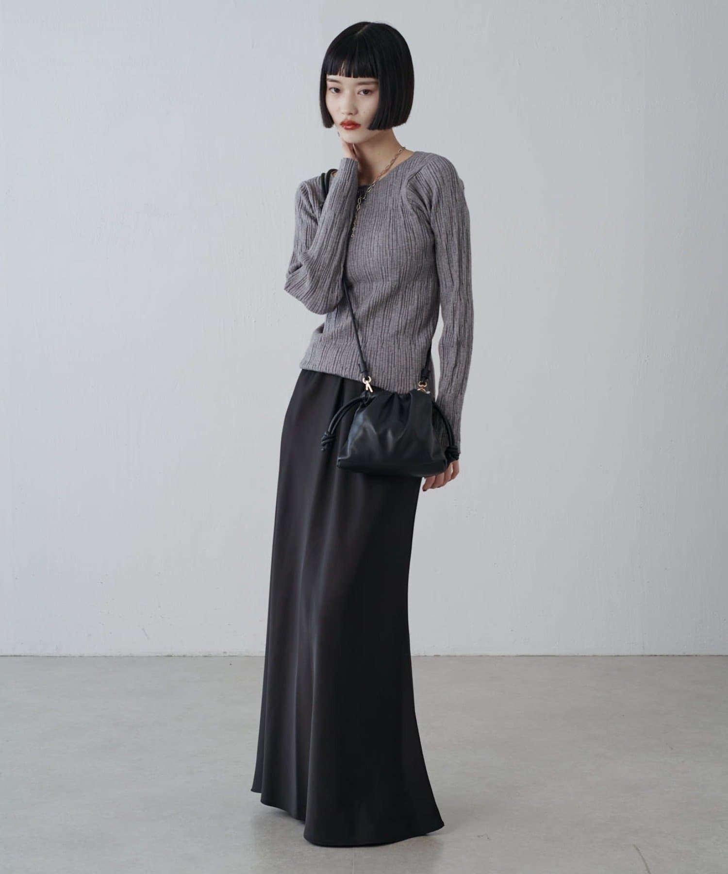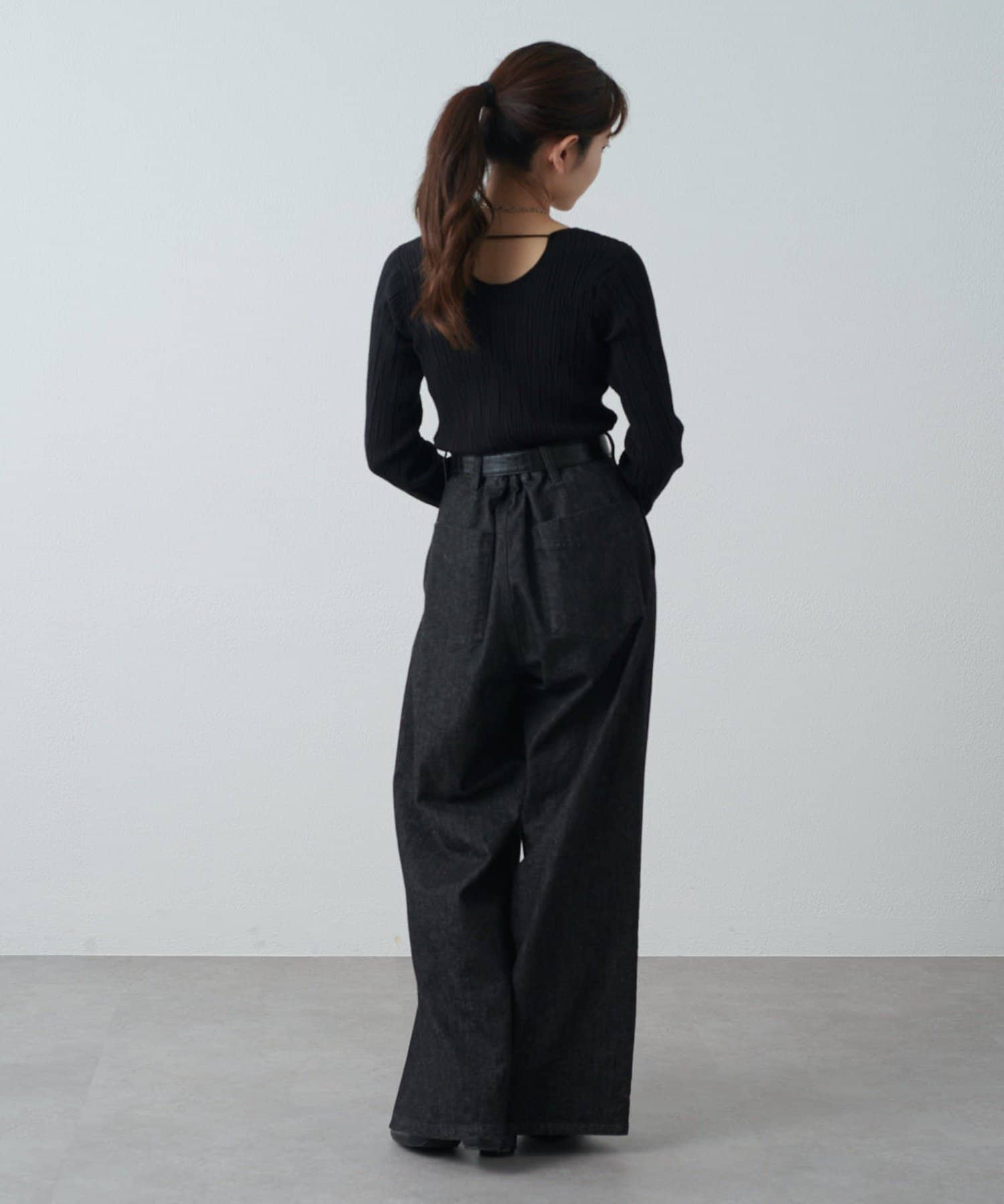 トレンド感のある首元のデザインですが、シンプルなトップスなのでどんなボトムとも相性抜群◎