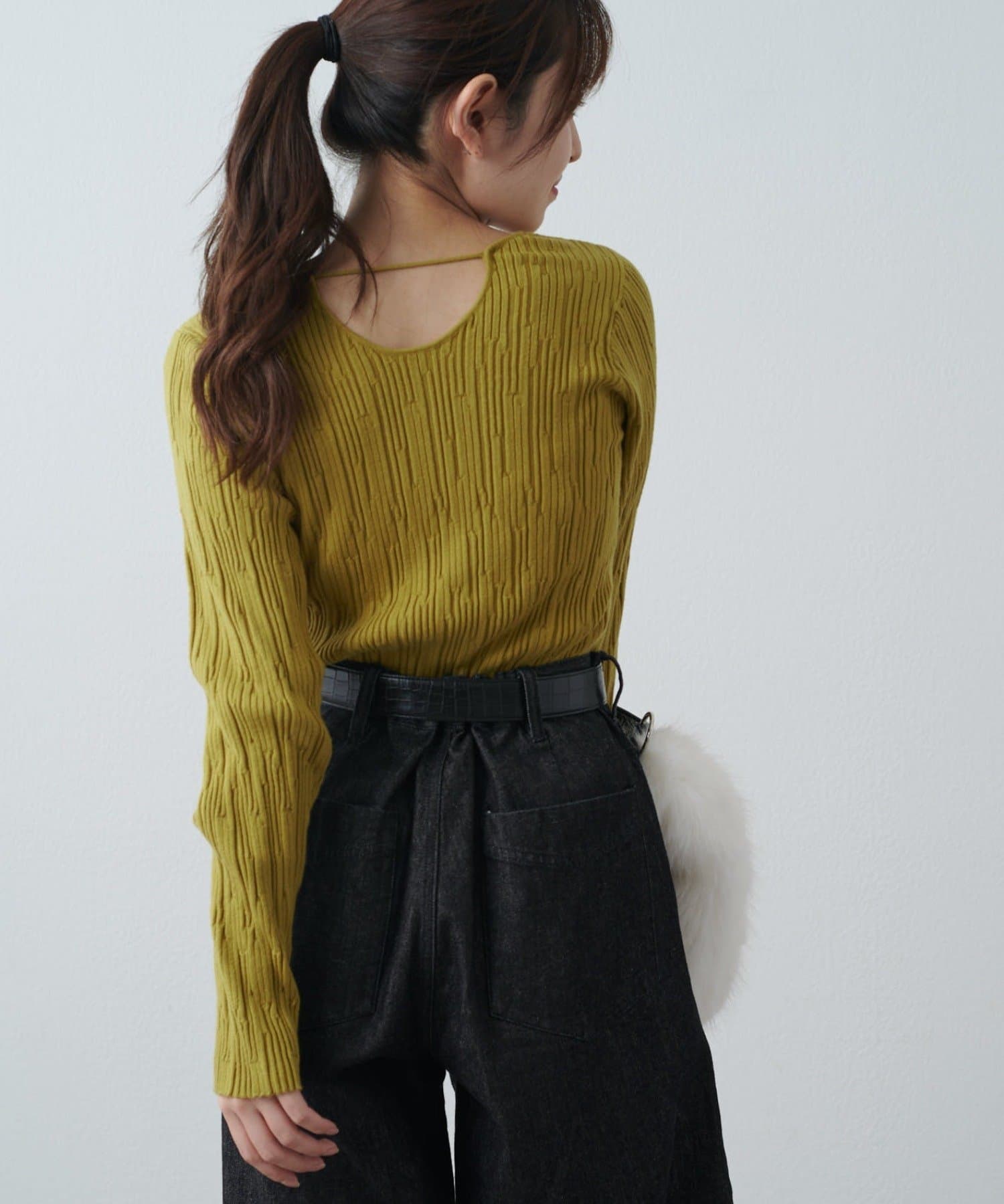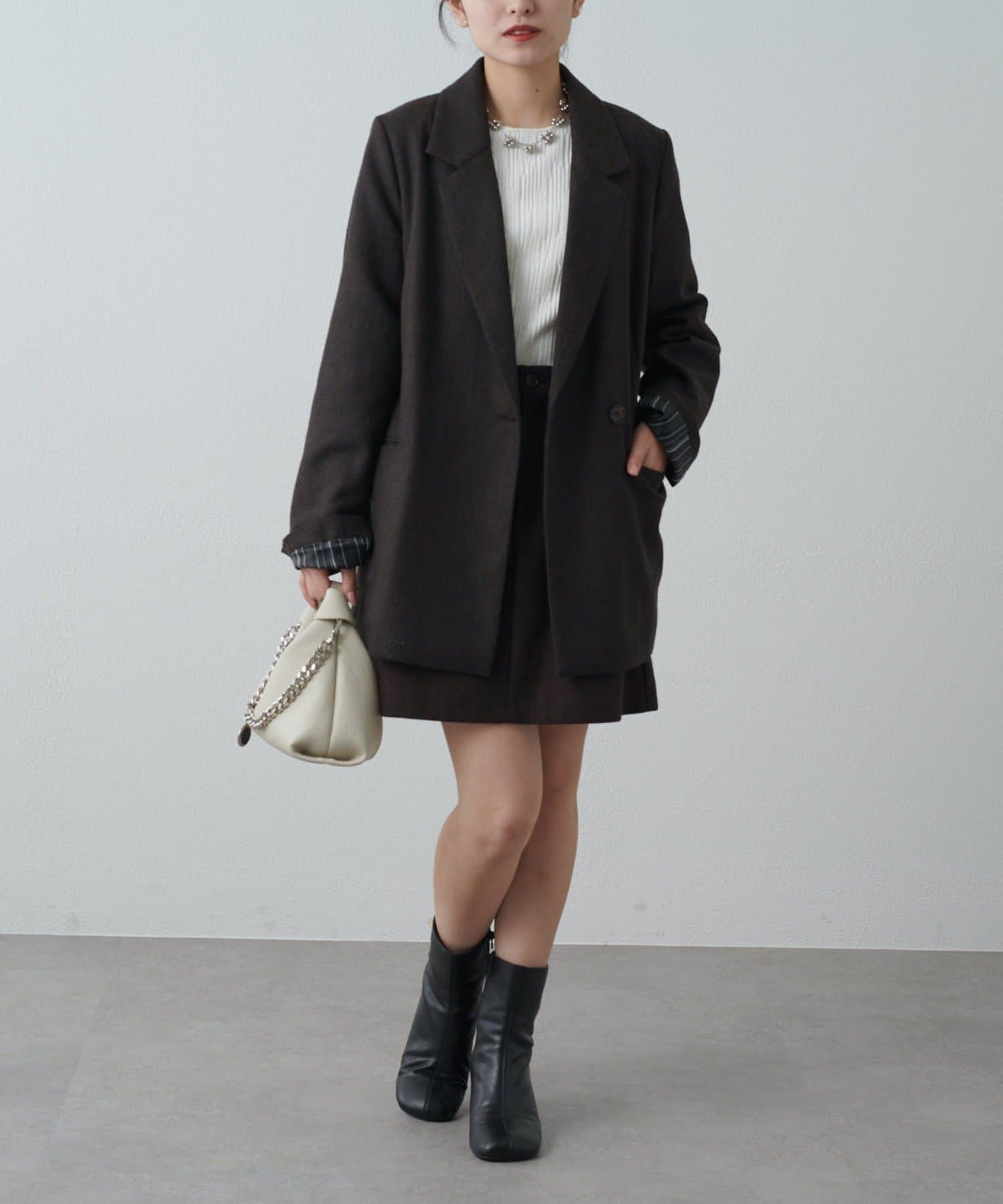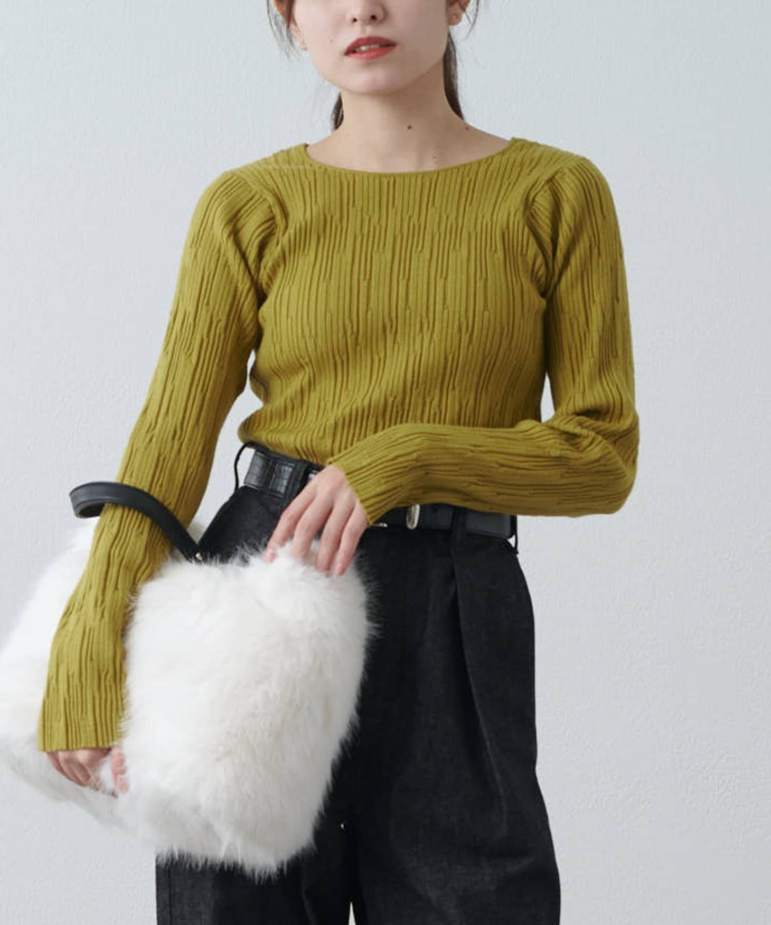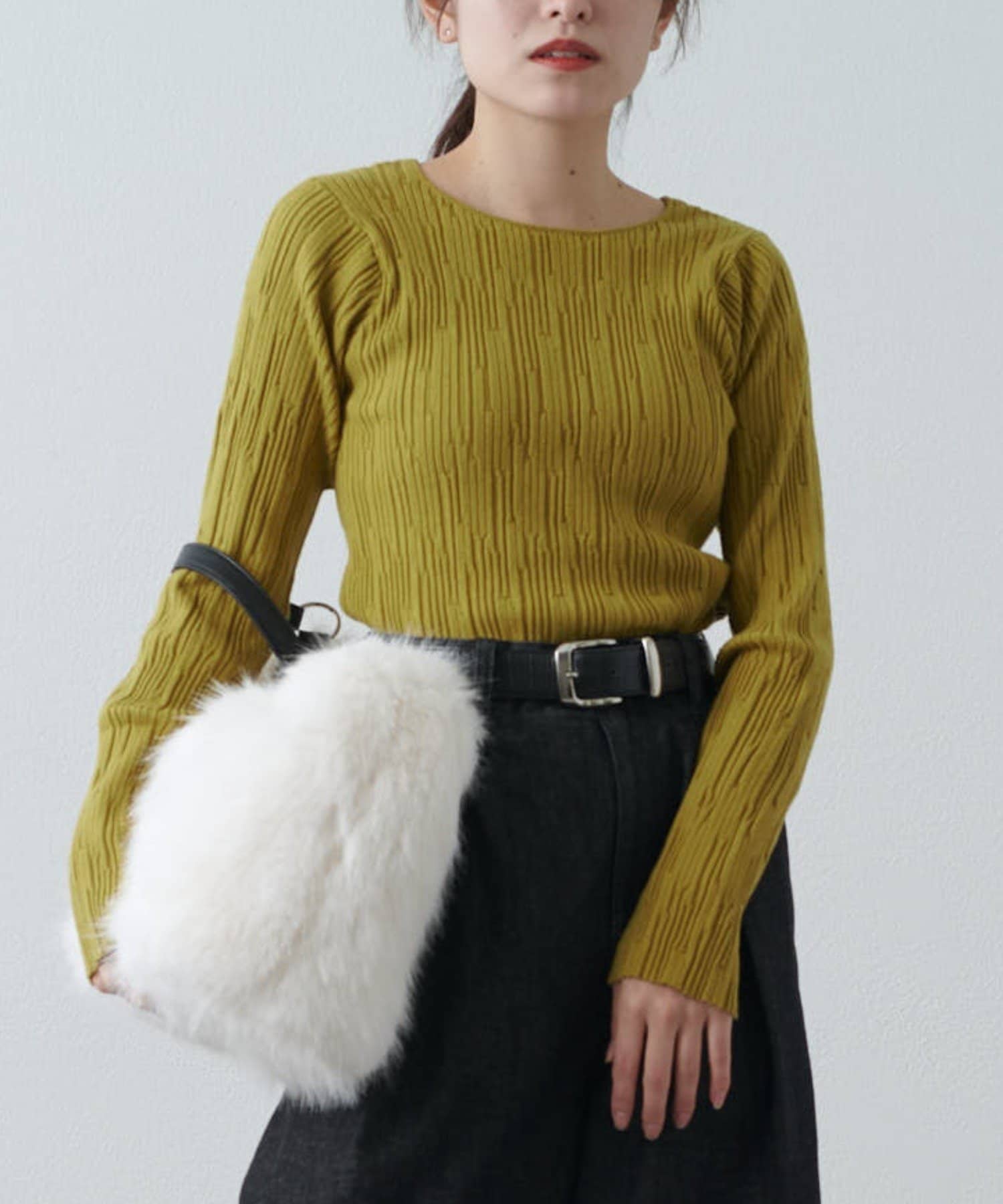 トレンド感のある首元のデザインですが、シンプルなトップスなのでどんなボトムとも相性抜群◎