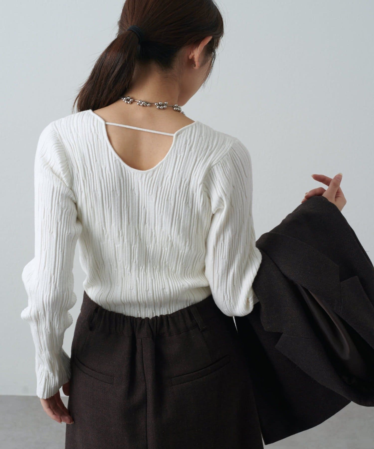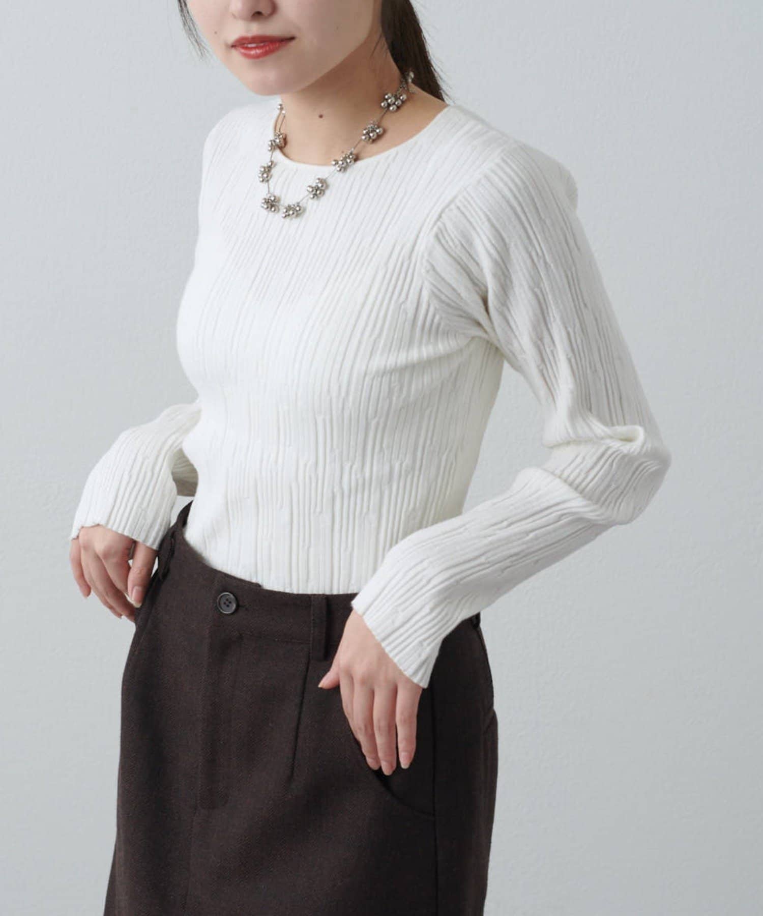 薄すぎず、厚すぎない編地で、着崩れしないのもポイントです。