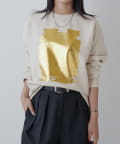 目を惹く箔プリントは、アウターに合わせても着映えする一枚。