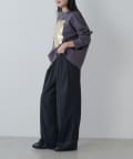 ゆったりとしたシルエットなので、ボトムスはシンプルなすっきりしたアイテムやメリハリの付くボトムがおすすめ。