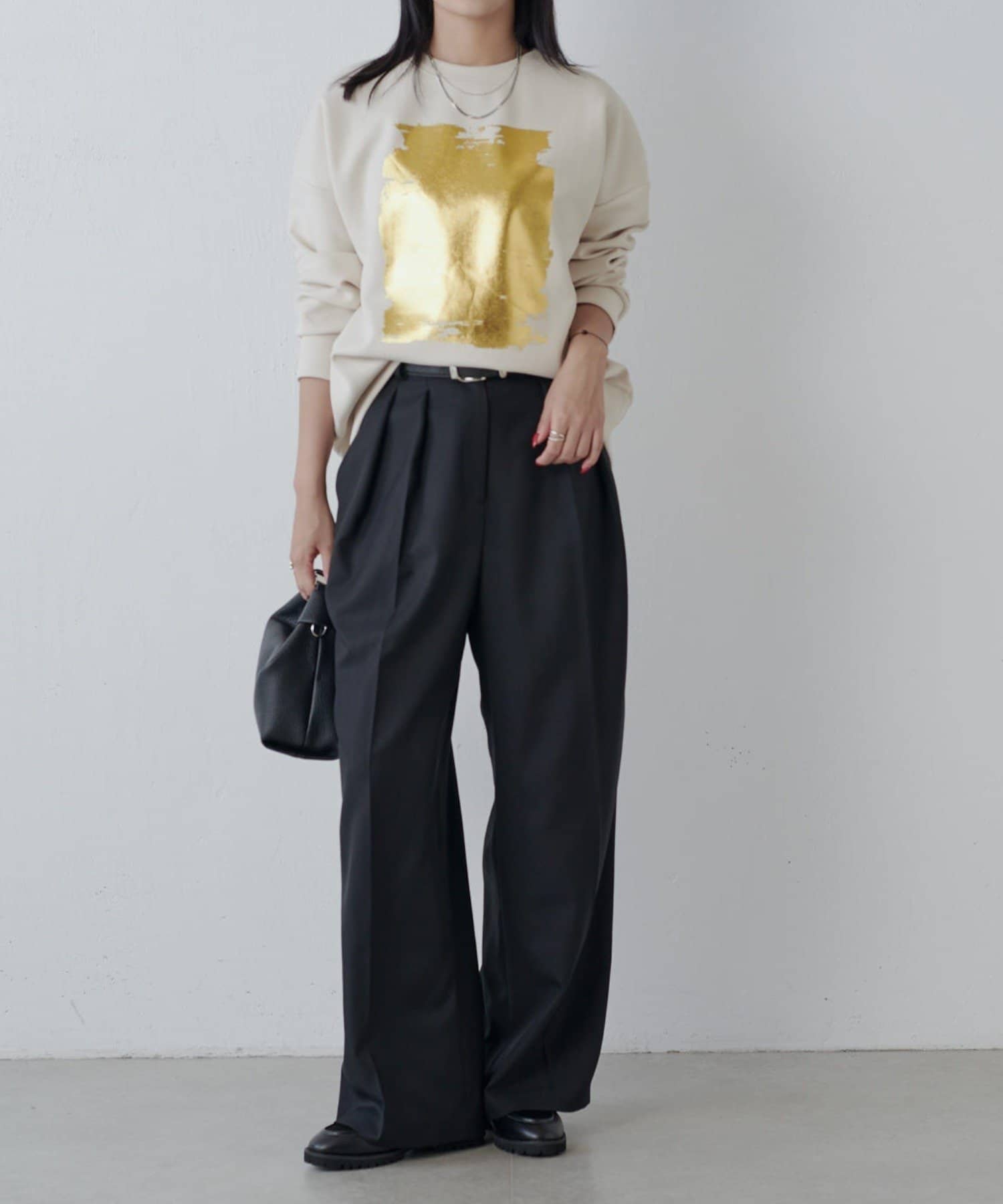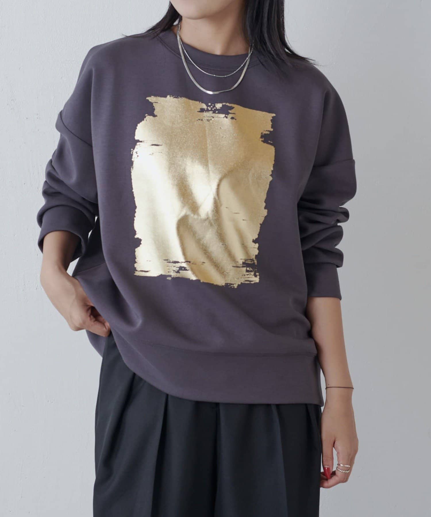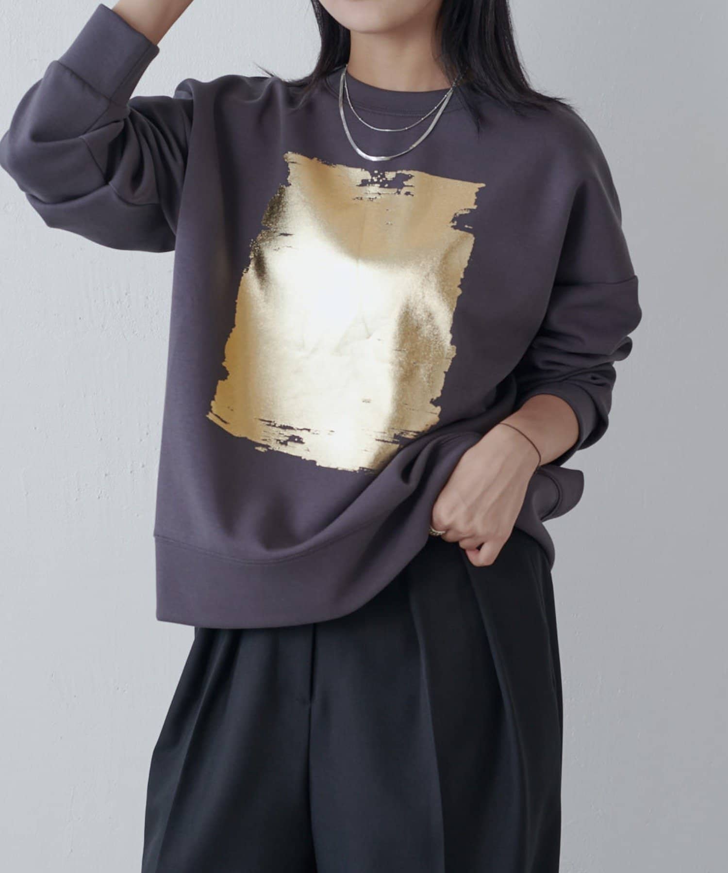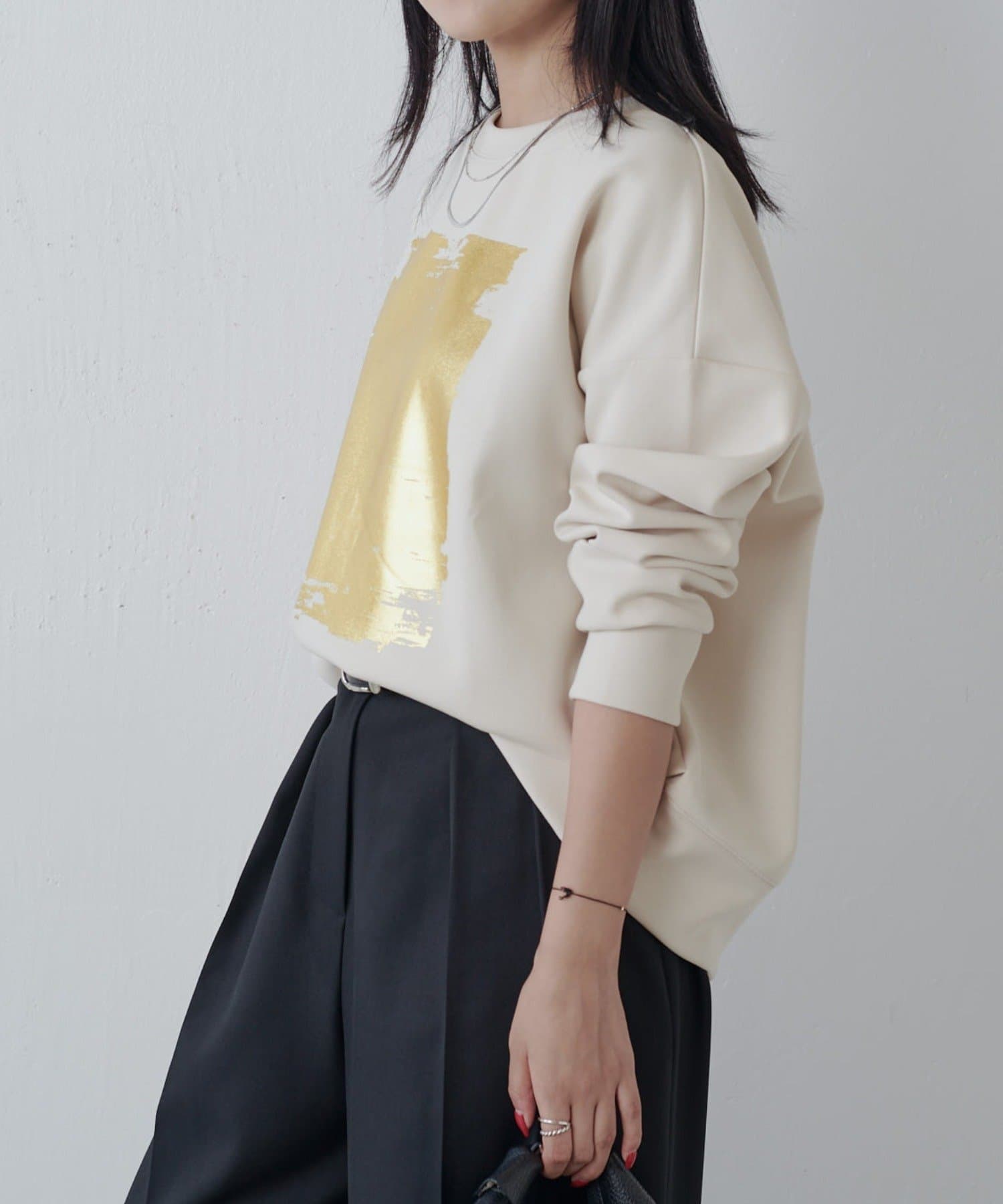 フロントには、箔プリントが施されており、キレイめカジュアルな大人かわいいスタイリングが叶います!