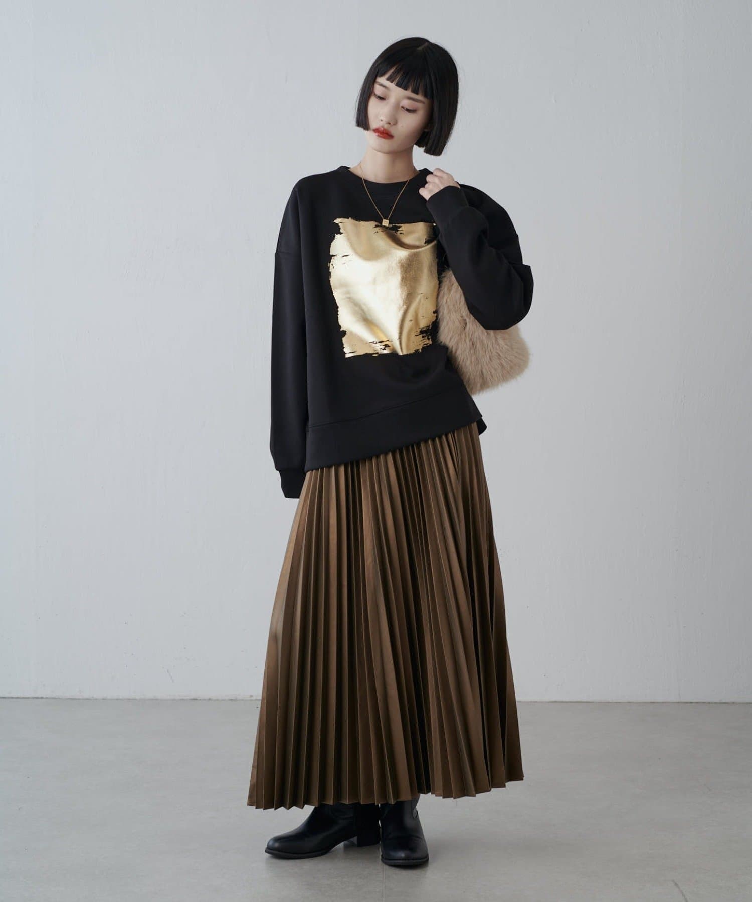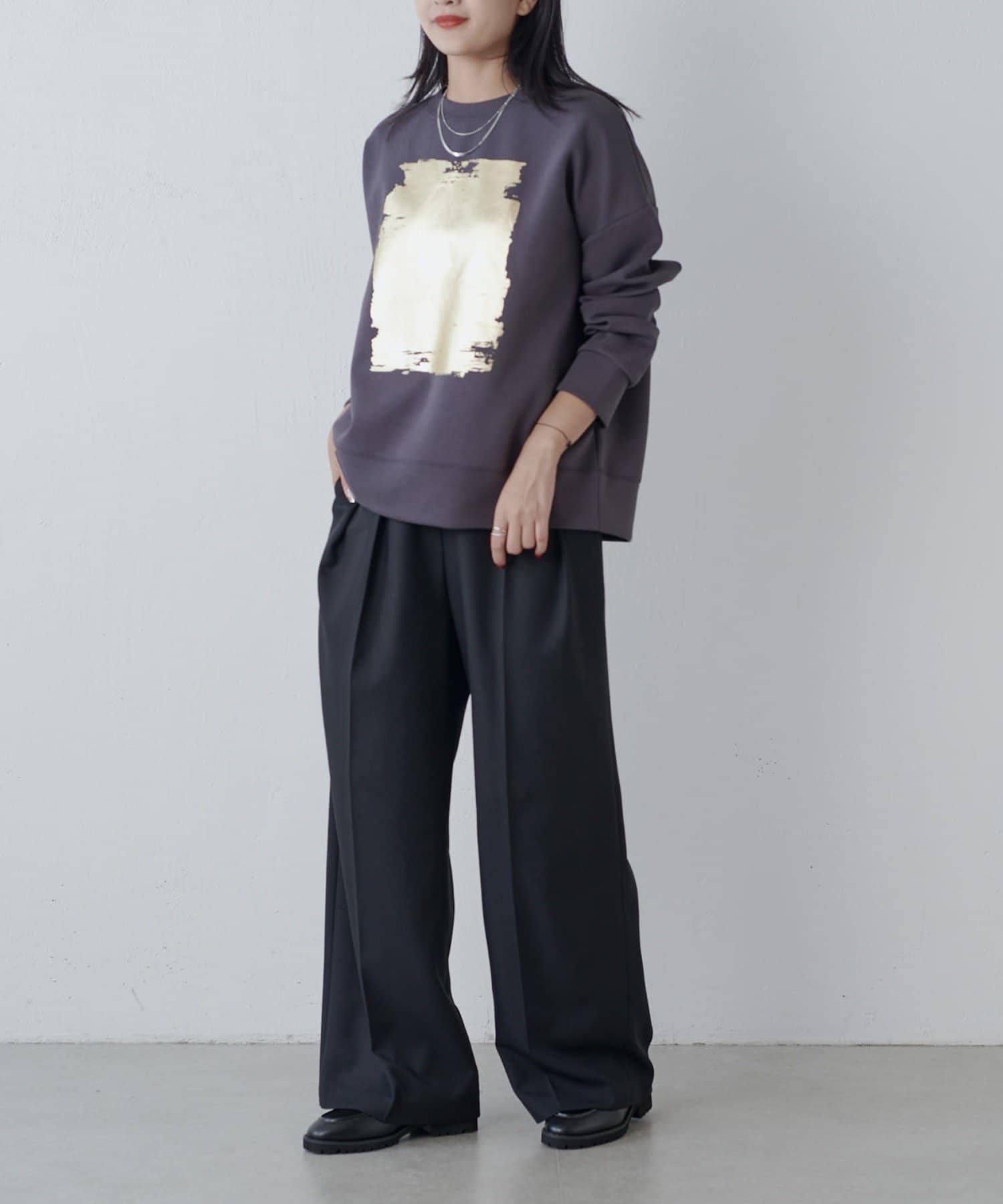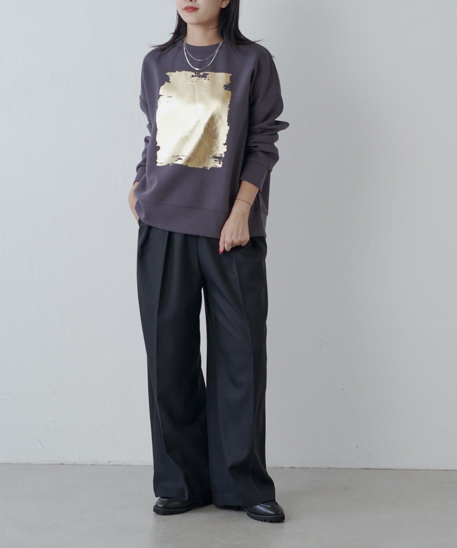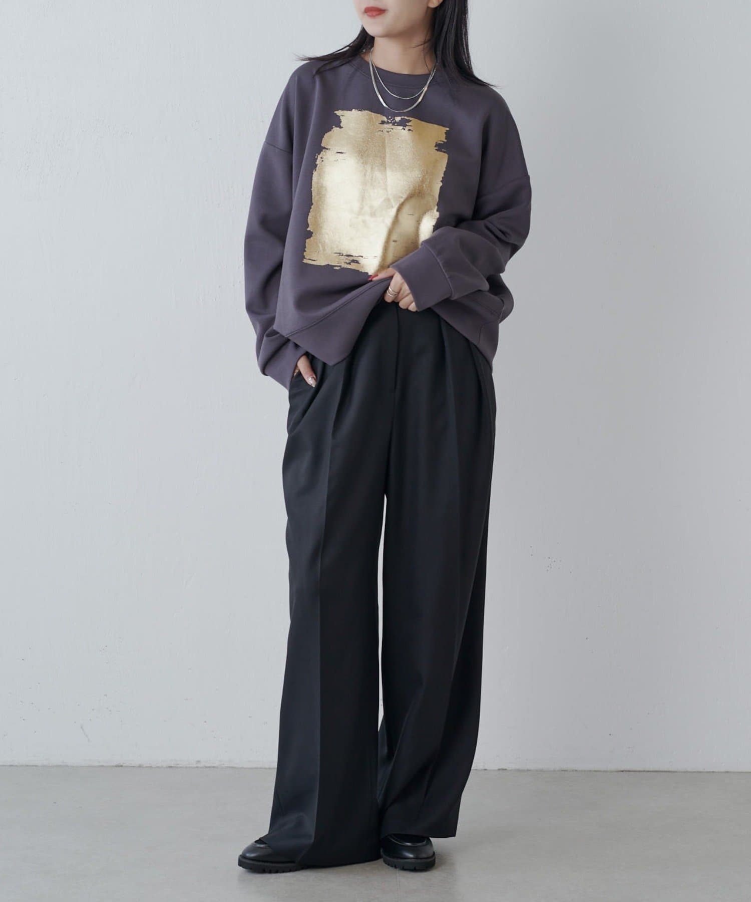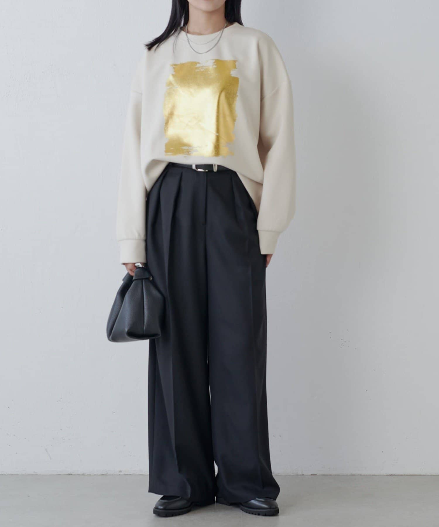フロントには、箔プリントが施されており、キレイめカジュアルな大人かわいいスタイリングが叶います!