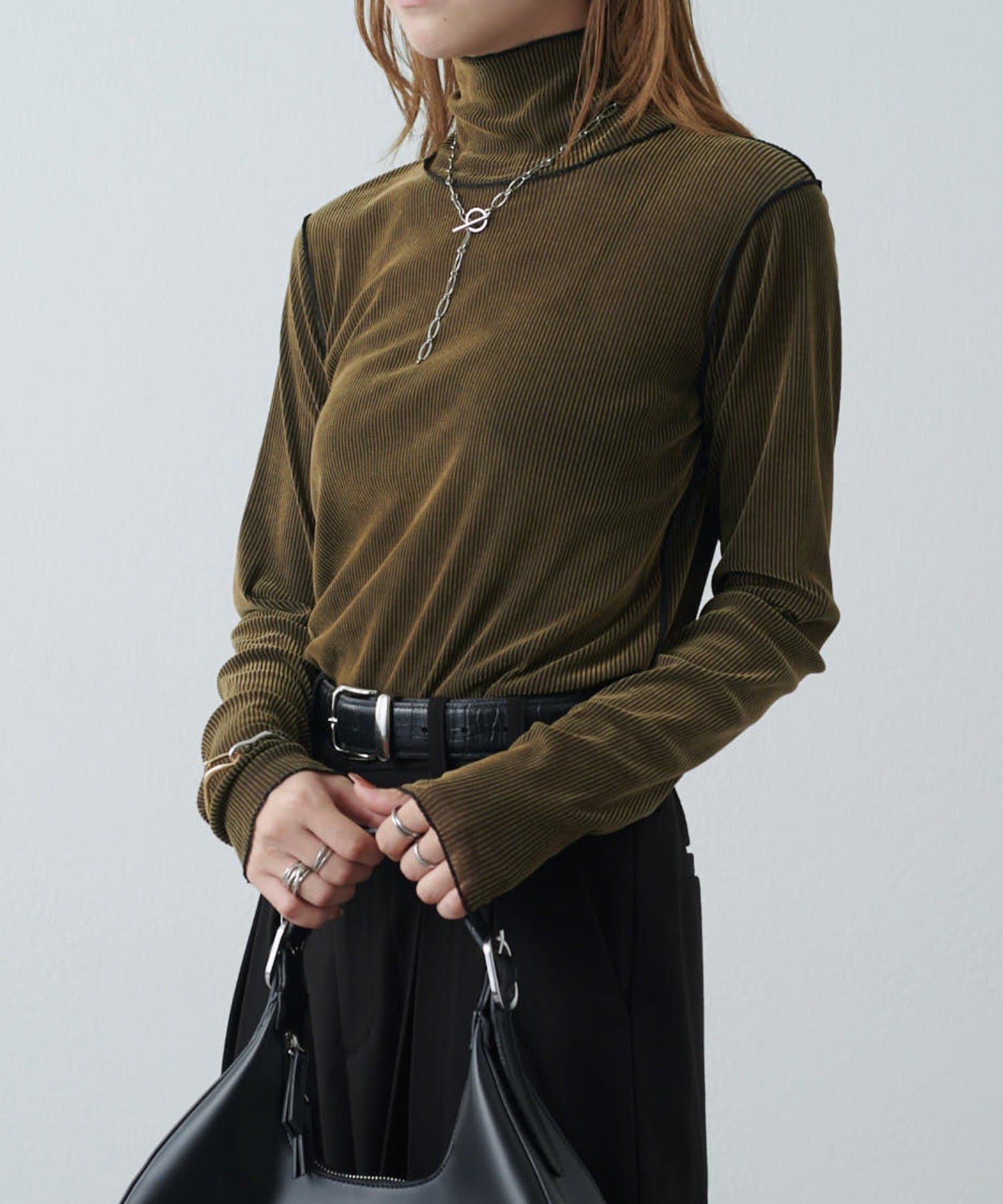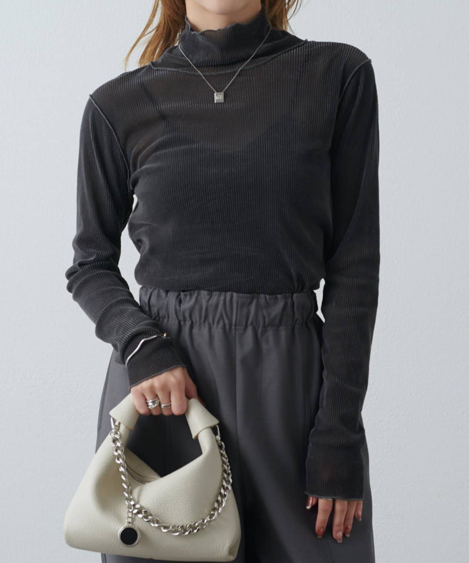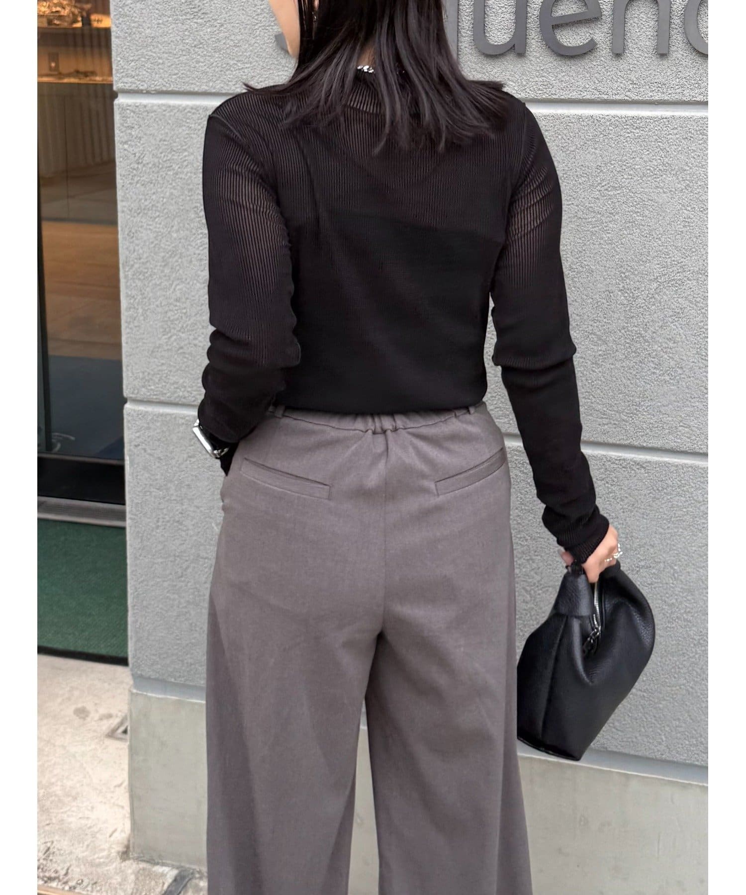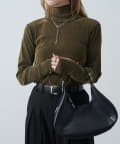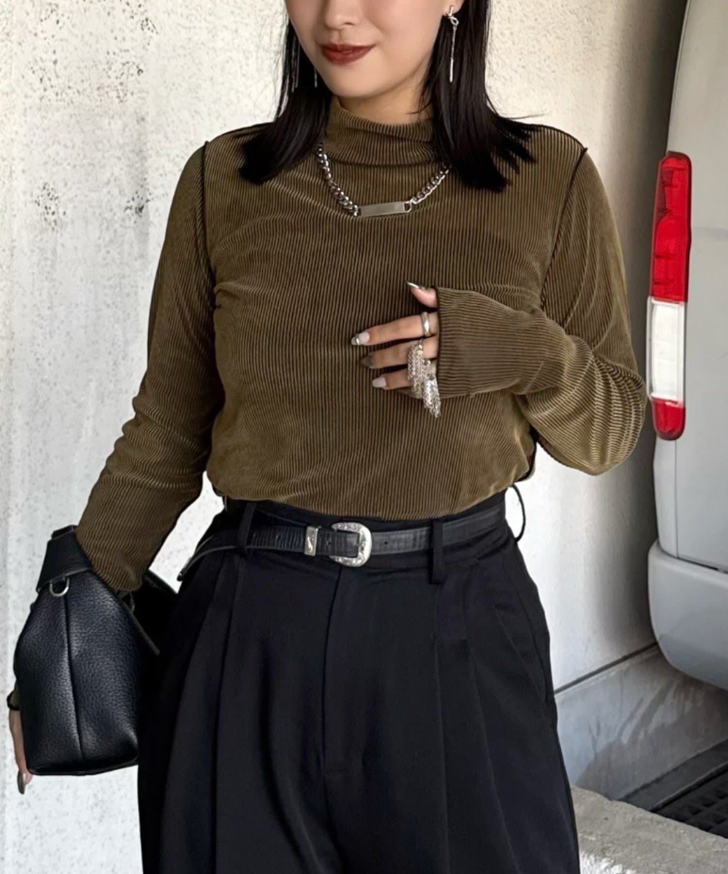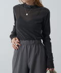 ベロアの高級感ある素材に、程よい透け感がポイントで、モードにもカジュアルにもキレイめにもハマるトップスです。
