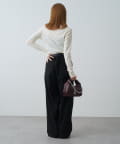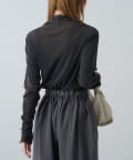 抜け感と華やかさが目を惹くトップスで、他と被らない素材感とデザインです。