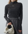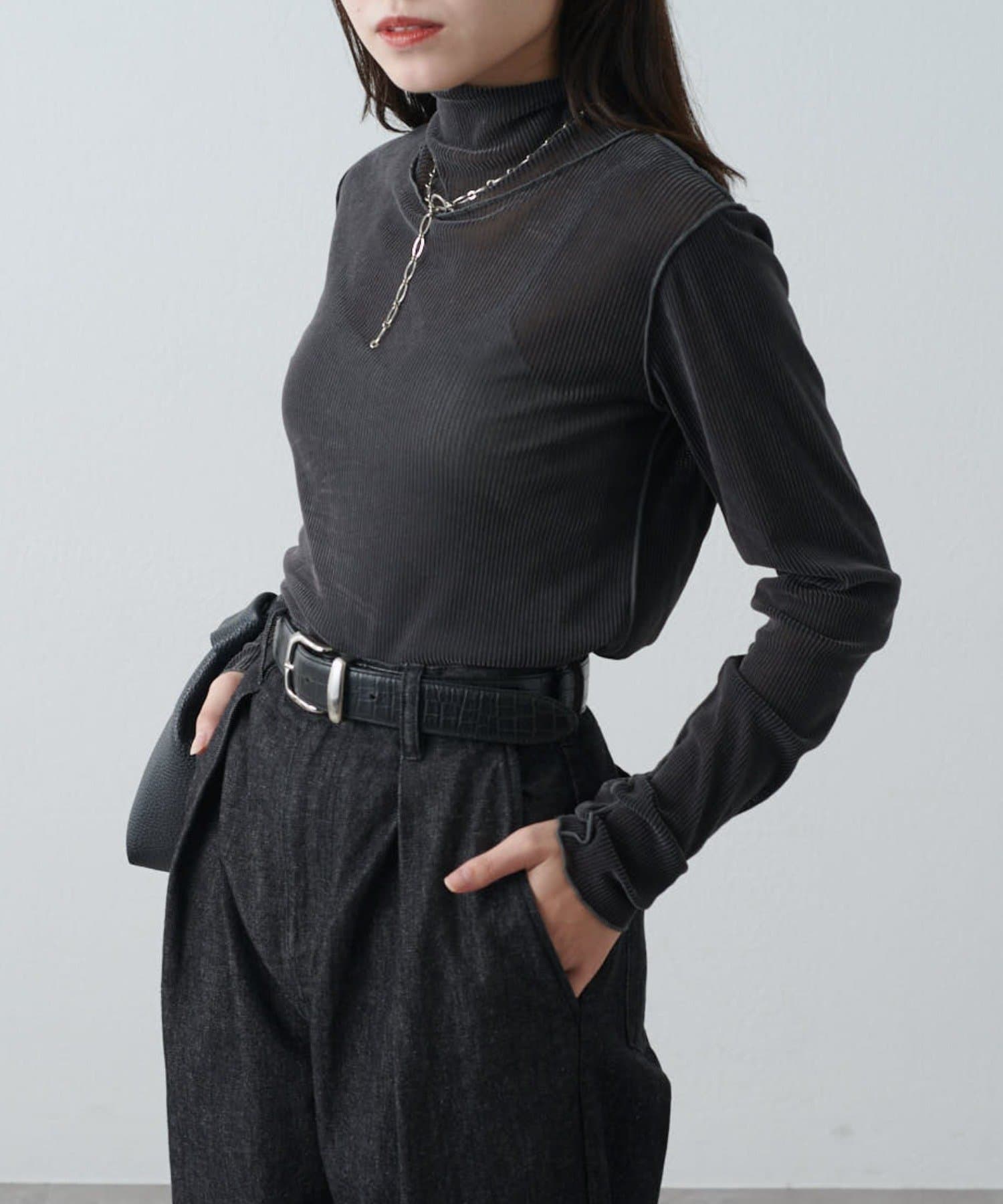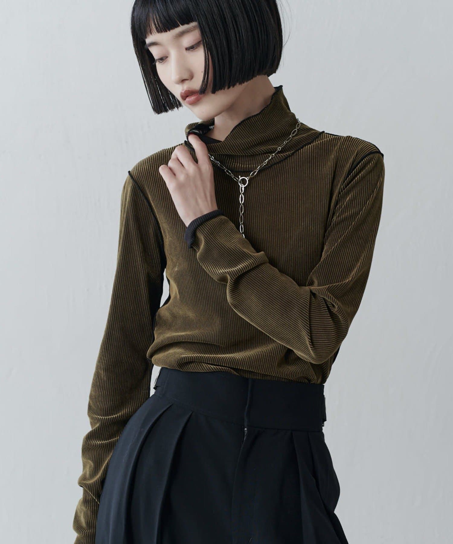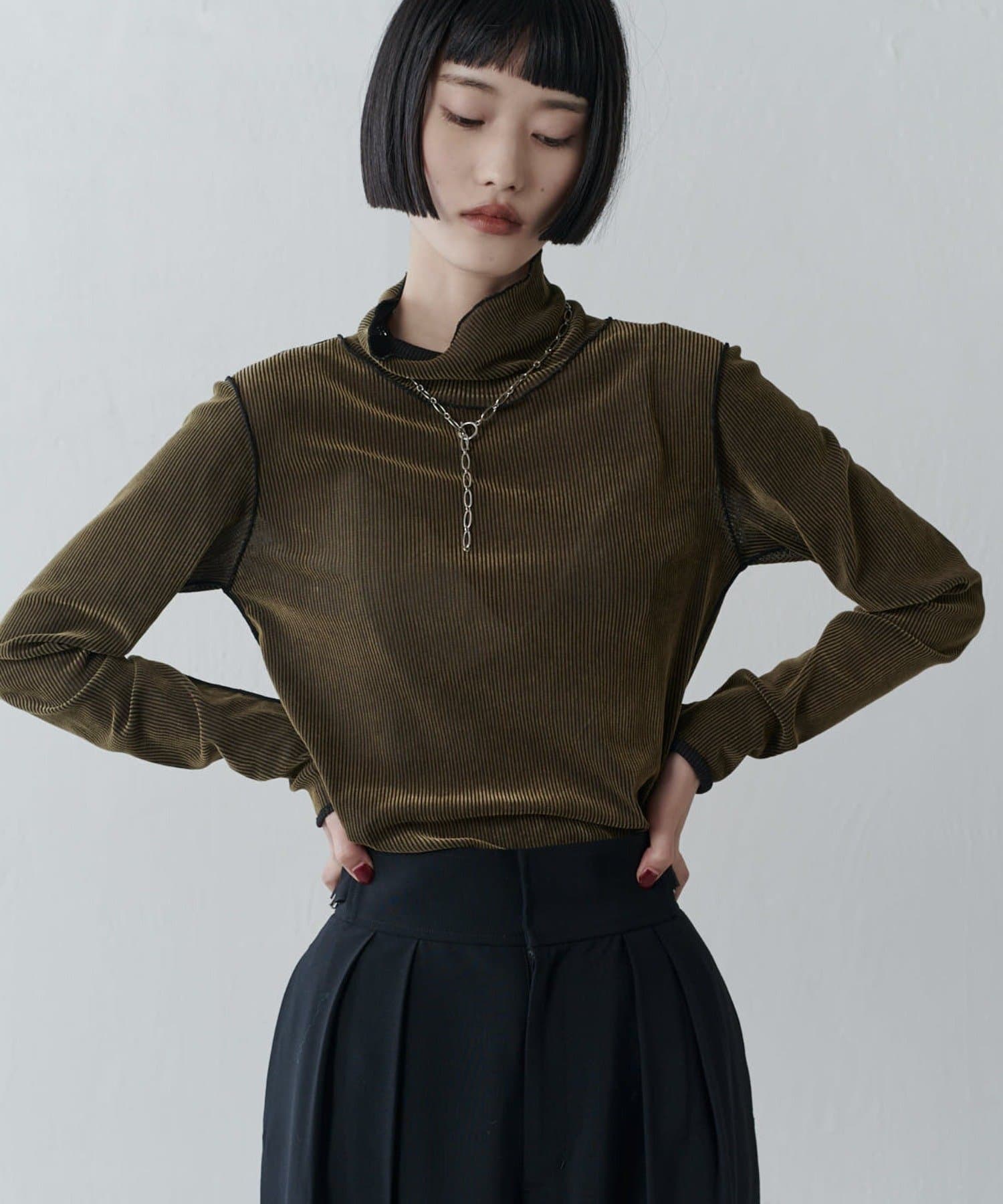 チュールベロアリブシアーメローデザインタートルトップス