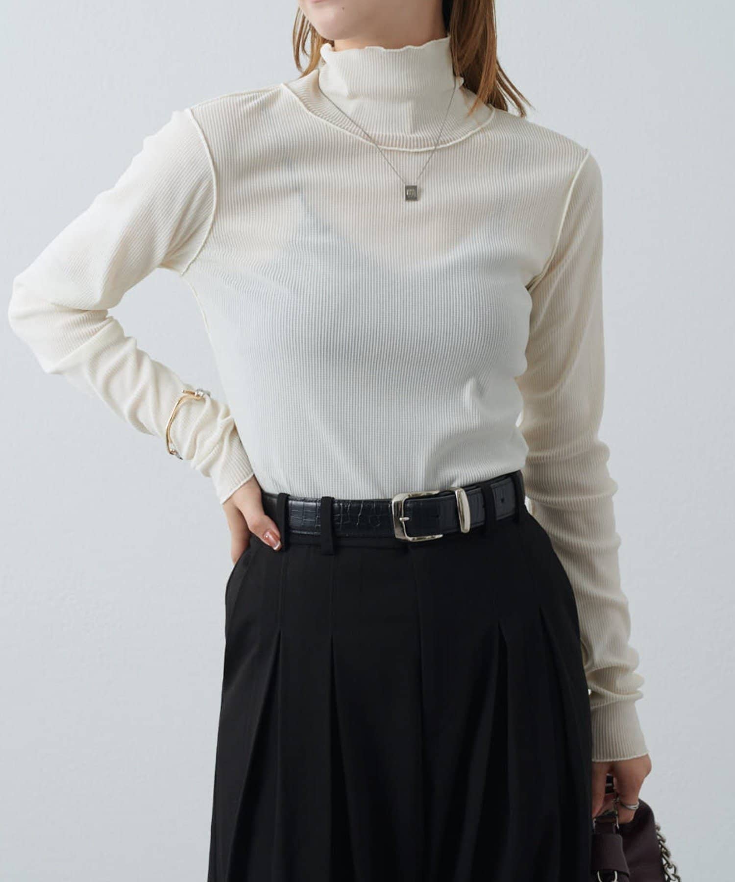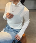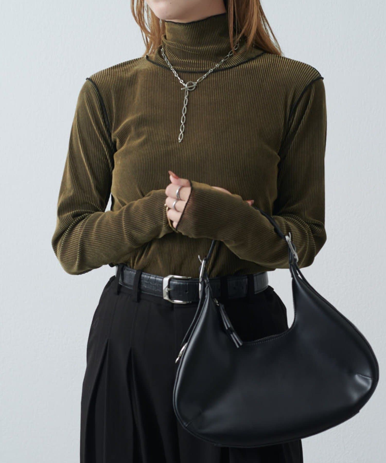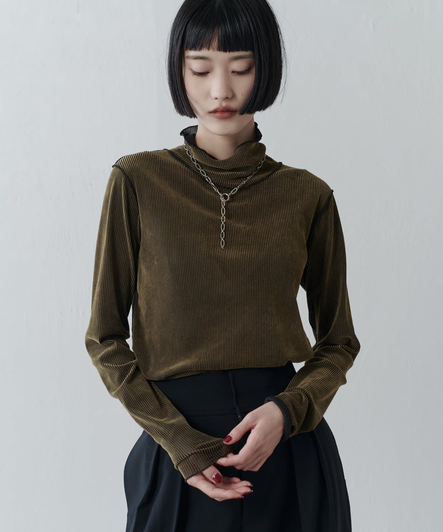 チュールベロアリブシアーメローデザインタートルトップス